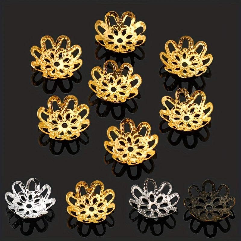 This set includes 100 flower tray pendants for making necklaces, bracelets, earrings, and hair accessories.
