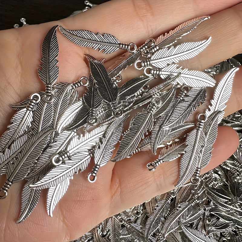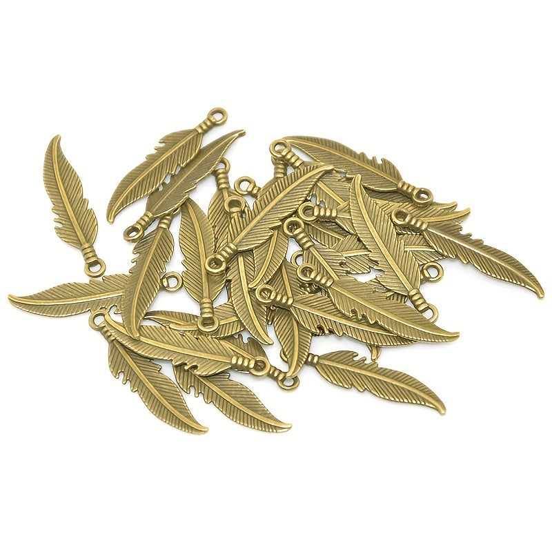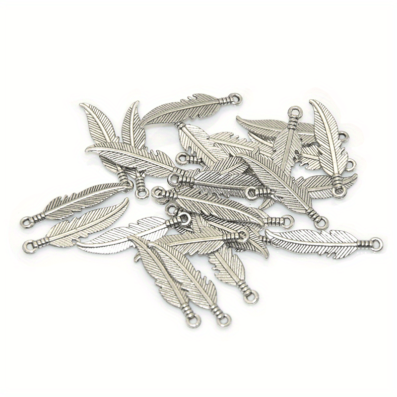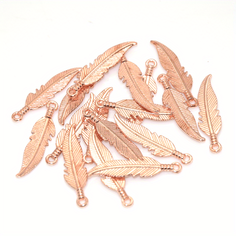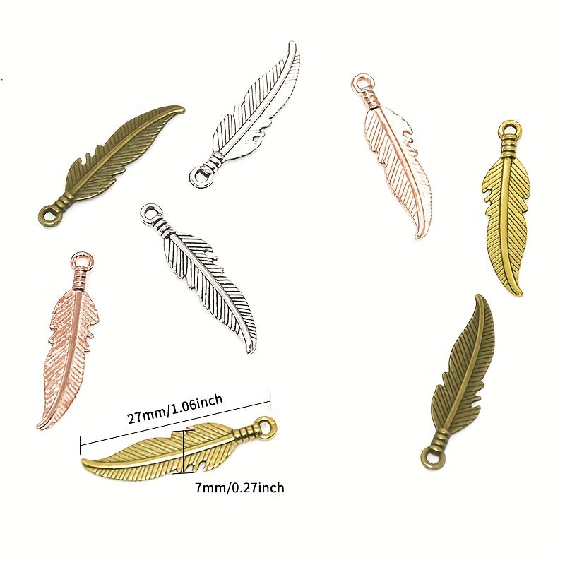 Enhance your jewelry-making projects with this set of 100 alloy feather pendants. Available in a range of colors, these pendants are perfect for creating unique and stylish pieces.