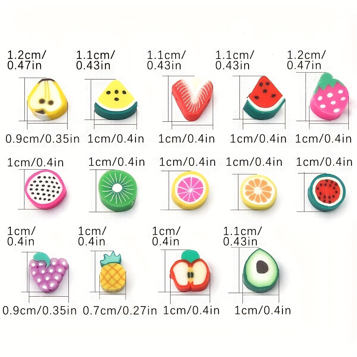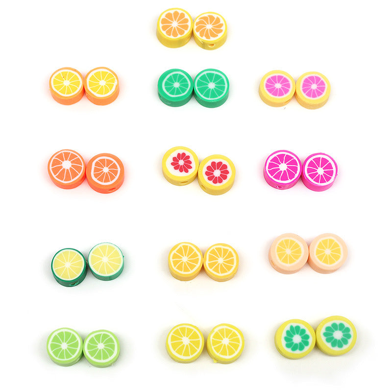 These colorful fruit polymer clay beads are perfect for creating your own unique necklaces, earrings, bracelets, and other crafts. Add a fun and playful touch to your jewelry designs with these beads.