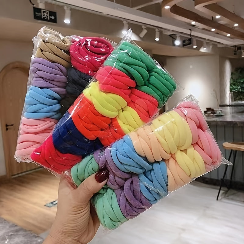 This pack includes 100 seamless hair ropes in a variety of colors and designs, perfect for little girls. These high elastic head ropes are made of candy rubber bands with leather decoration.