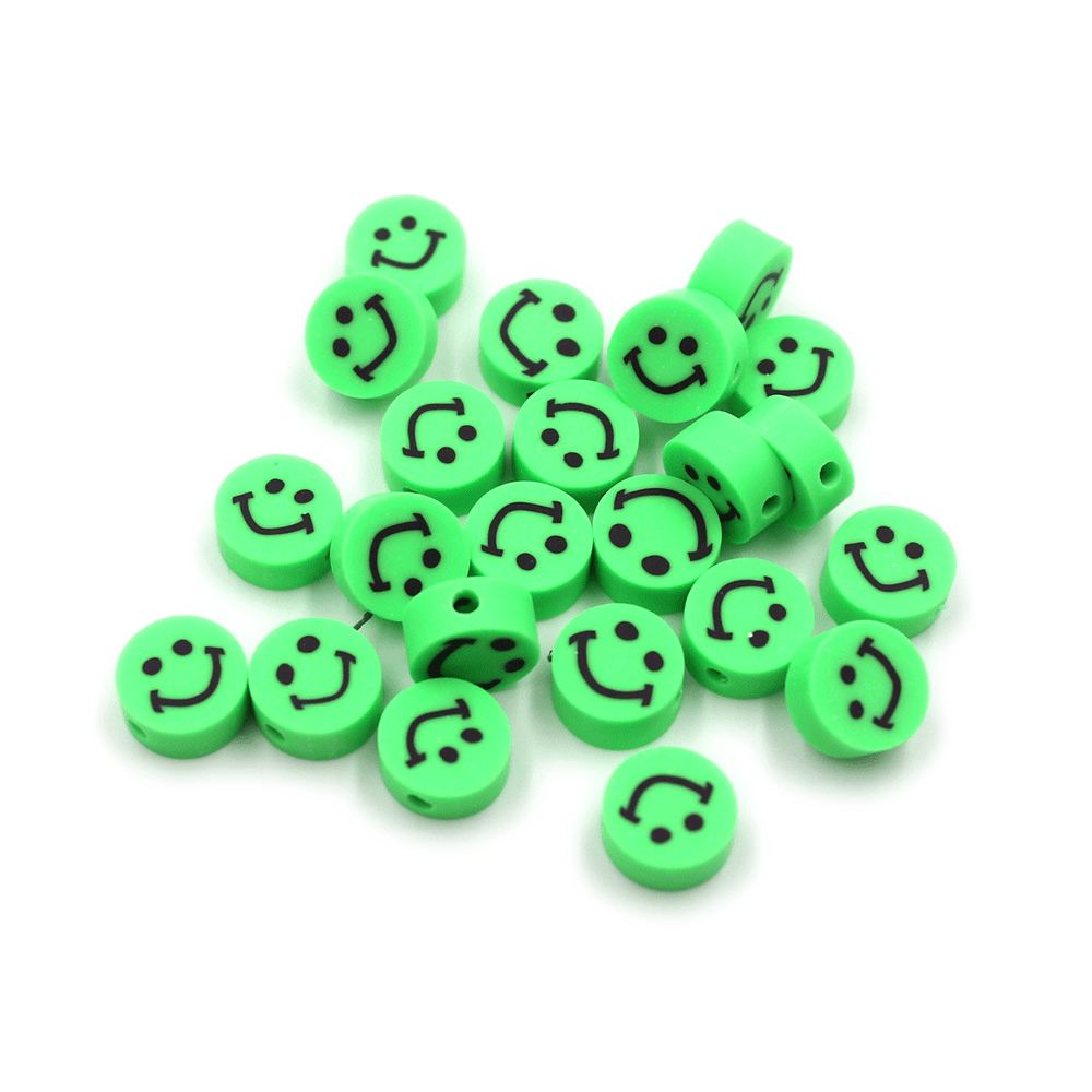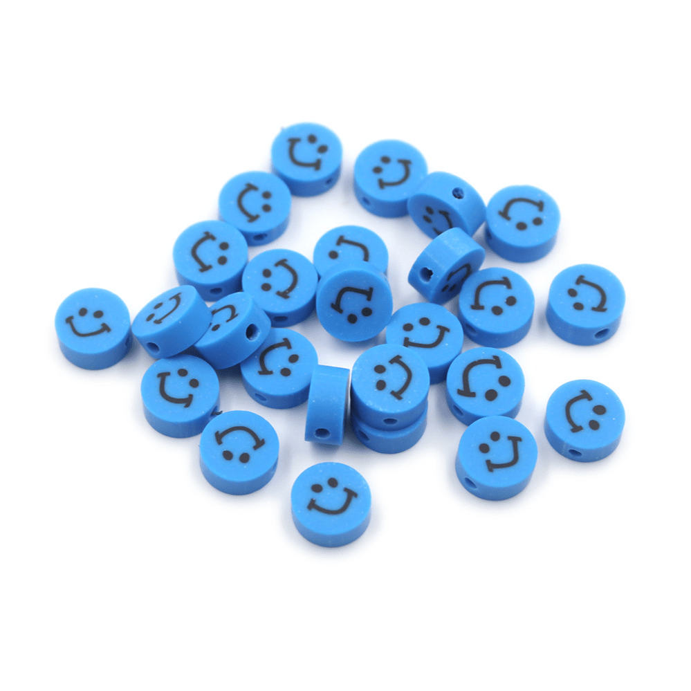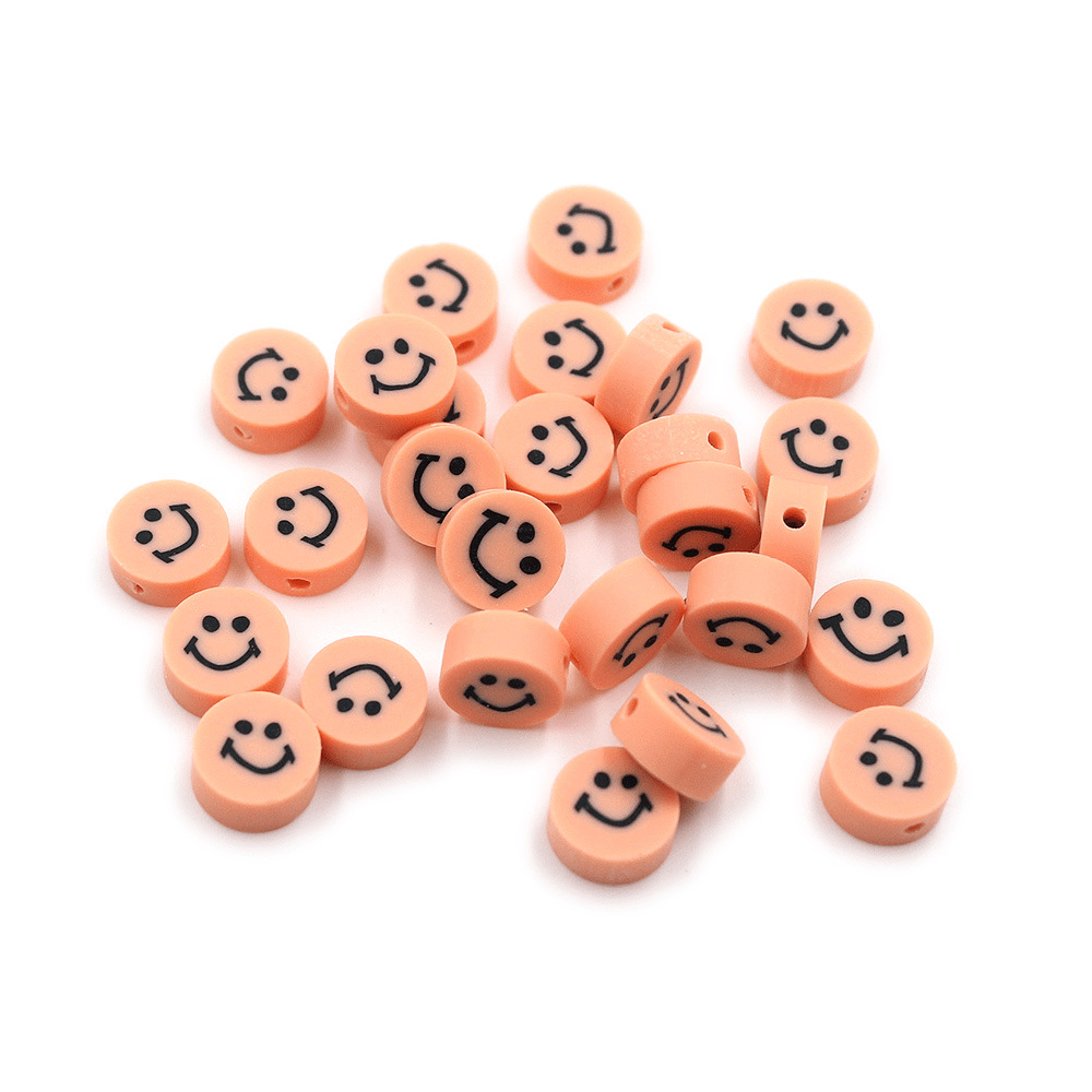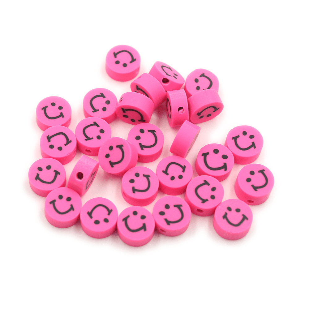 Create your own unique jewelry with these 100pcs happy face round polymer clay beads. Perfect for DIY bracelets, necklaces, and other accessories. Semi-finished jewelry accessory.