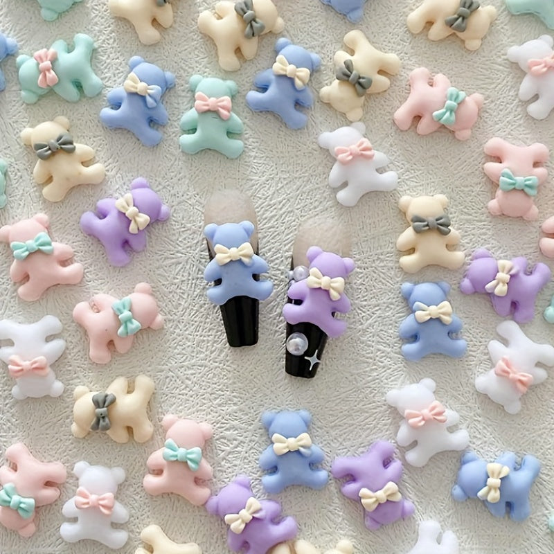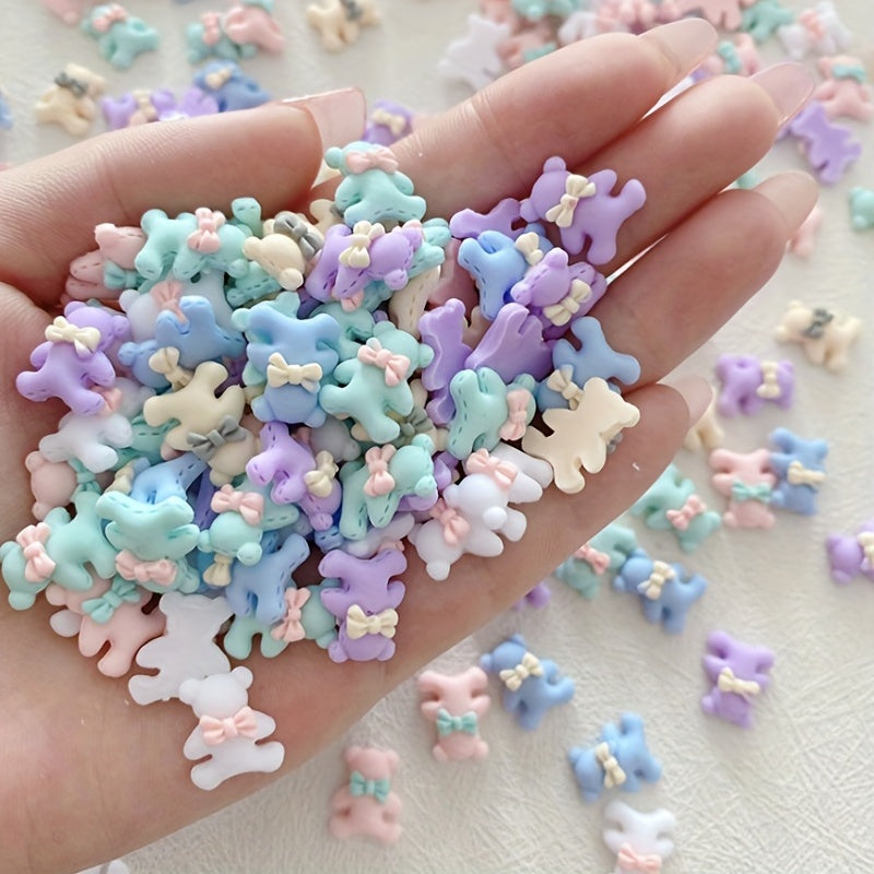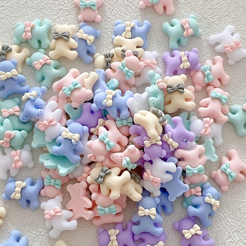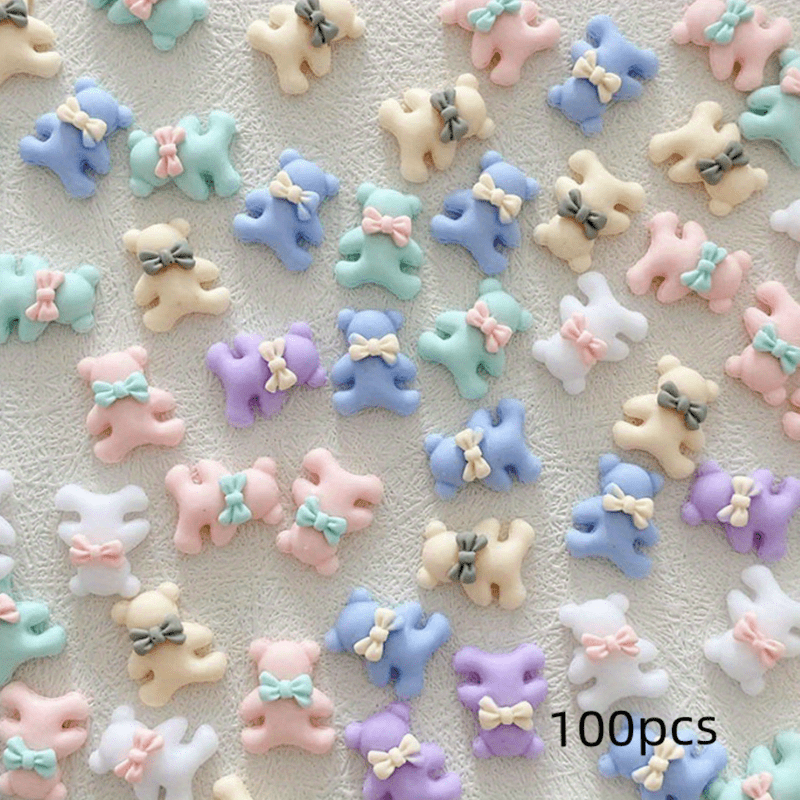 Add a cute touch to your nails, phone cases, hair accessories, or cards with these Macaroon Bow Tie Bear charms. Each pack contains 100 pieces of bear charms that glow in the dark.