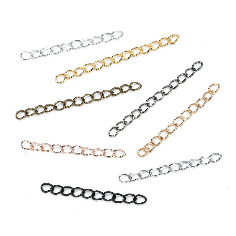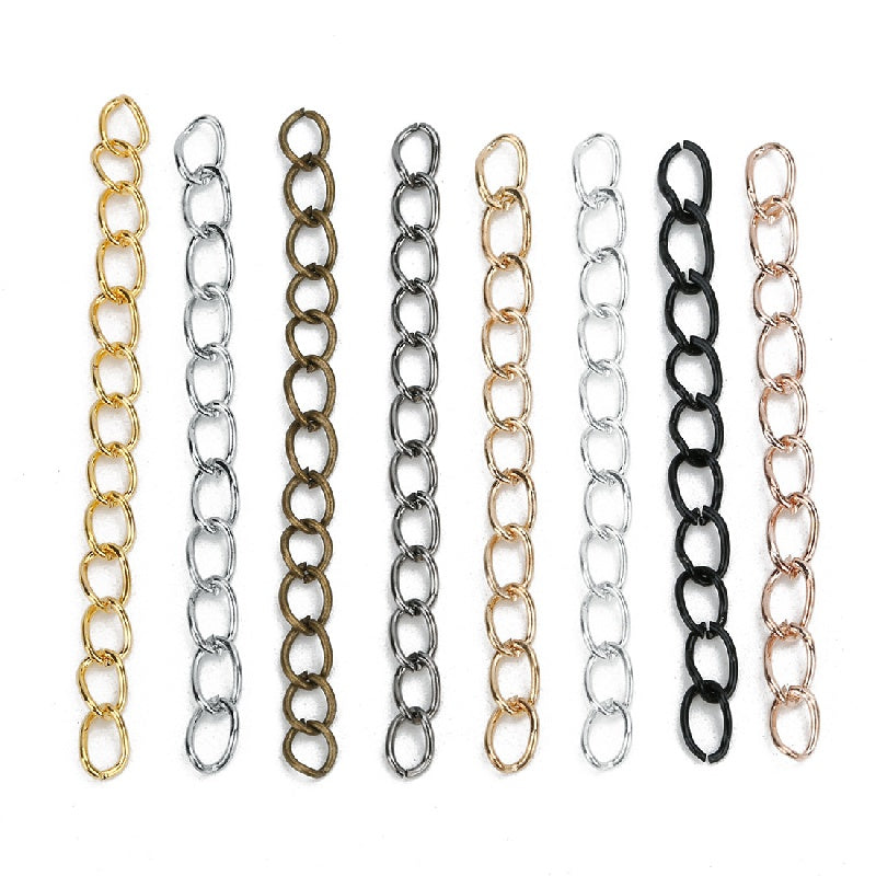Add versatility to your jewelry designs with this pack of 100 metal tail chains featuring lobster clasp extension. Perfect for DIY jewelry projects!