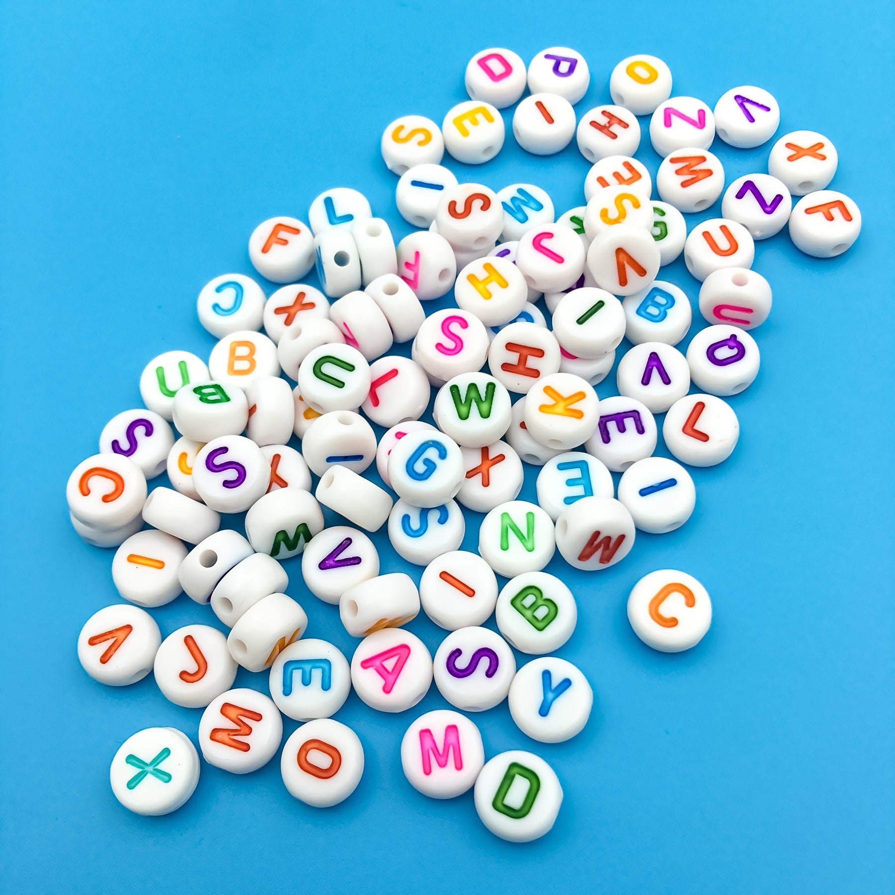 These 100pcs flat round alphabet acrylic beads are perfect for creating DIY necklaces and bracelets. Mix of colorful beads to add variety to your jewelry making projects.