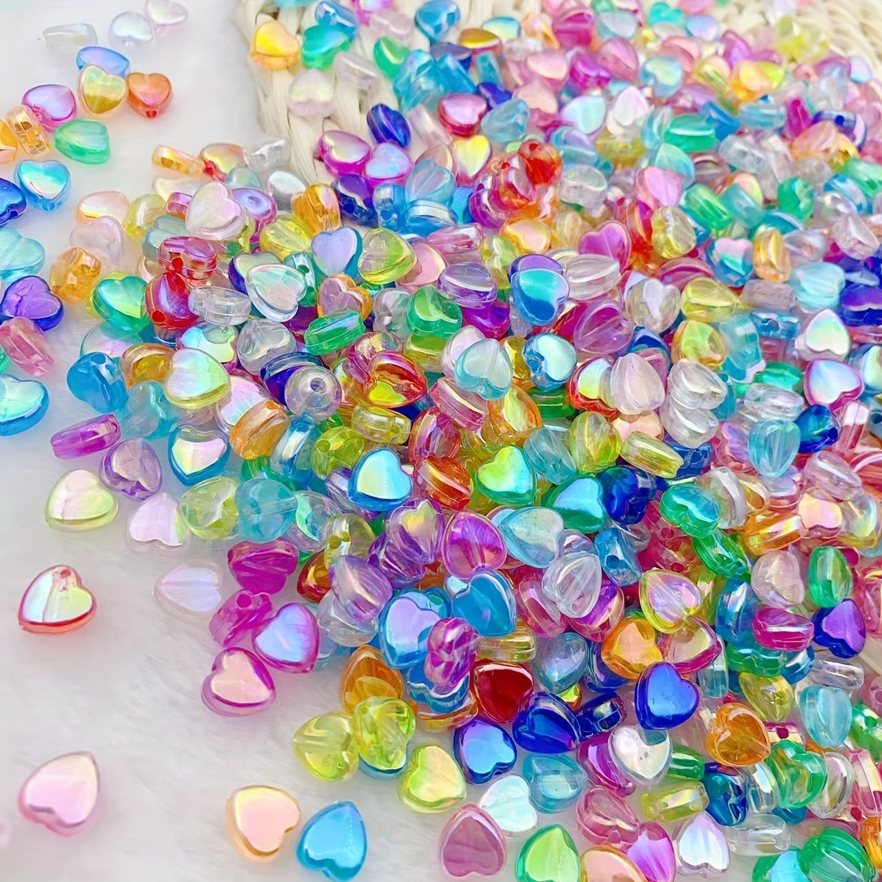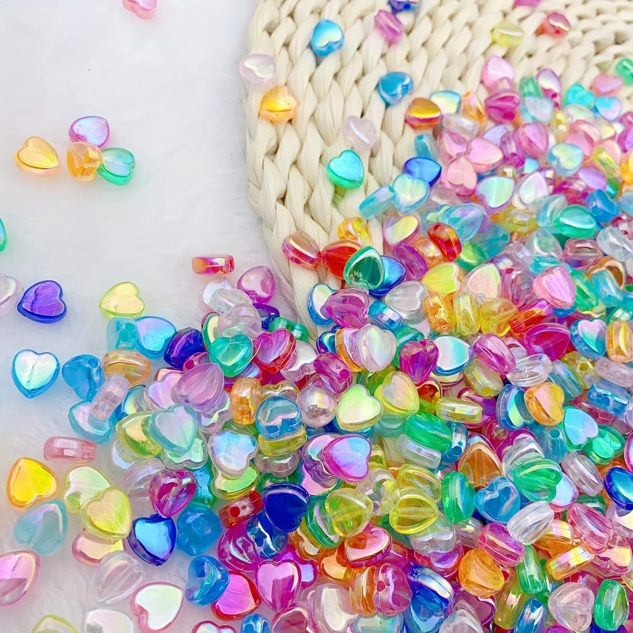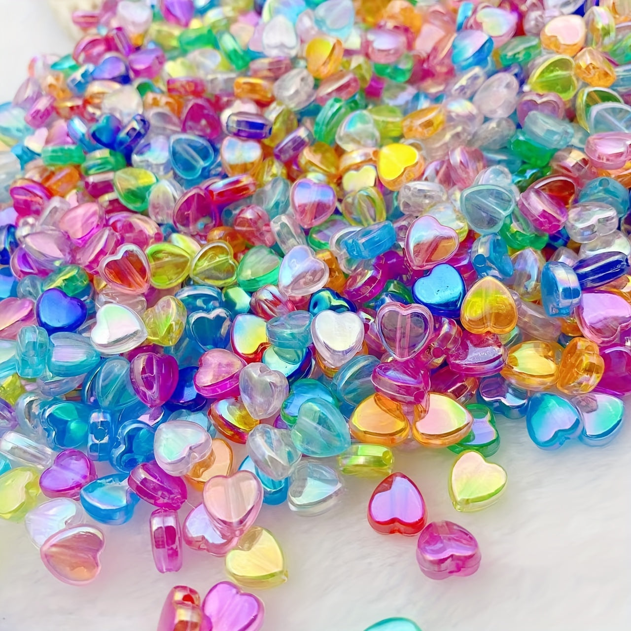 Add a touch of sparkle and charm to your jewelry projects with this set of 100 mixed AB heart acrylic beads. Perfect for bracelets, necklaces, earrings, clothing embellishments, dolls, and handicrafts.