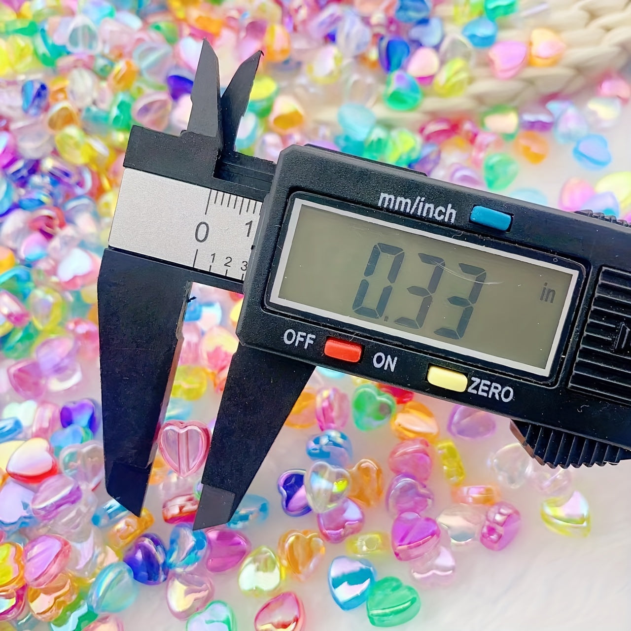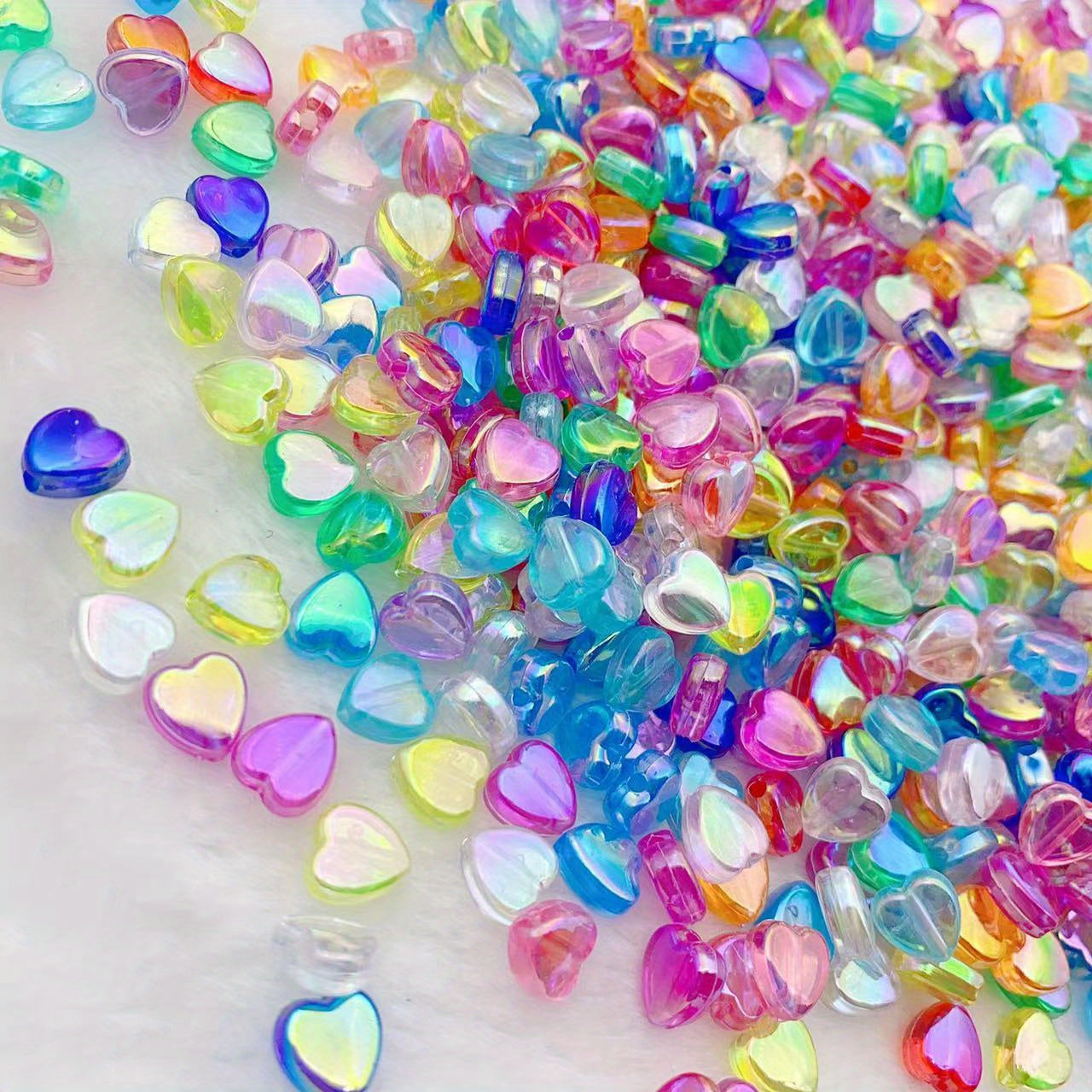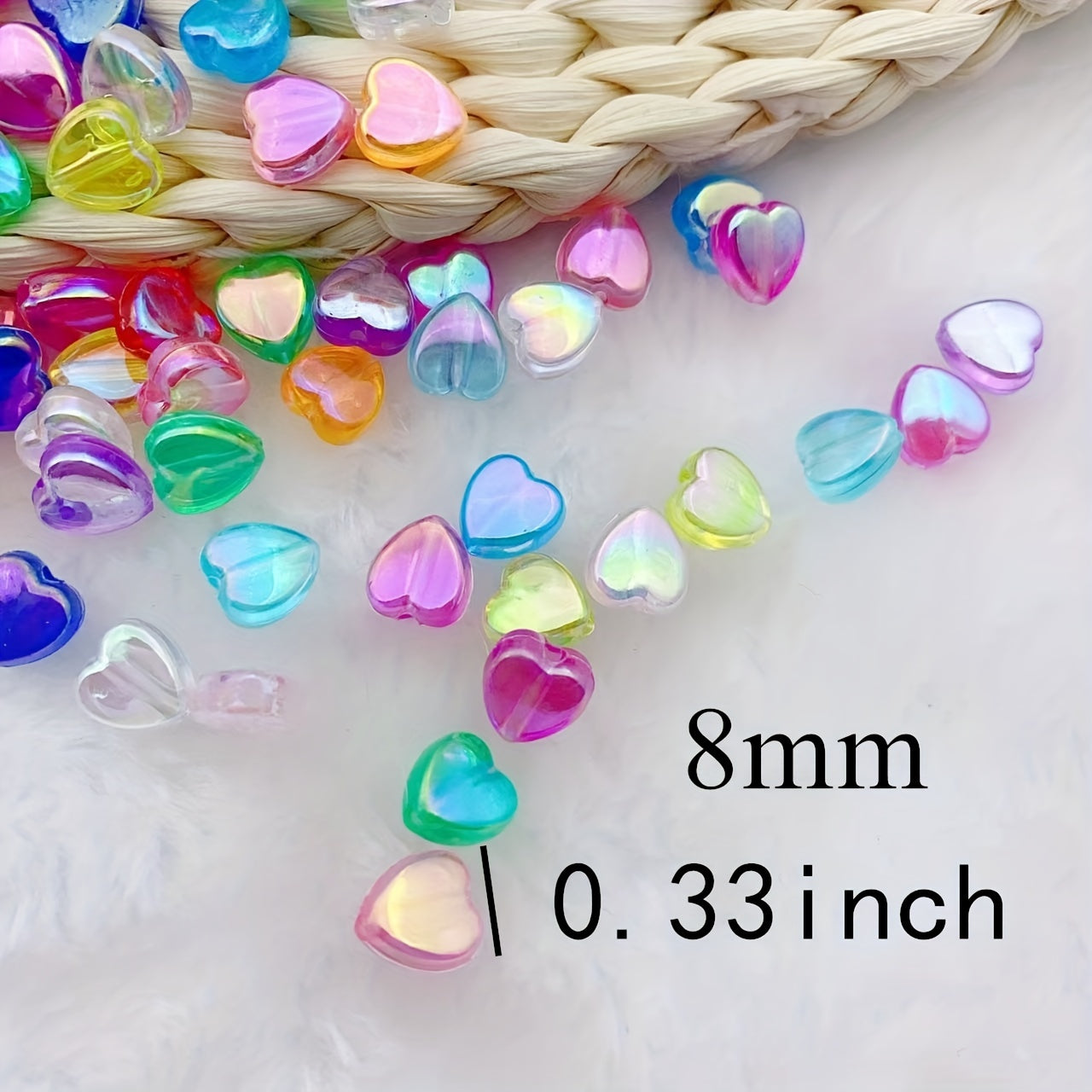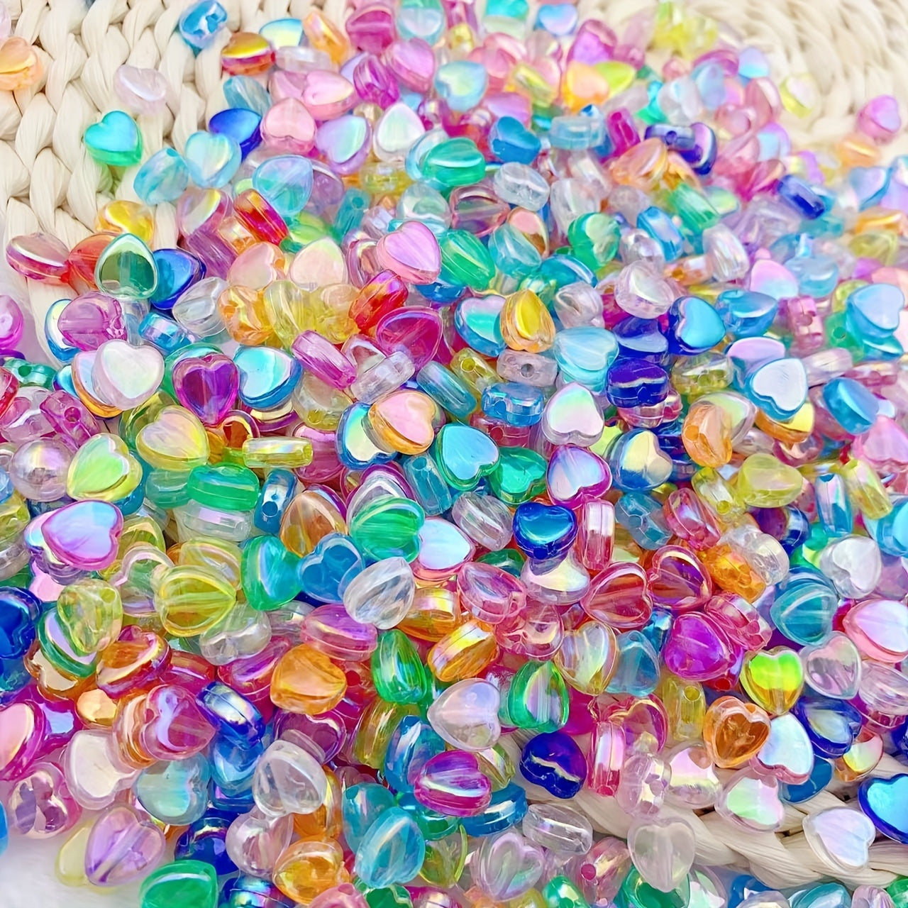 Add a touch of sparkle and charm to your jewelry projects with this set of 100 mixed AB heart acrylic beads. Perfect for bracelets, necklaces, earrings, clothing embellishments, dolls, and handicrafts.