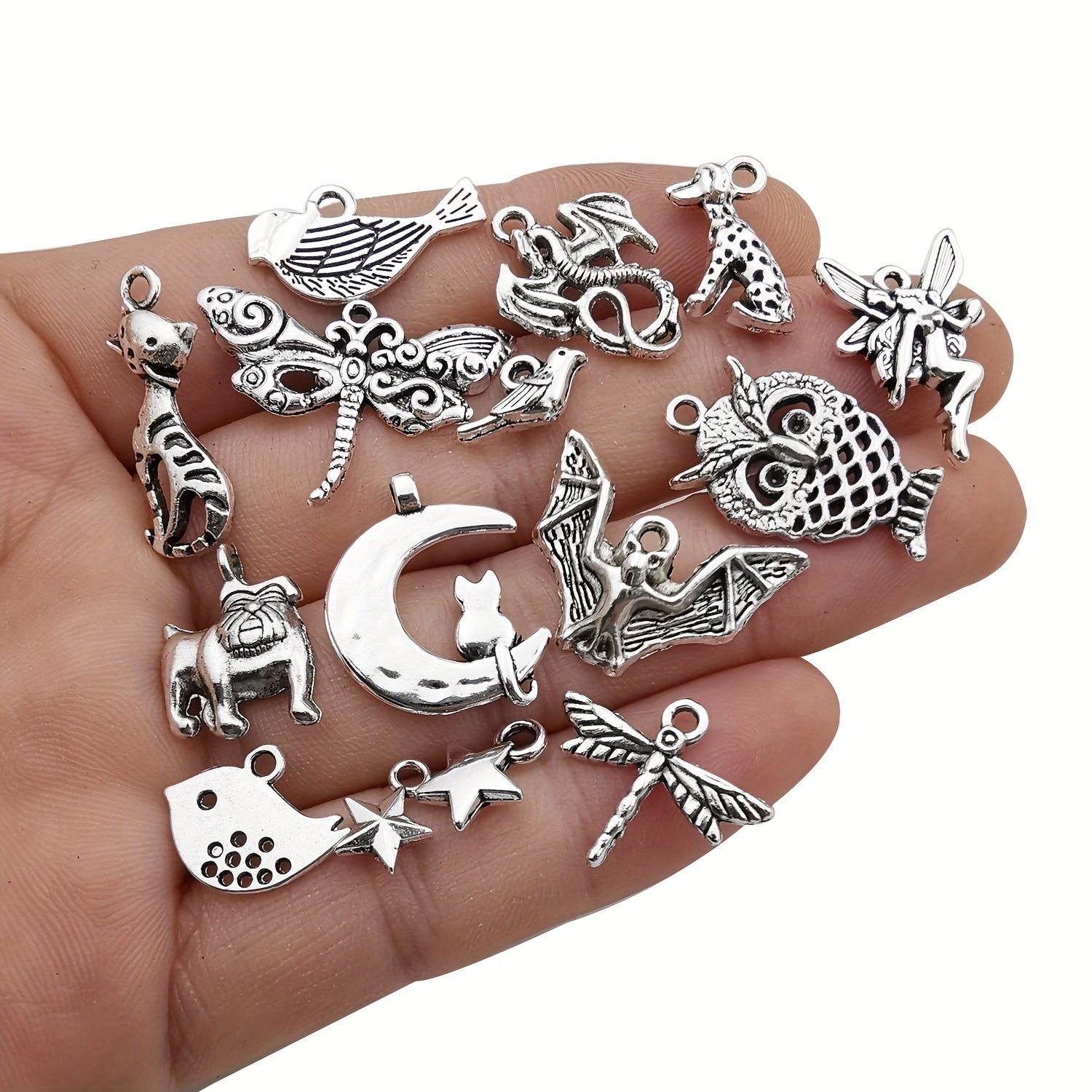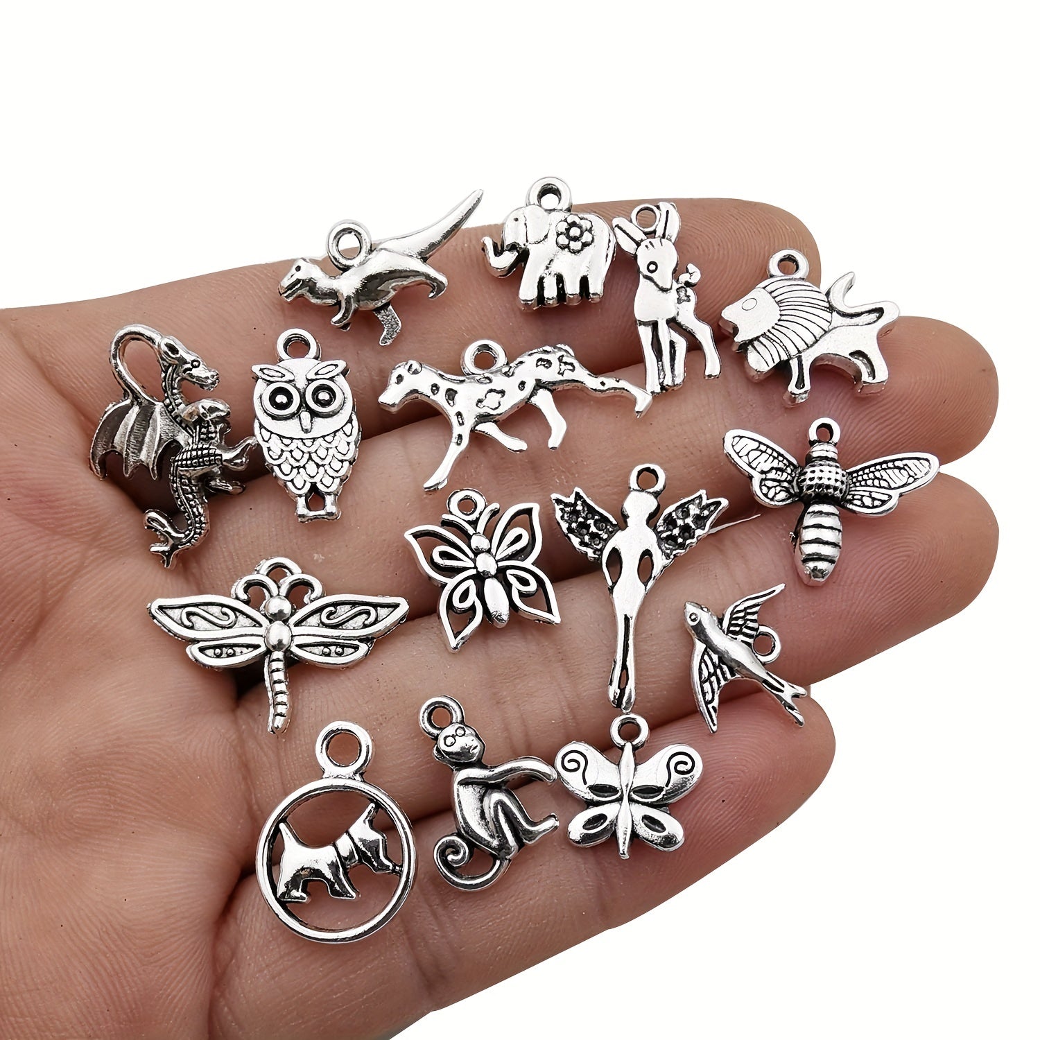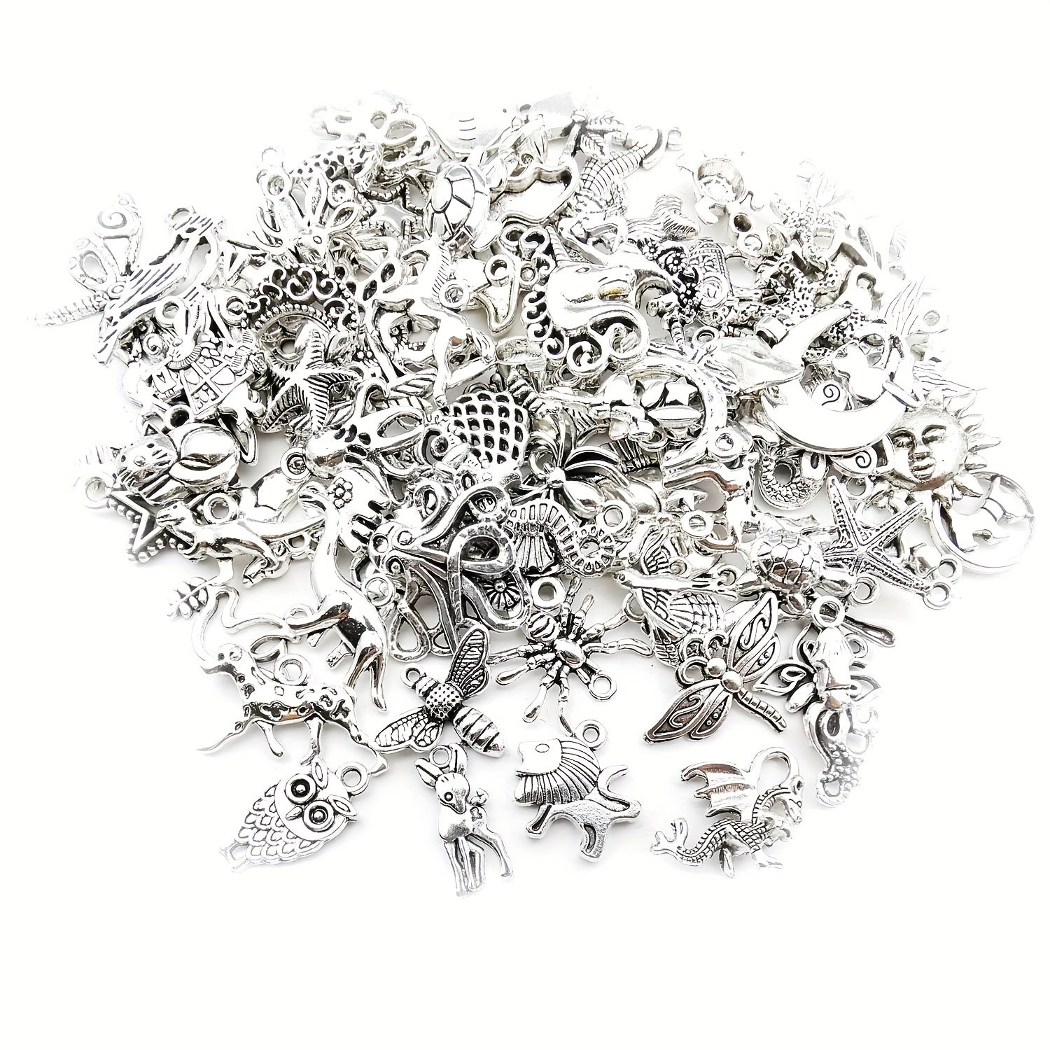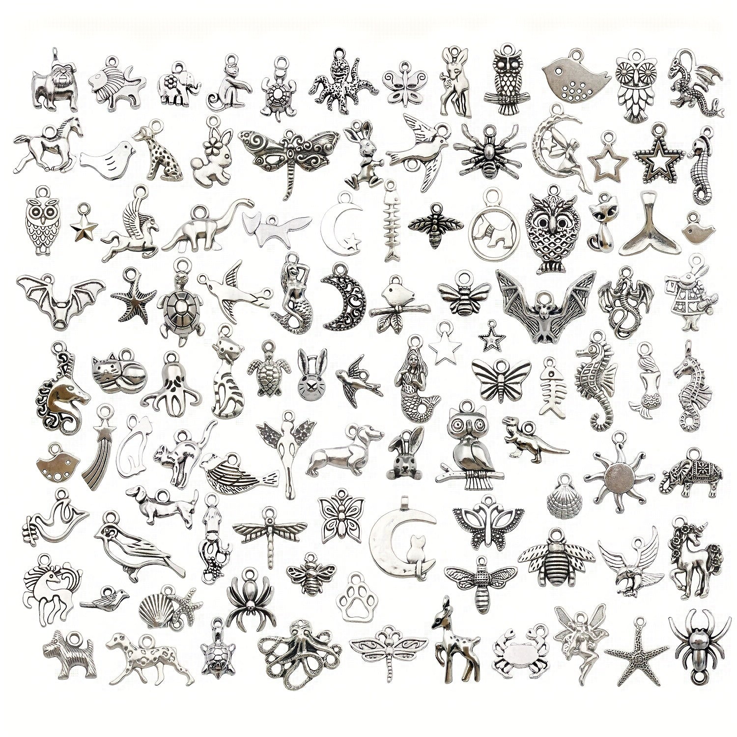 Get a random assortment of 100 animal charms for your jewelry making projects. These antique silver charms are perfect for creating unique necklaces and bracelets.