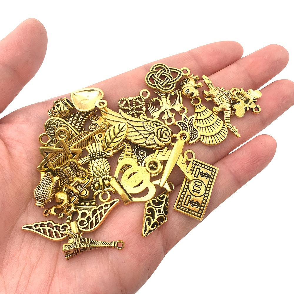 Create stunning jewelry with this bulk pack of 100 mixed smooth antique silver metal charms pendants. Perfect for necklaces, bracelets, and other crafting projects.