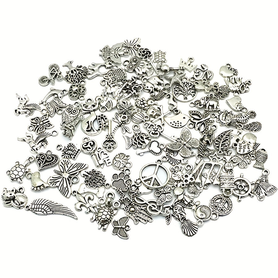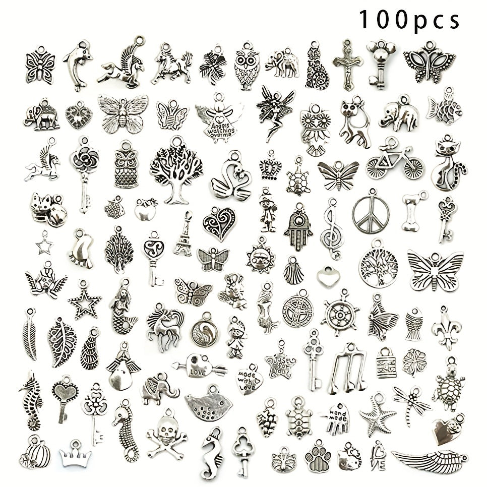 Explore your creativity with this pack of 100 mixed metal pendants. Use them to design unique necklaces, bracelets, and other jewelry pieces.