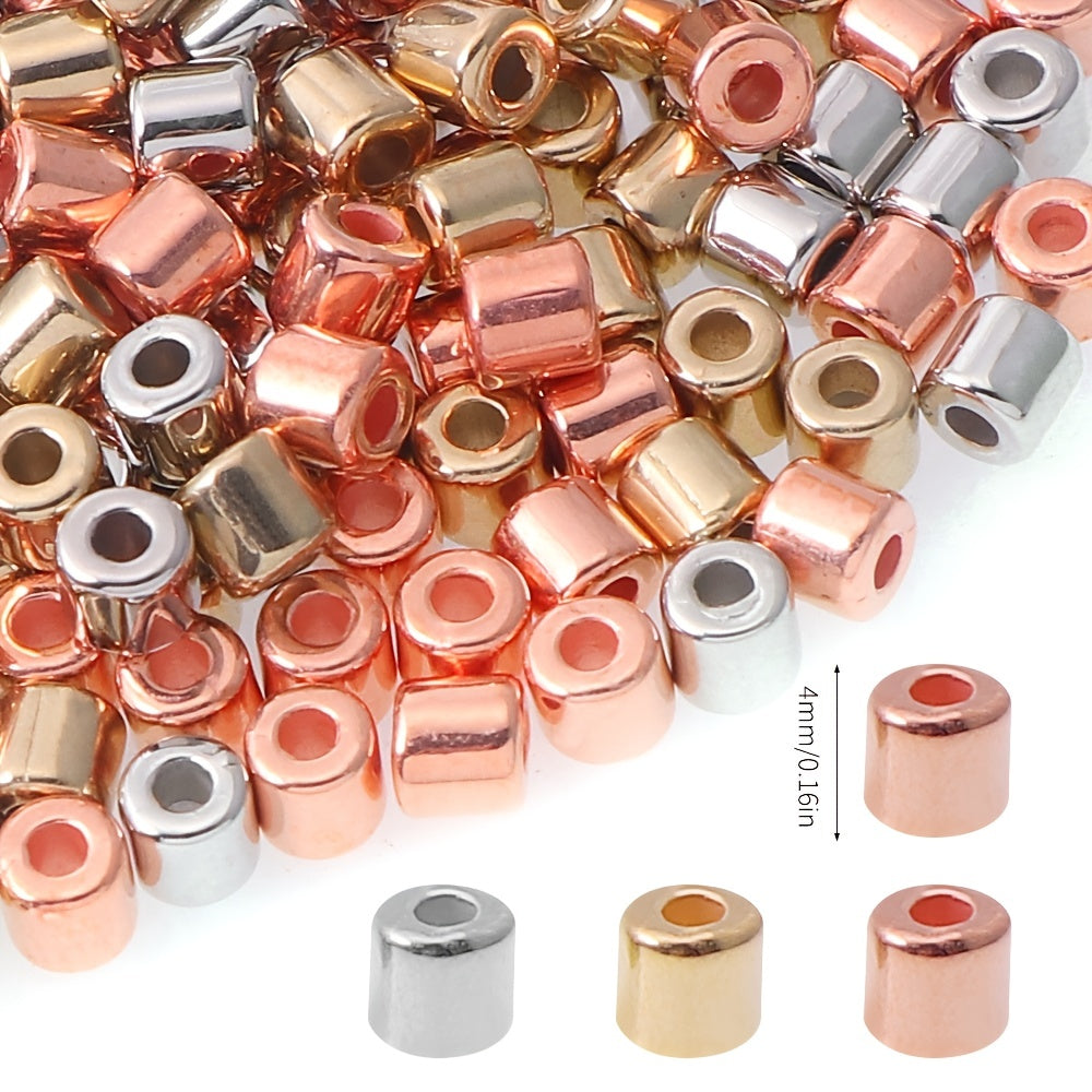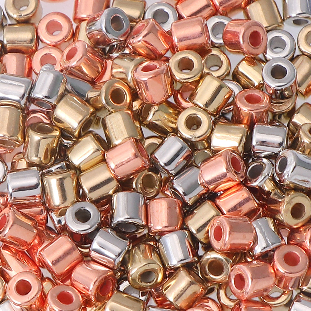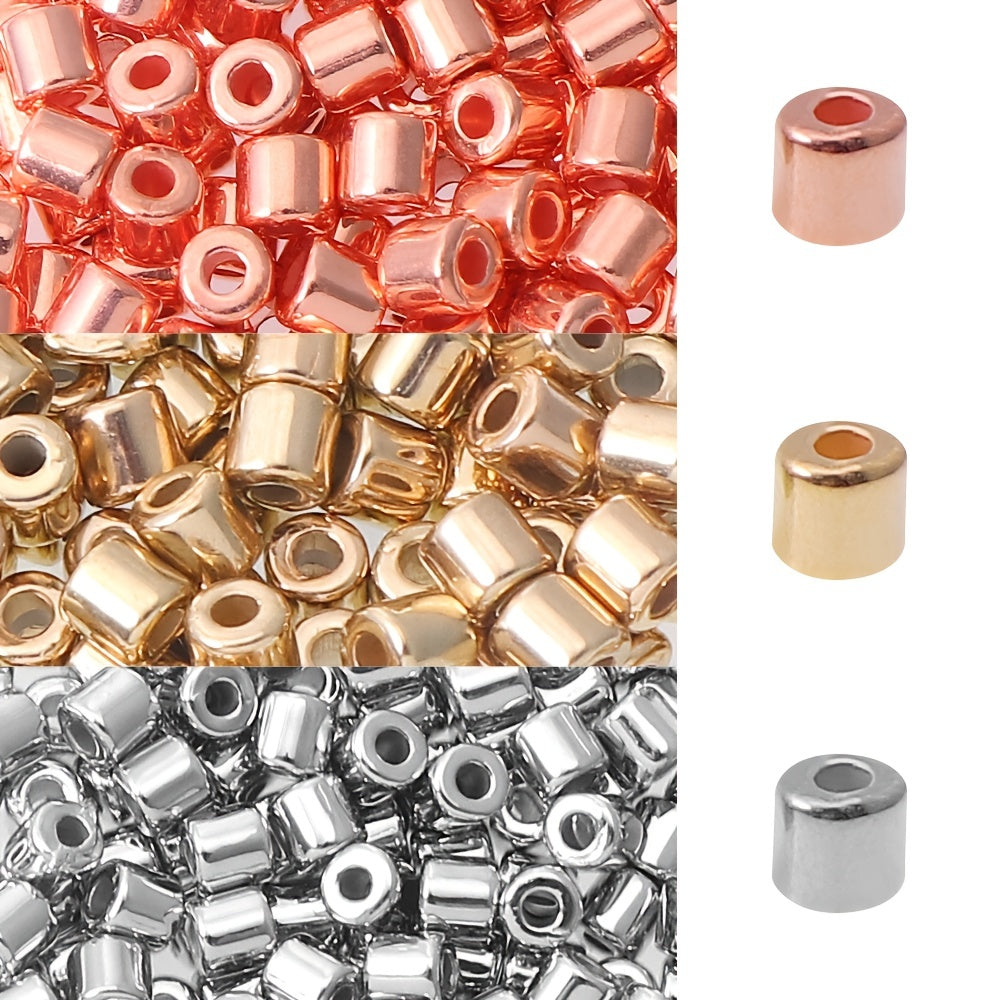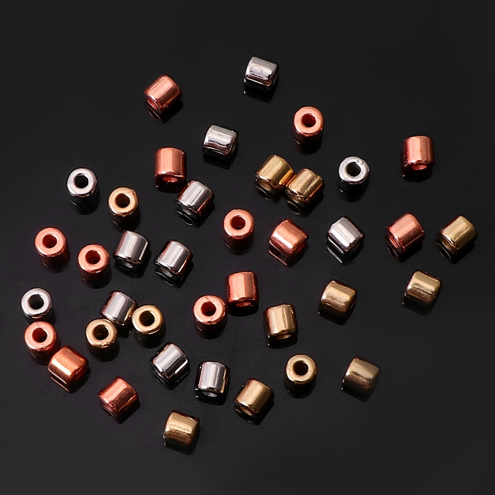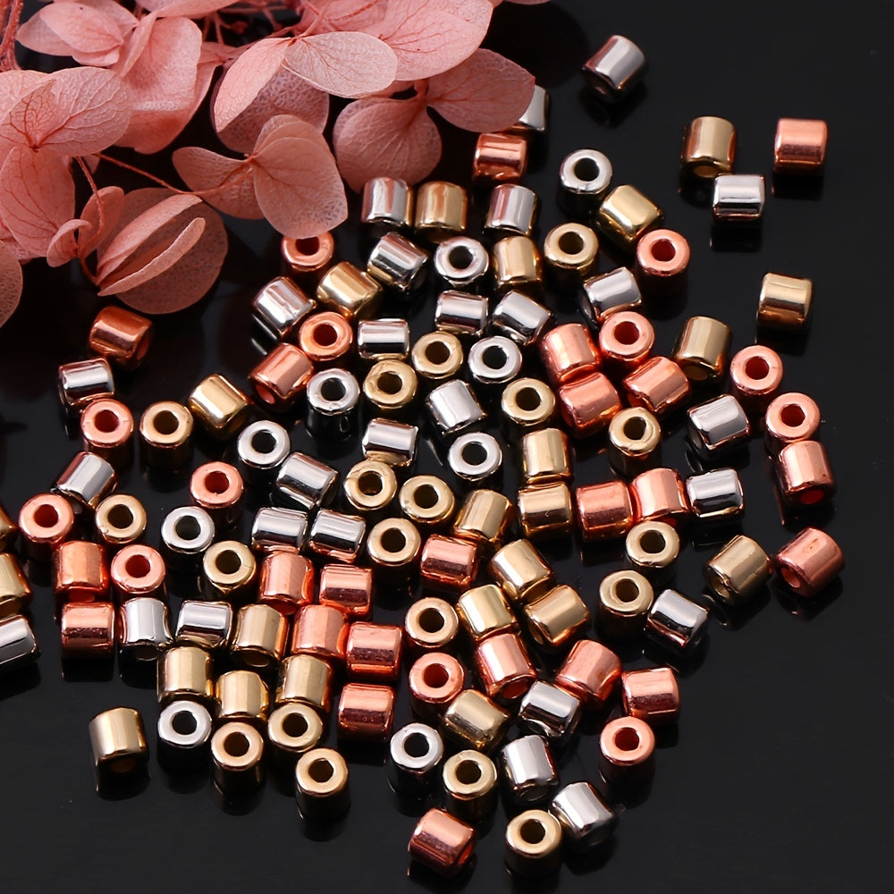 Enhance your jewelry-making projects with this set of 100 random mixed plastic plating cylindrical spacer beads.