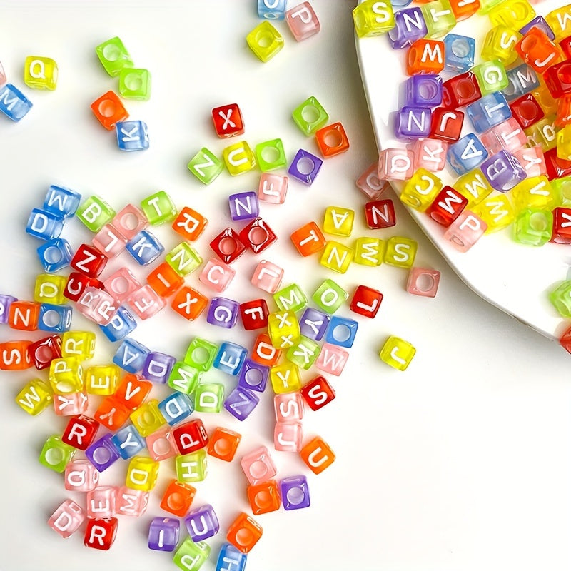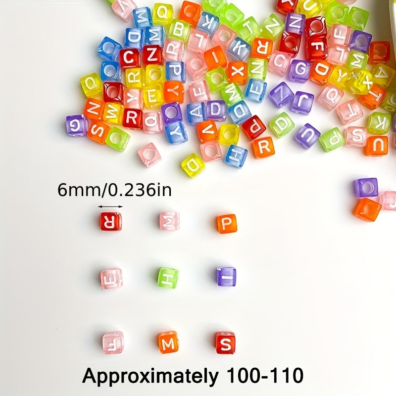 These 6x6mm square beads feature a variety of alphabet letters. Perfect for crafting bracelets, necklaces, and more.