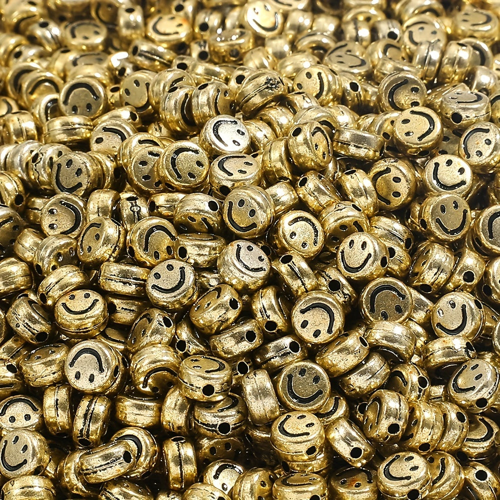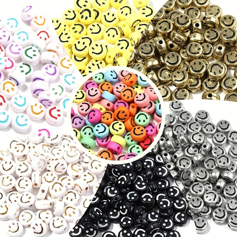 These multicolor happy face beads are perfect for creating your own bracelets and jewelry. Made of acrylic, these flat round cartoon beads are a fun addition to any DIY project.