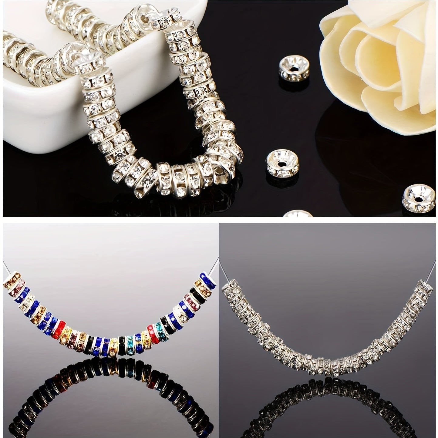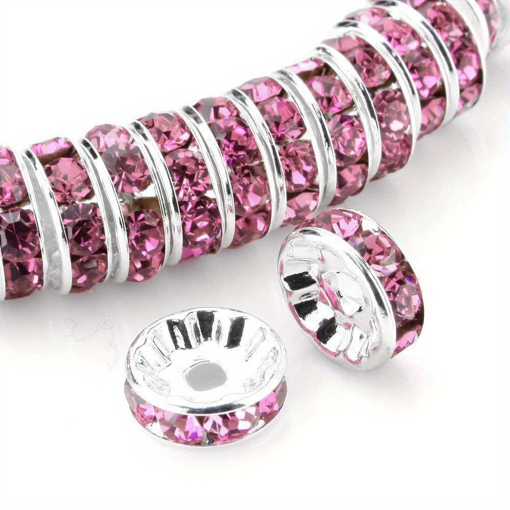 Enhance your jewelry-making with this set of 100 pink round interval beads. These 8mm silver-plated Czech crystal rhinestones are perfect for creating stunning bracelets and other accessories.
