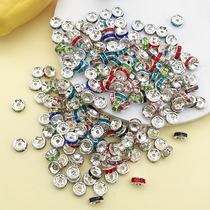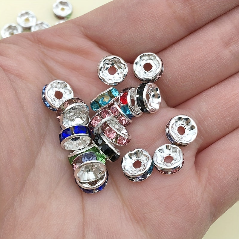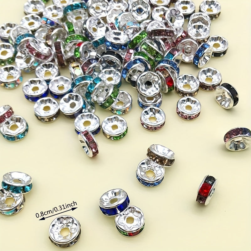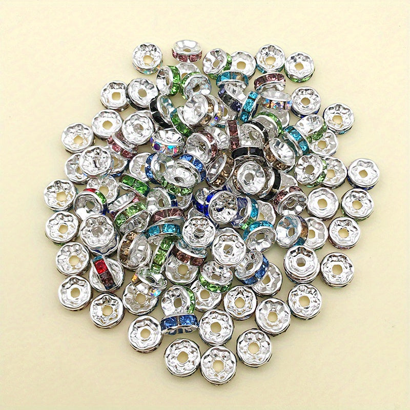 Add sparkle to your jewelry creations with this set of 100 rhinestone spacer beads. Perfect for DIY earrings, bracelets, and other accessories.