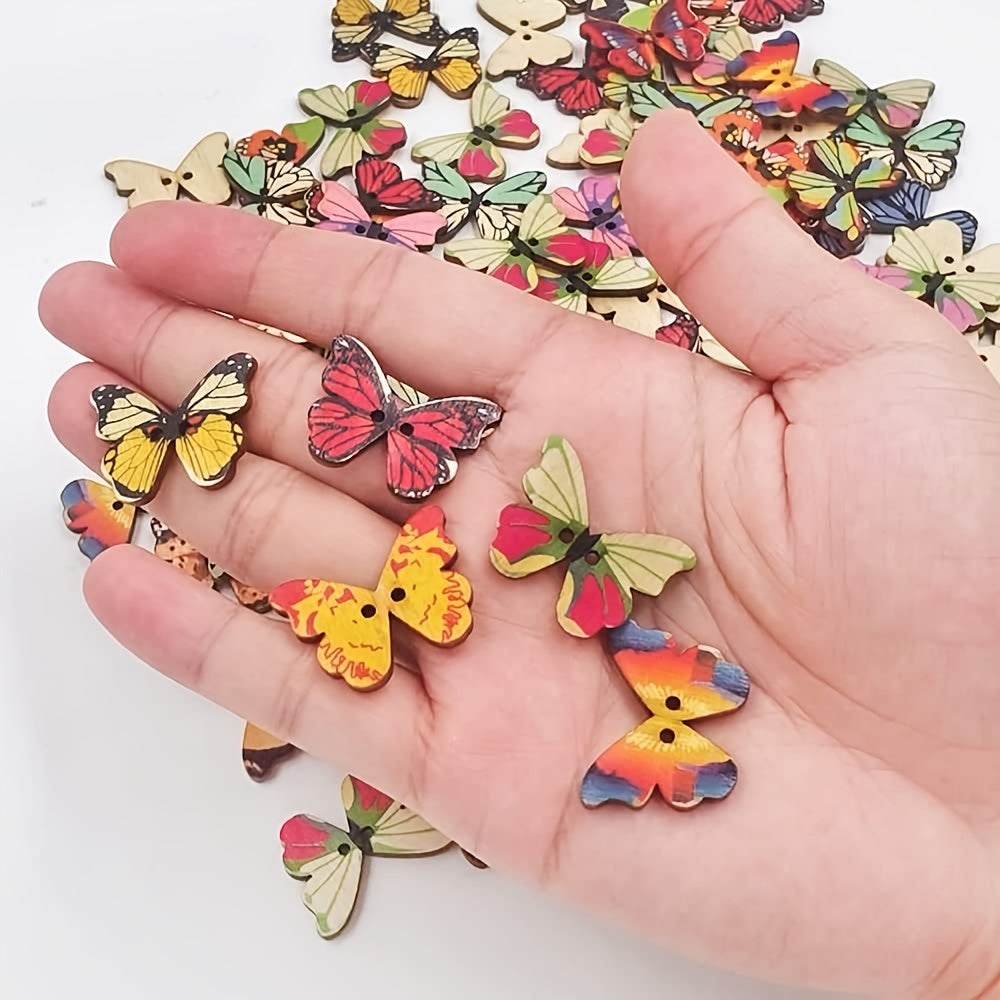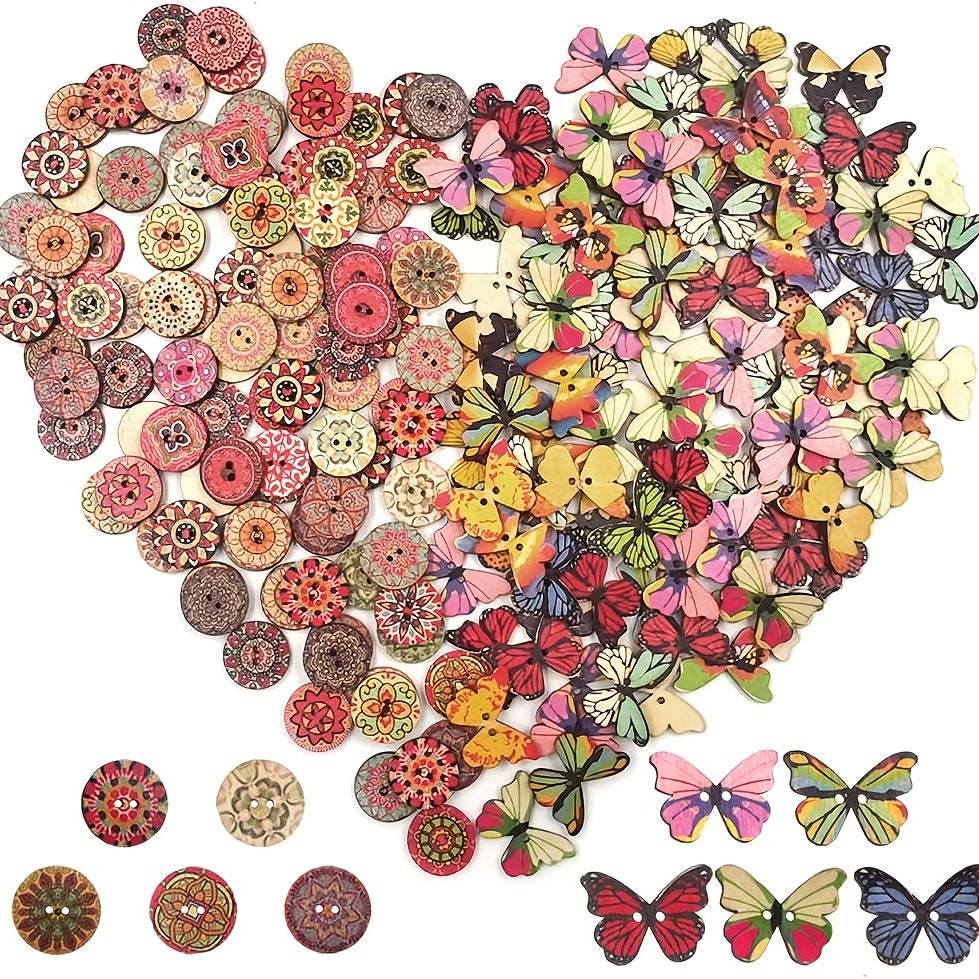 Add a touch of nature to your clothing and craft projects with these wooden buttons. Each pack contains 100 round and butterfly-shaped buttons that can be easily sewn onto various items.