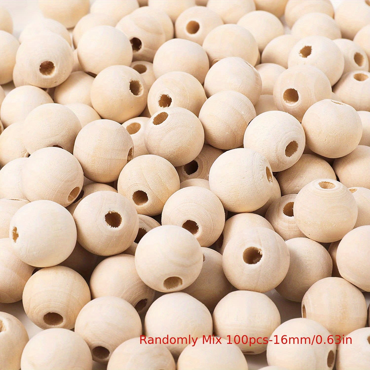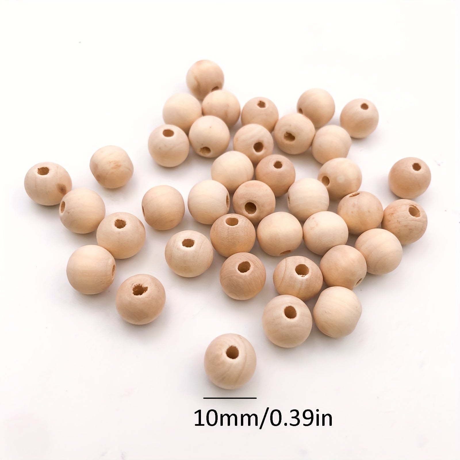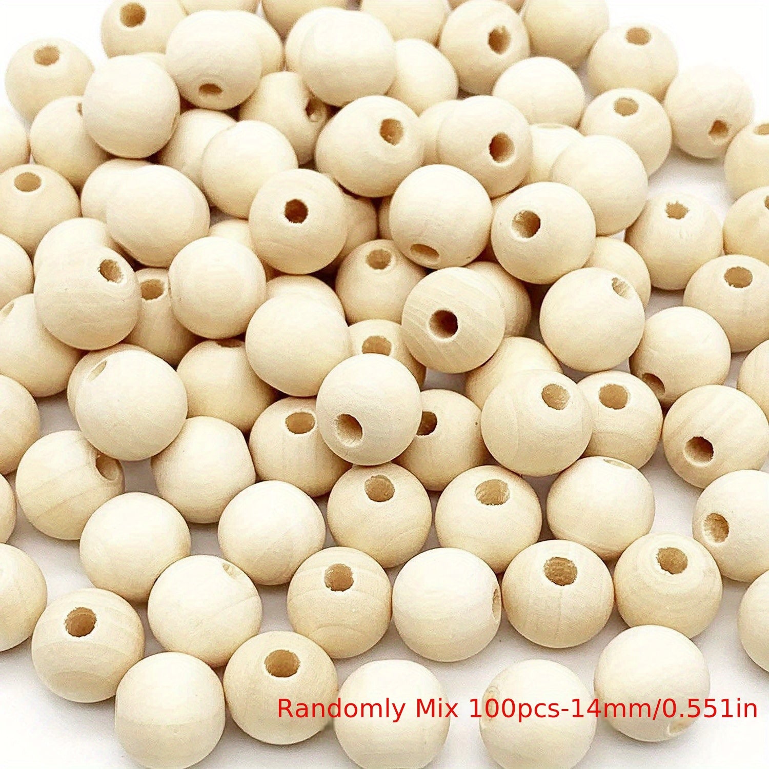 Get this pack of 100 round wooden beads measuring about 10mm each, perfect for making decorations and DIY crafts.
