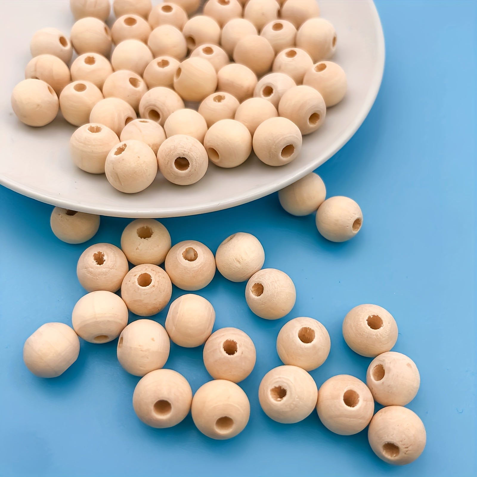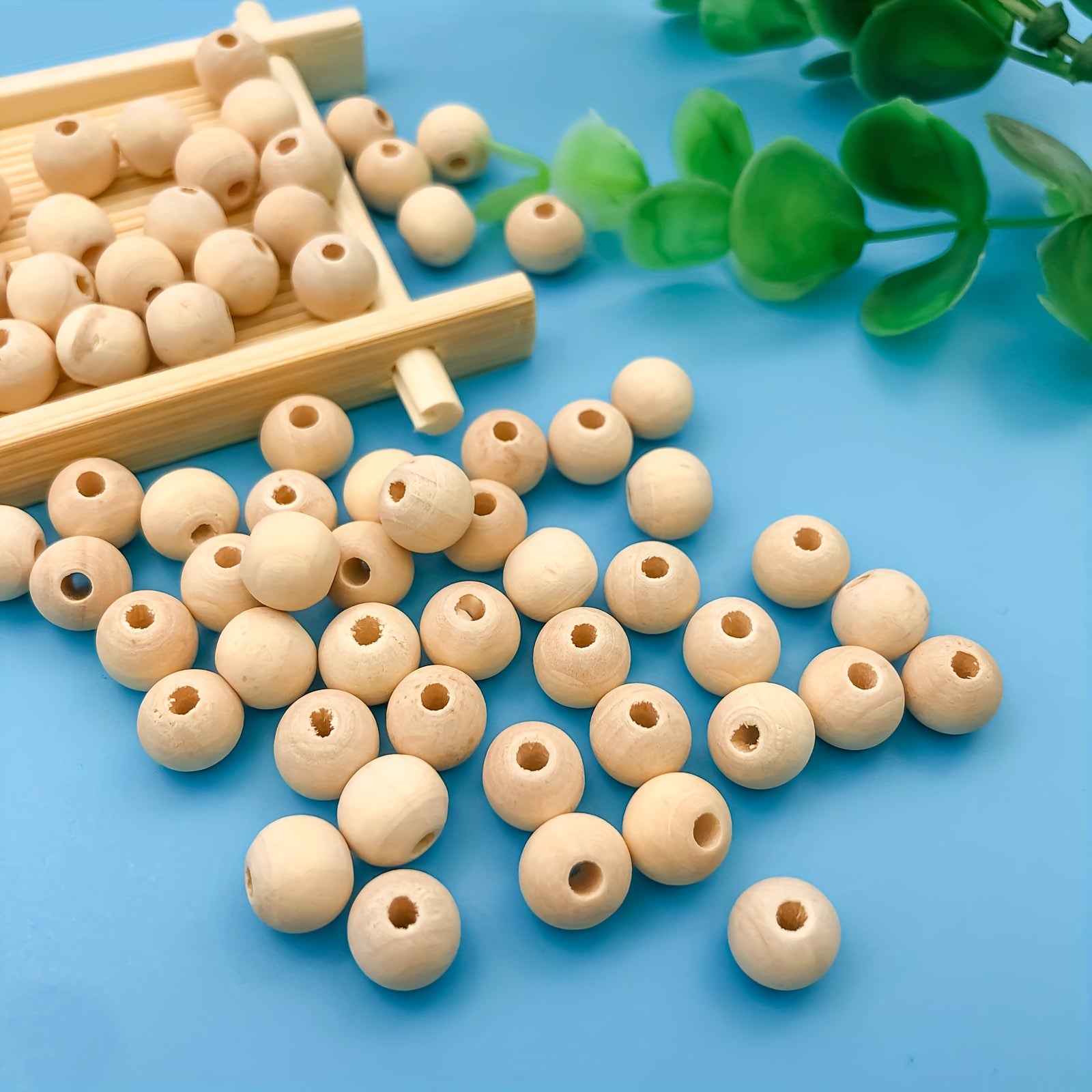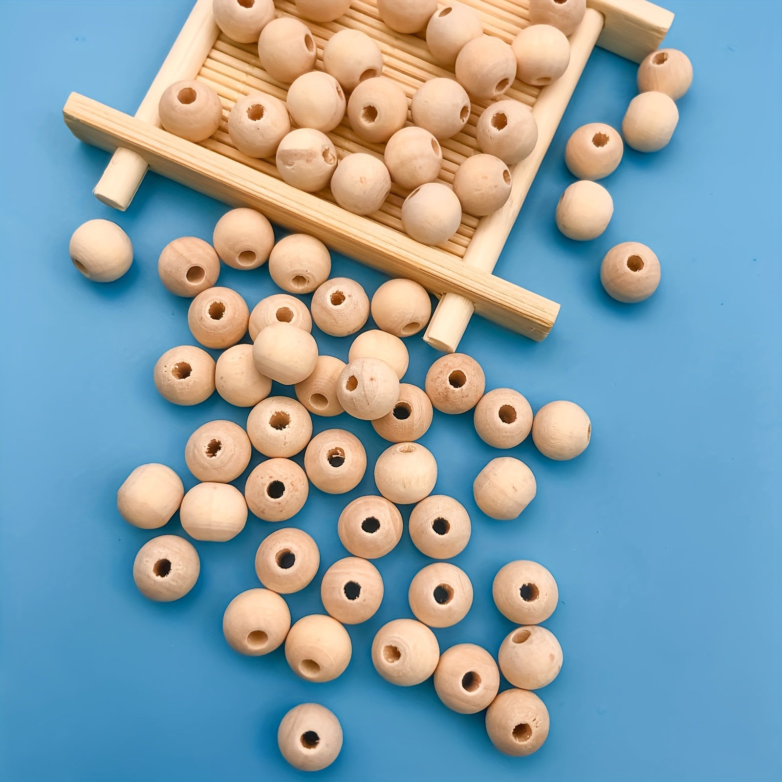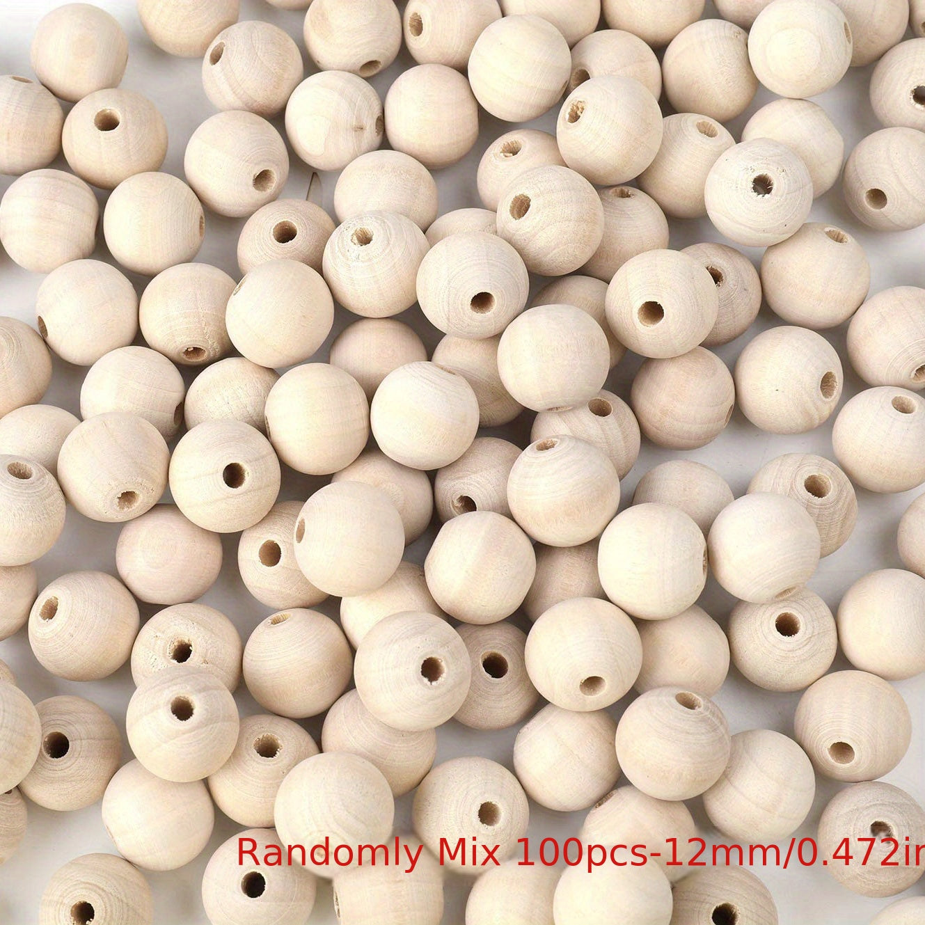 Get this pack of 100 round wooden beads measuring about 10mm each, perfect for making decorations and DIY crafts.