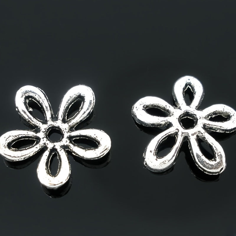 These silver plated daisy spacer metal beads are perfect for jewelry making. Each bead measures 11mm with a hole size of 1mm.