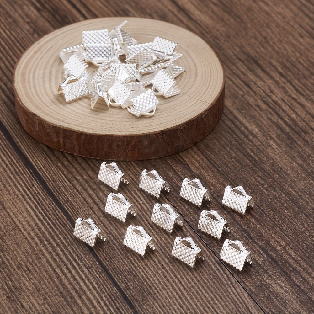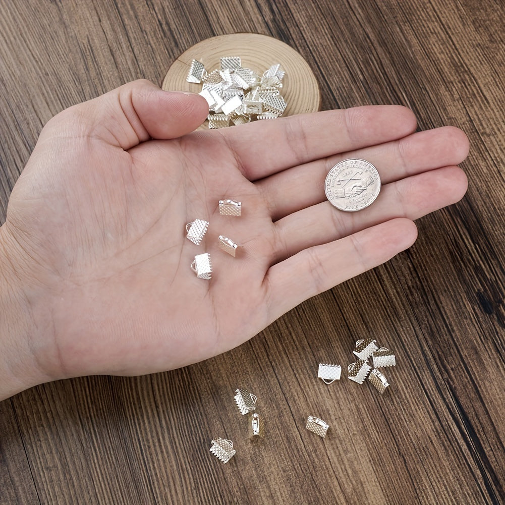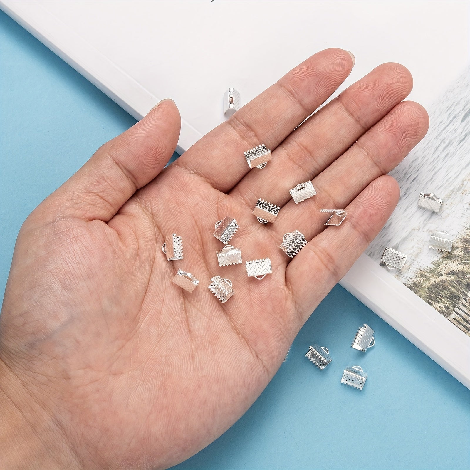 Get this pack of 100 silvery iron ribbon crimp ends to create stunning necklaces, bracelets, and other jewelry pieces. Perfect for DIY projects.