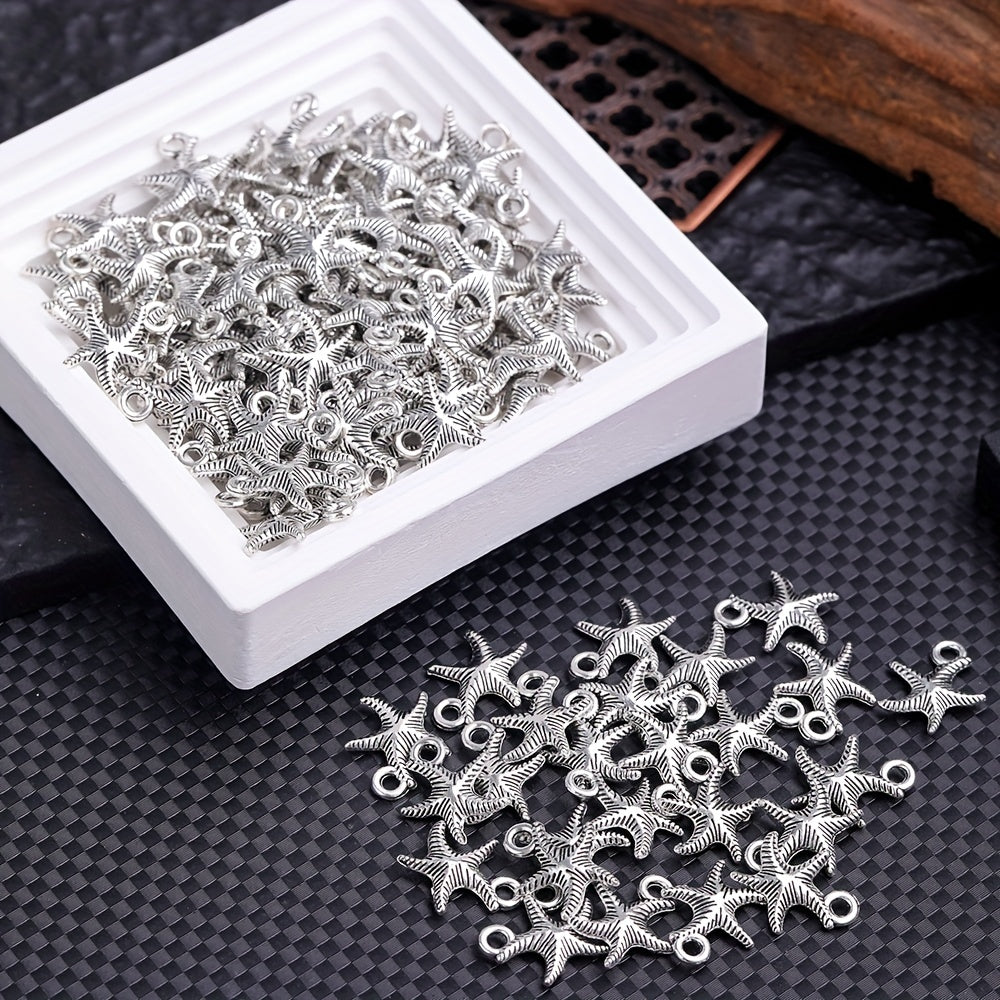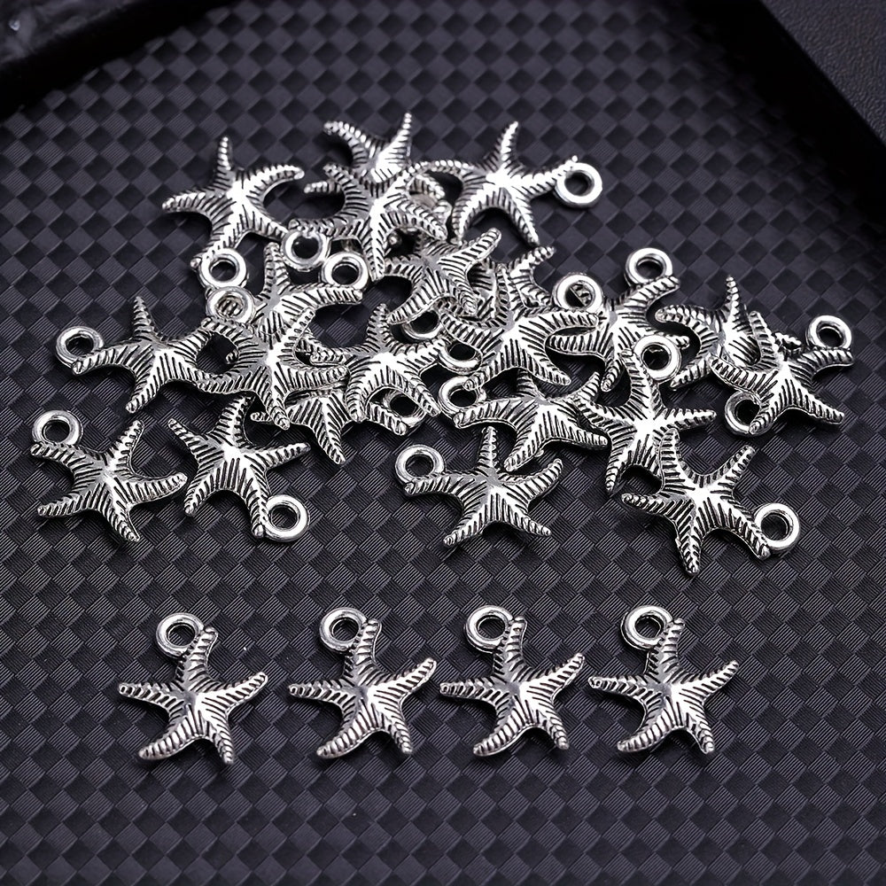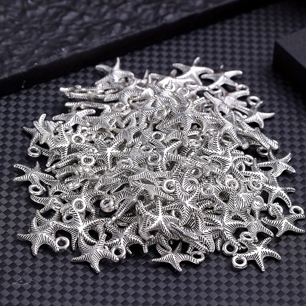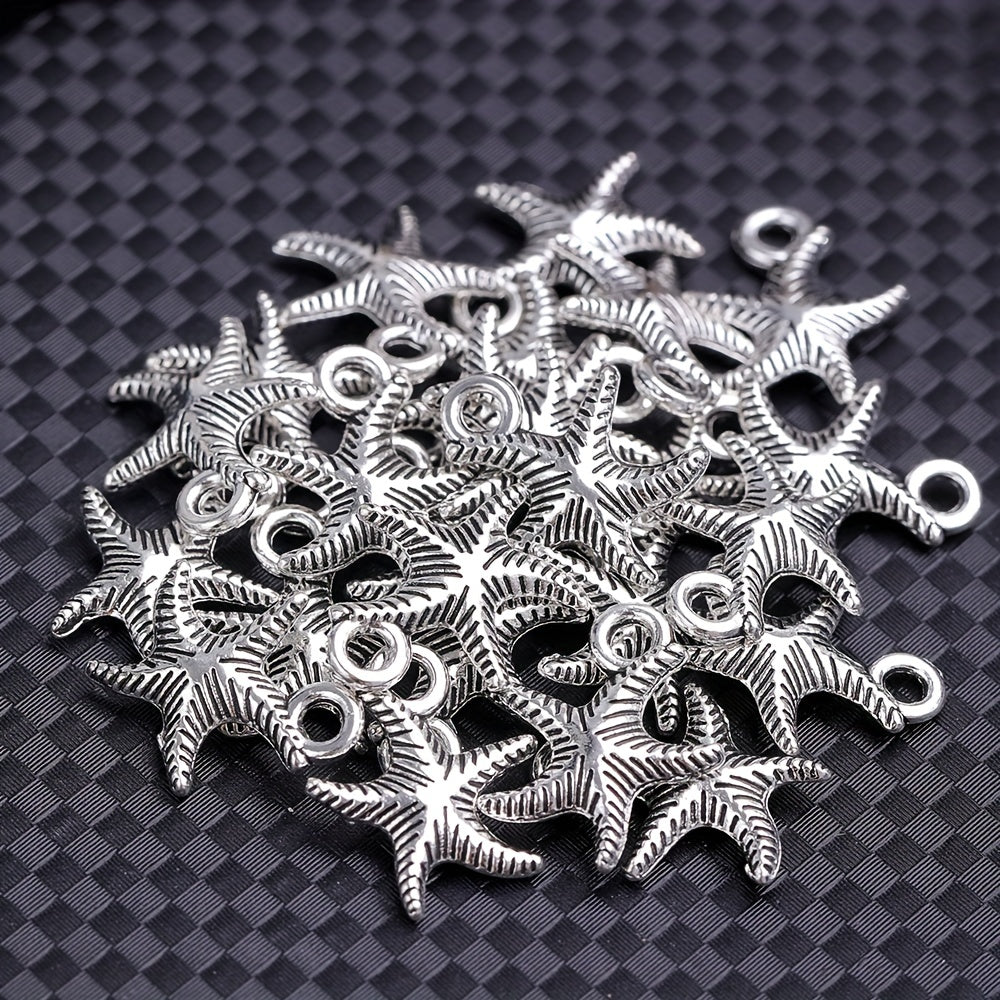 Enhance your jewelry making with these silvery starfish alloy pendants. Perfect for earrings, bracelets, necklaces, and other accessories.