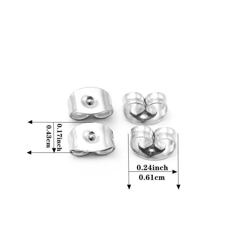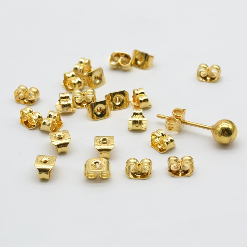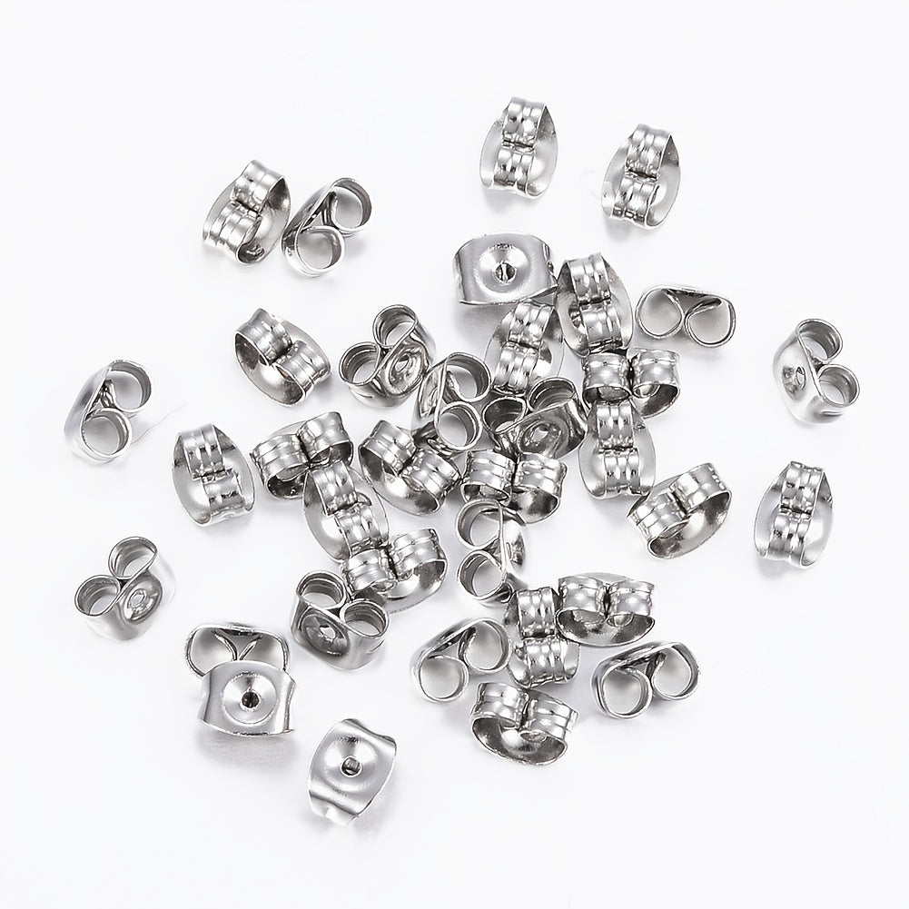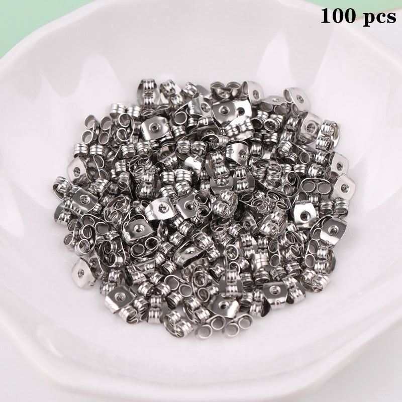This set includes 100 high quality stainless steel earring back plugs in golden and silver plated finishes. Perfect for DIY earring projects.