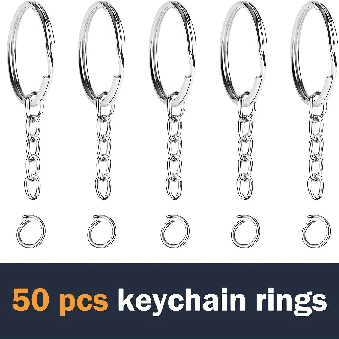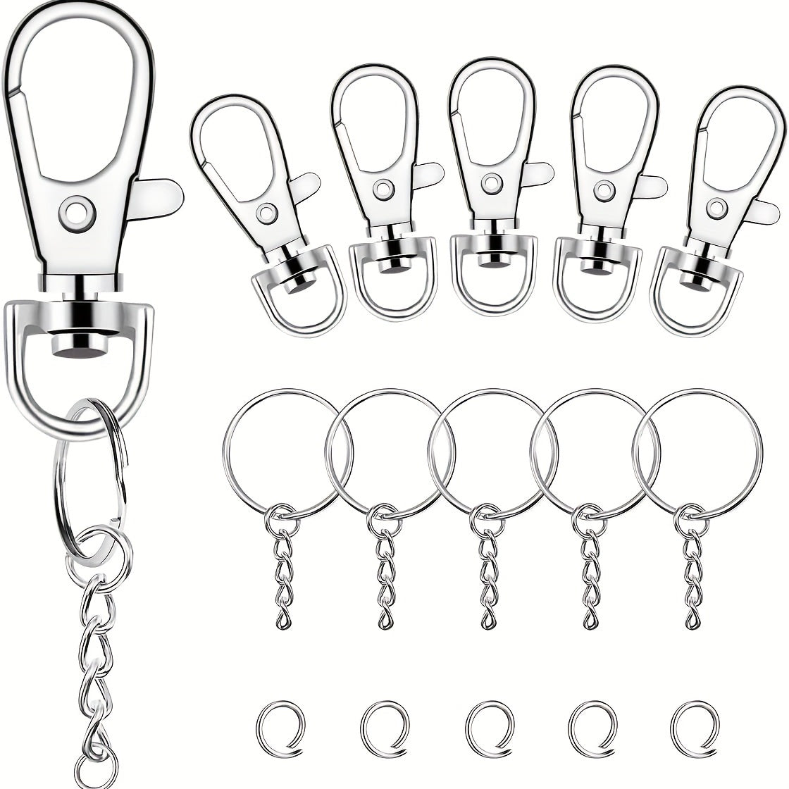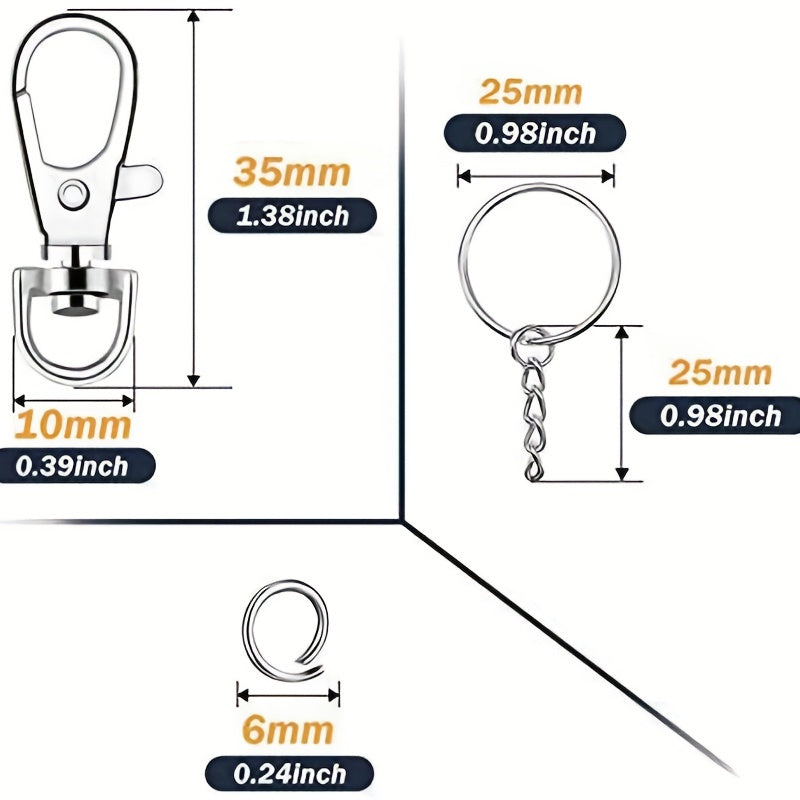 This set includes 50pcs lanyard snap hooks and 50pcs key rings with chains and jump rings. Perfect for creating keychains, lanyards, and jewelry crafts.
