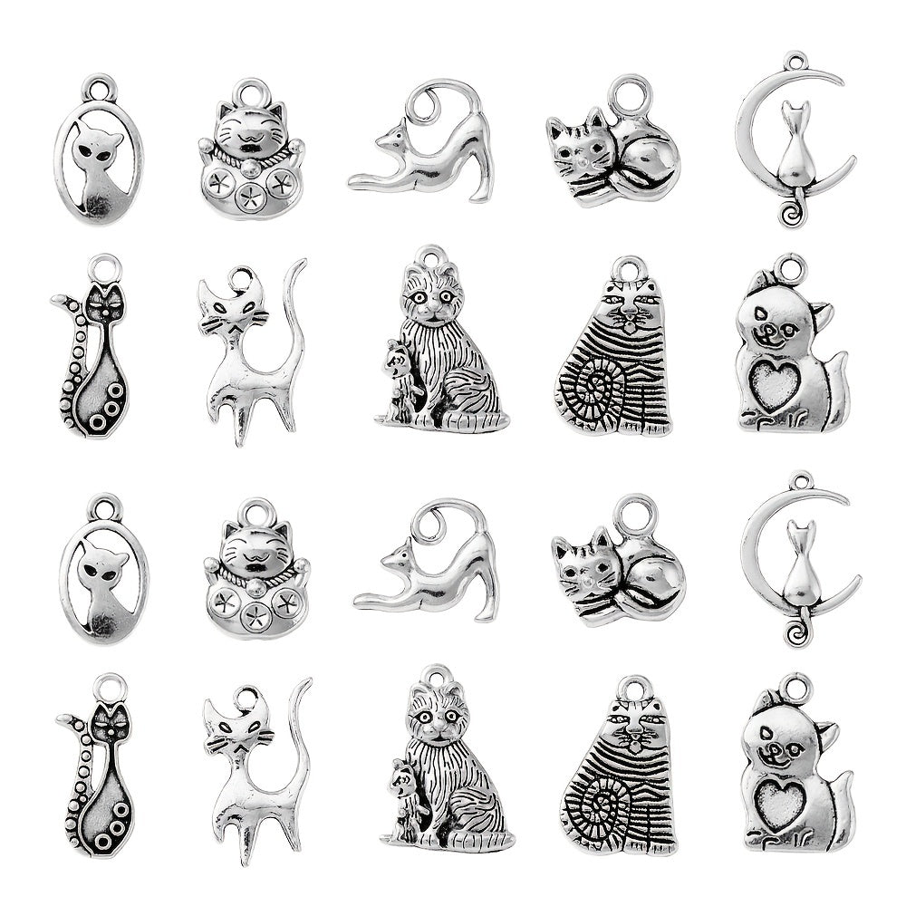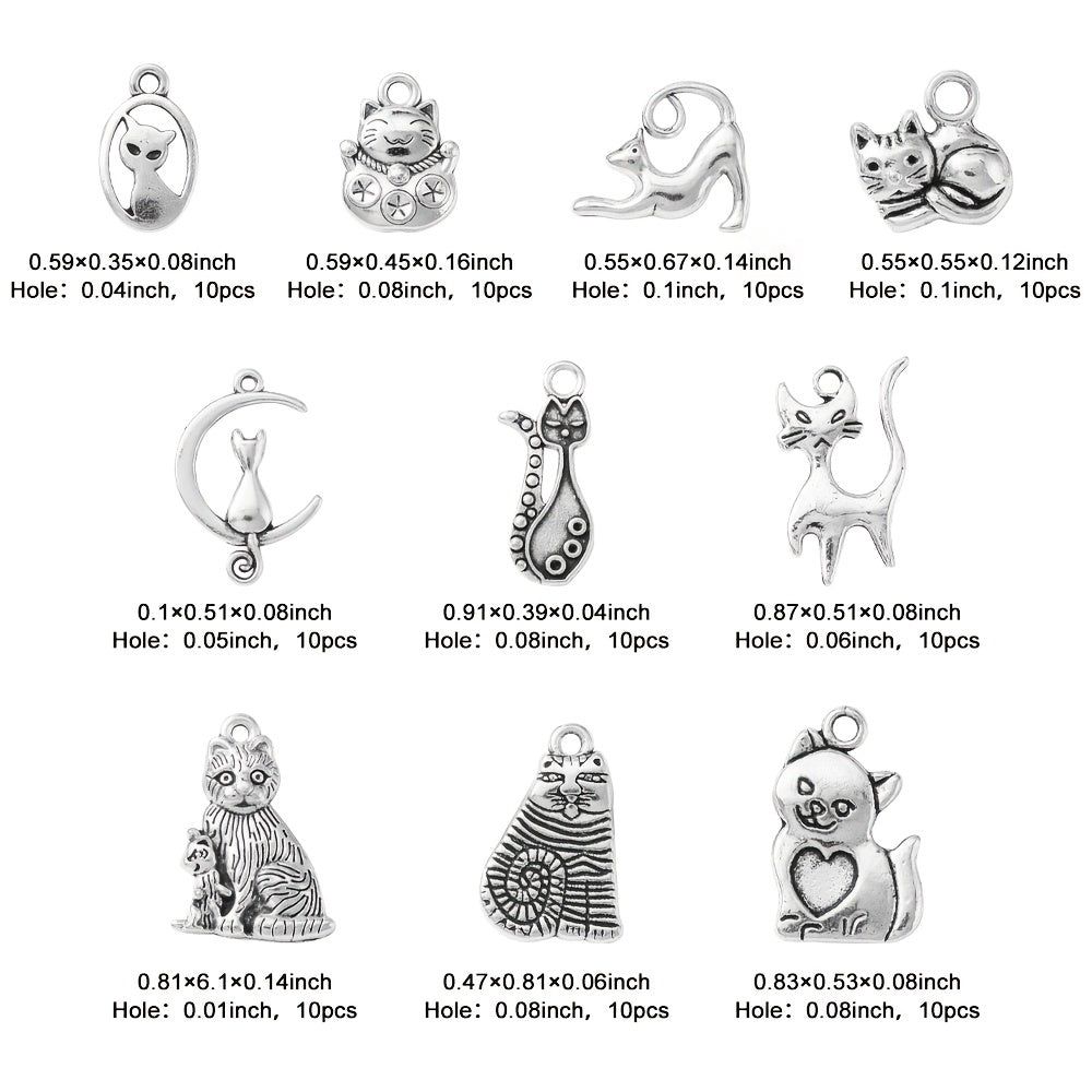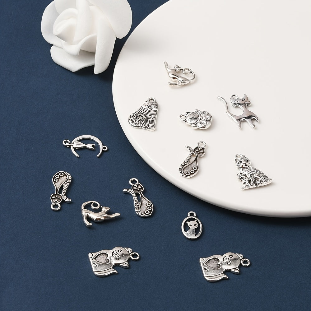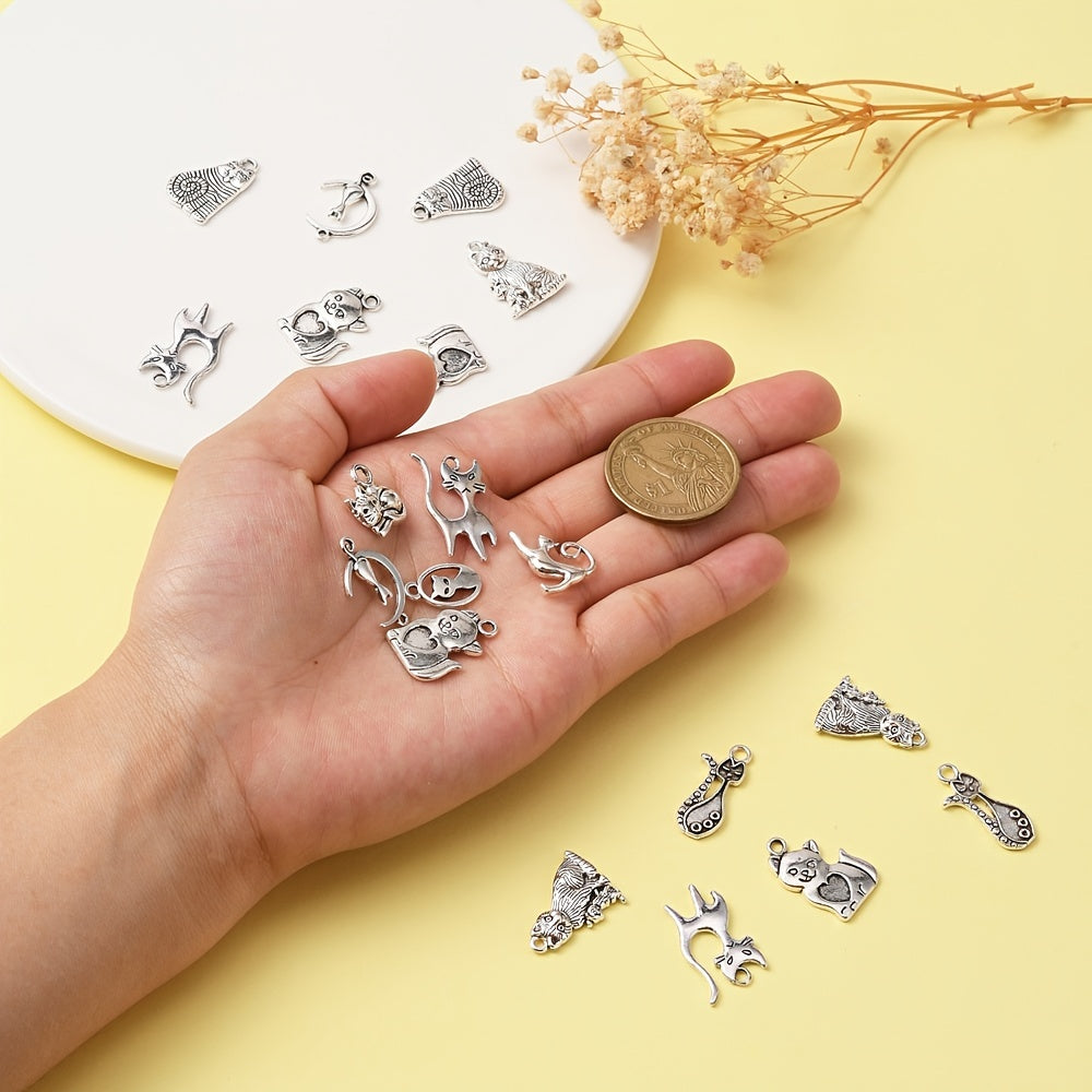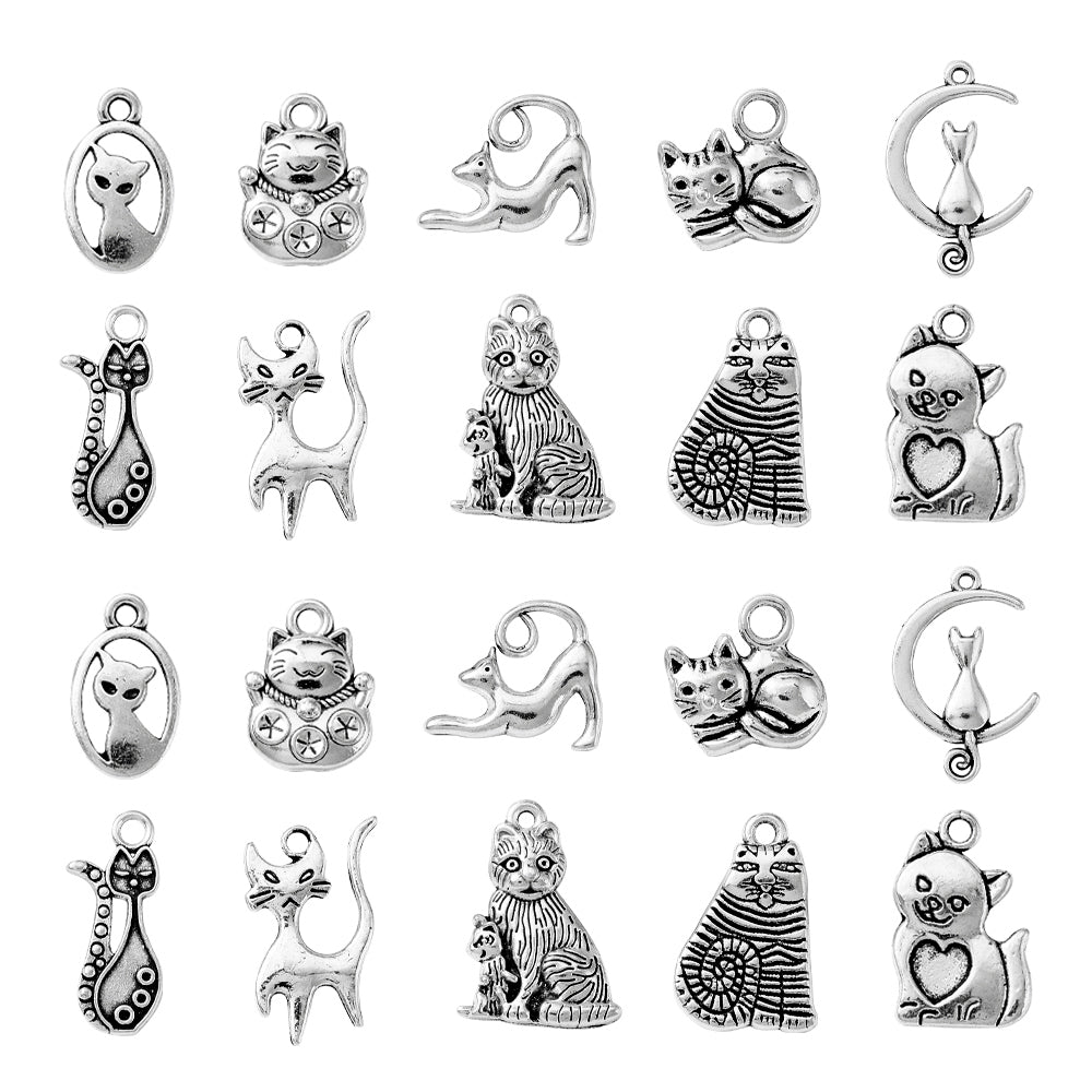 Get creative with these 100 Tibetan style alloy cat charms perfect for DIY jewelry making. The set includes 10 styles of adorable kitten charms.