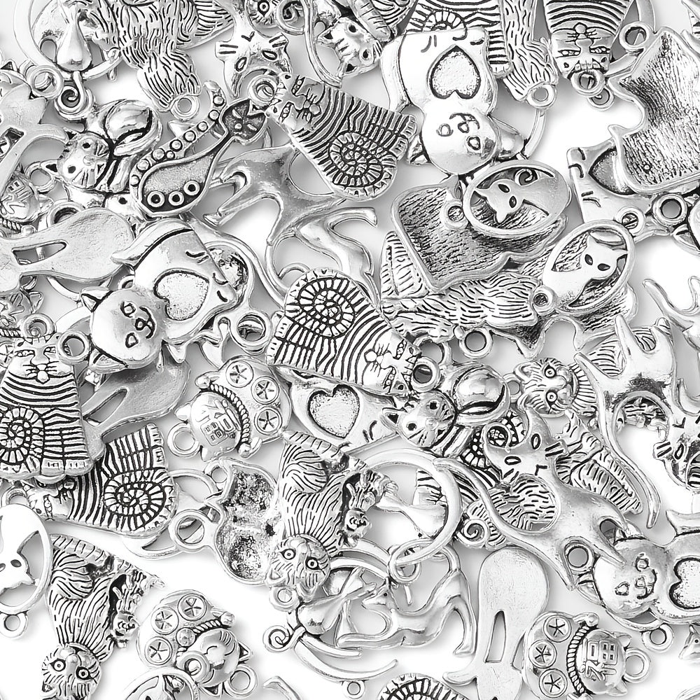 100pcs Tibetan Alloy Cat Charms DIY Animal Jewelry Making