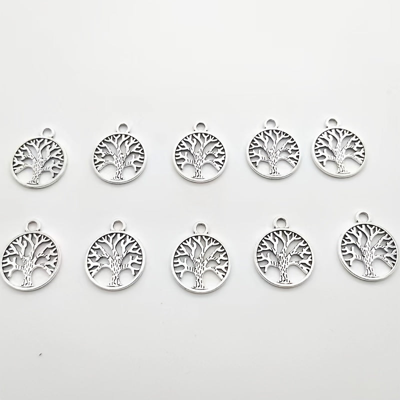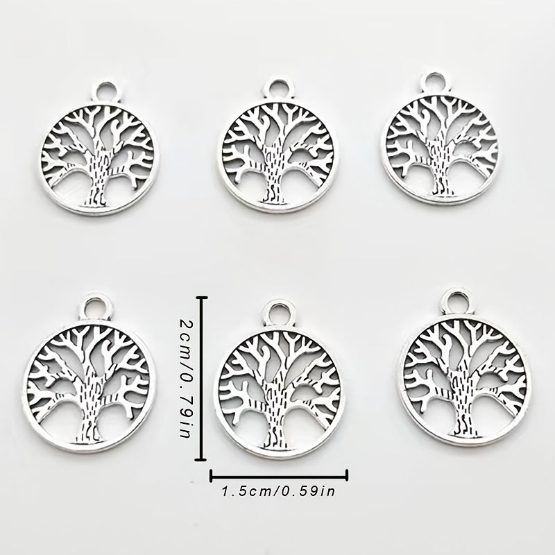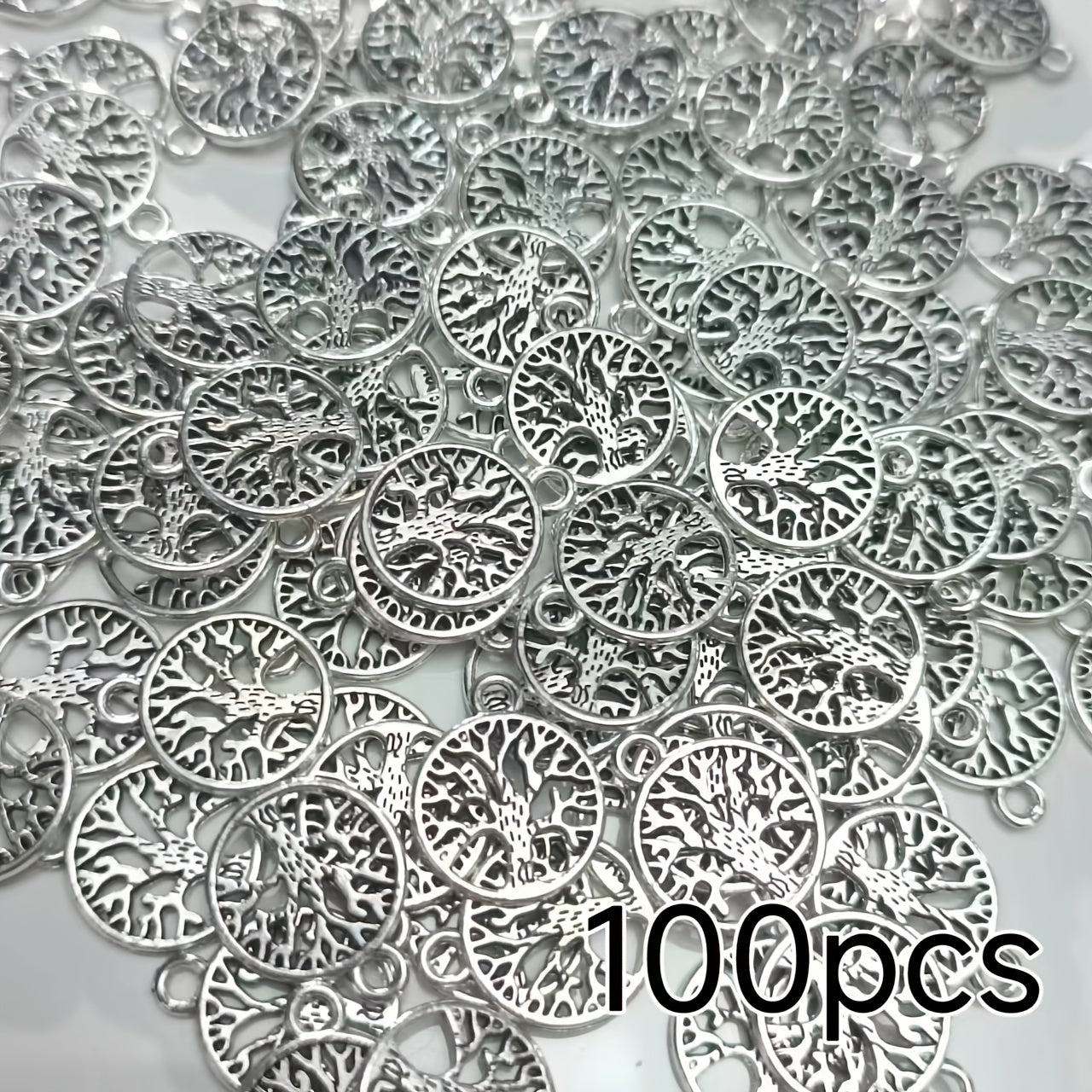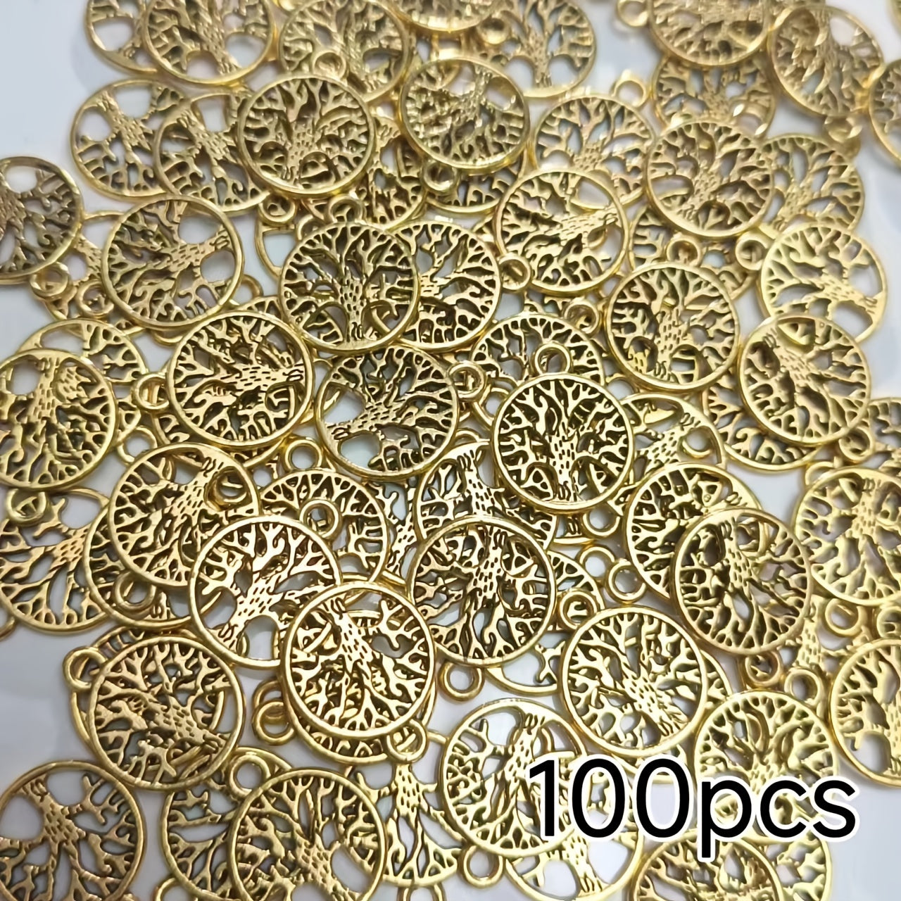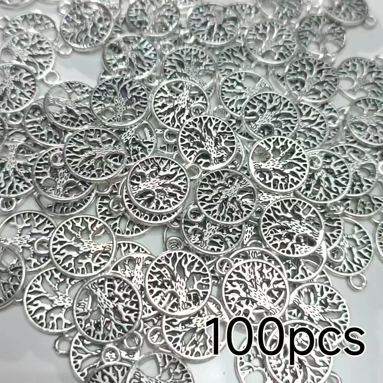 This set includes 100 Tibetan silver and golden hollow tree of life alloy pendants, perfect for creating bracelets, necklaces, and other jewelry pieces.