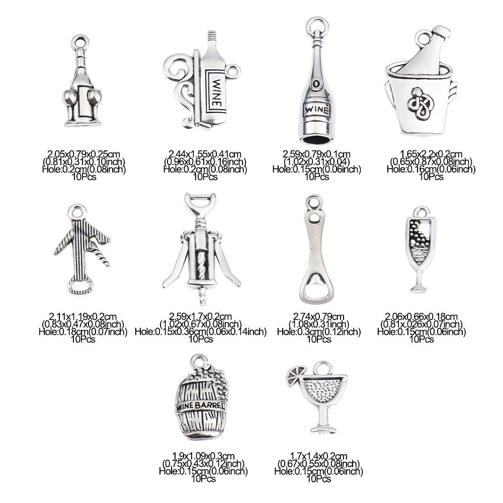 Get a set of 100 wine drinks charms with 10 different styles for DIY jewelry making. Perfect for adding a touch of elegance to your creations.