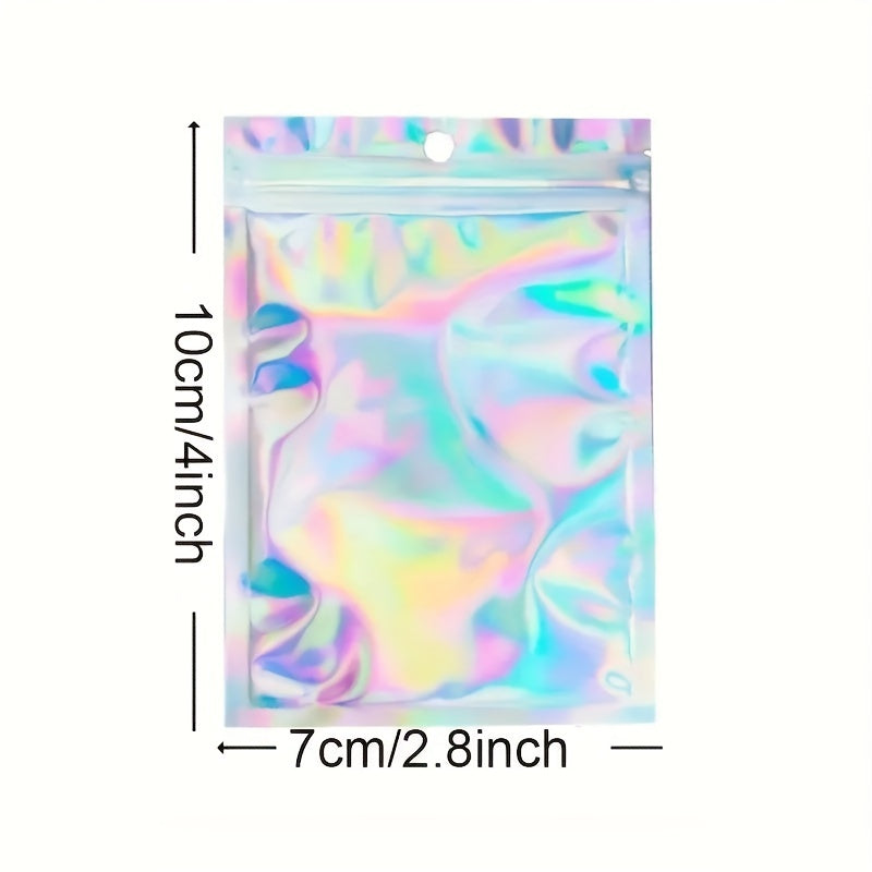 Get 100 ziplock lash packaging bags ideal for DIY gift packing. These holographic bags are perfect for storing lashes or small items.