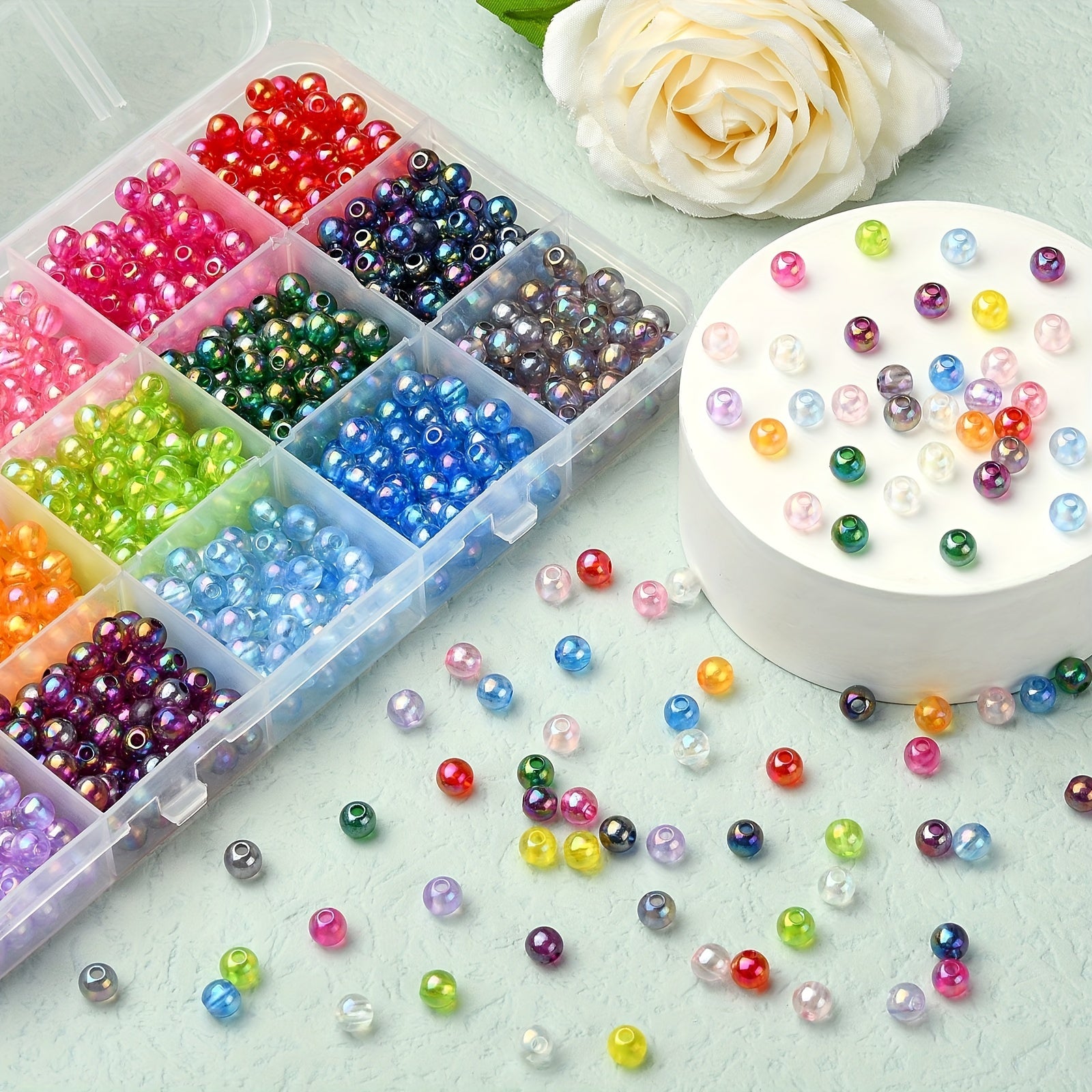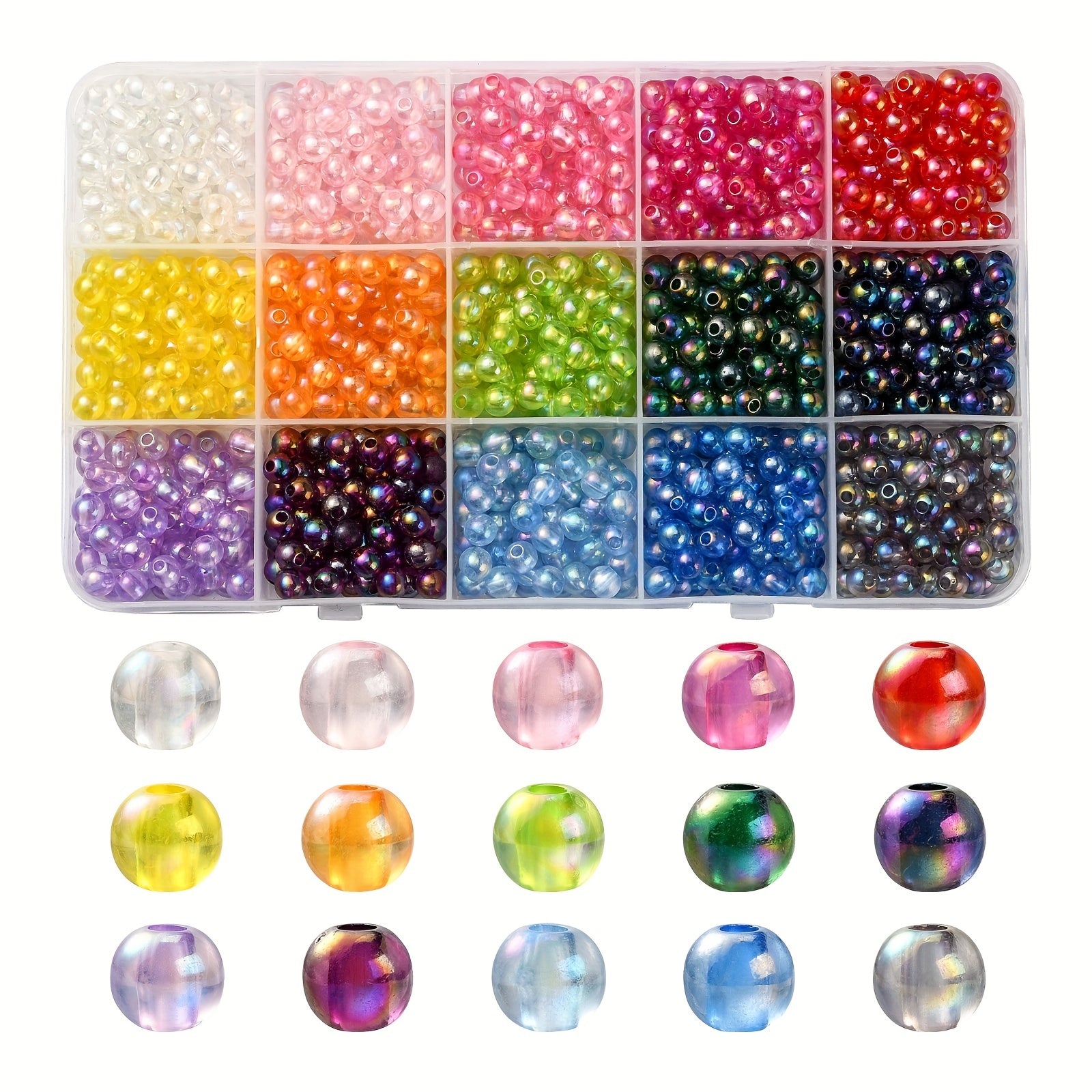 Get creative with these 1080pcs of 6mm transparent AB acrylic round beads in 15 vibrant colors. Perfect for making necklaces, bracelets, keychains, and other jewelry accessories.