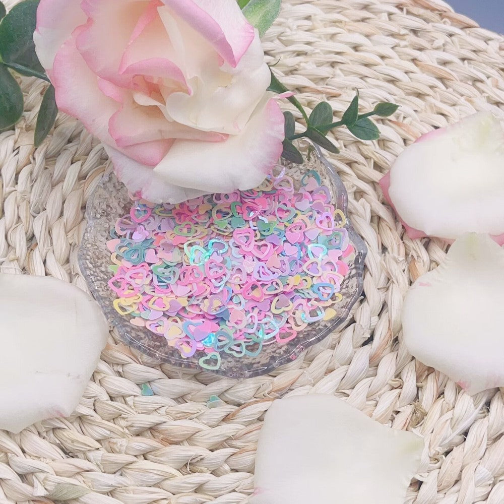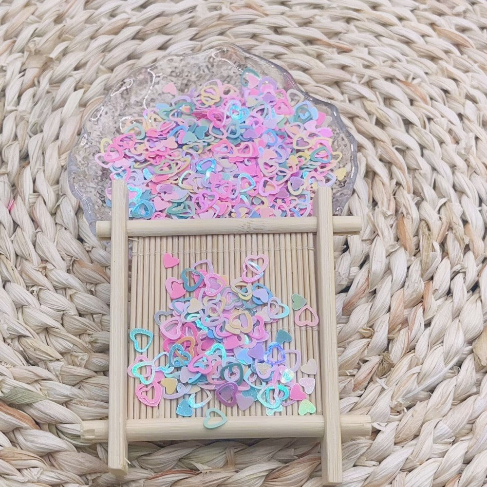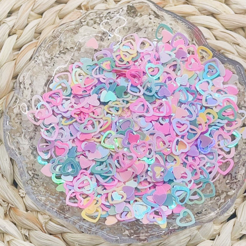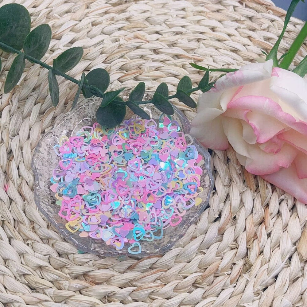 Add a touch of sparkle to your clothing, crafts, nail arts, slime projects and more with these hollow heart sequins. Each pack contains 10g of glittery sequins that are perfect for various DIY projects.