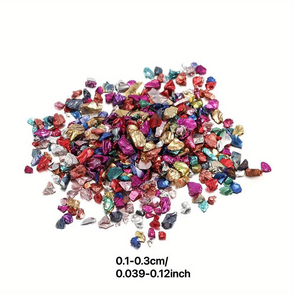 Enhance your DIY projects with this 10g pack of shimmering glass gravel. Perfect for adding a touch of elegance and sparkle to your crafts.
