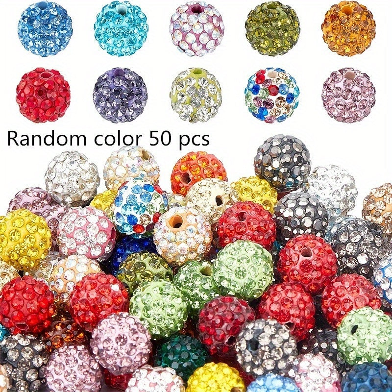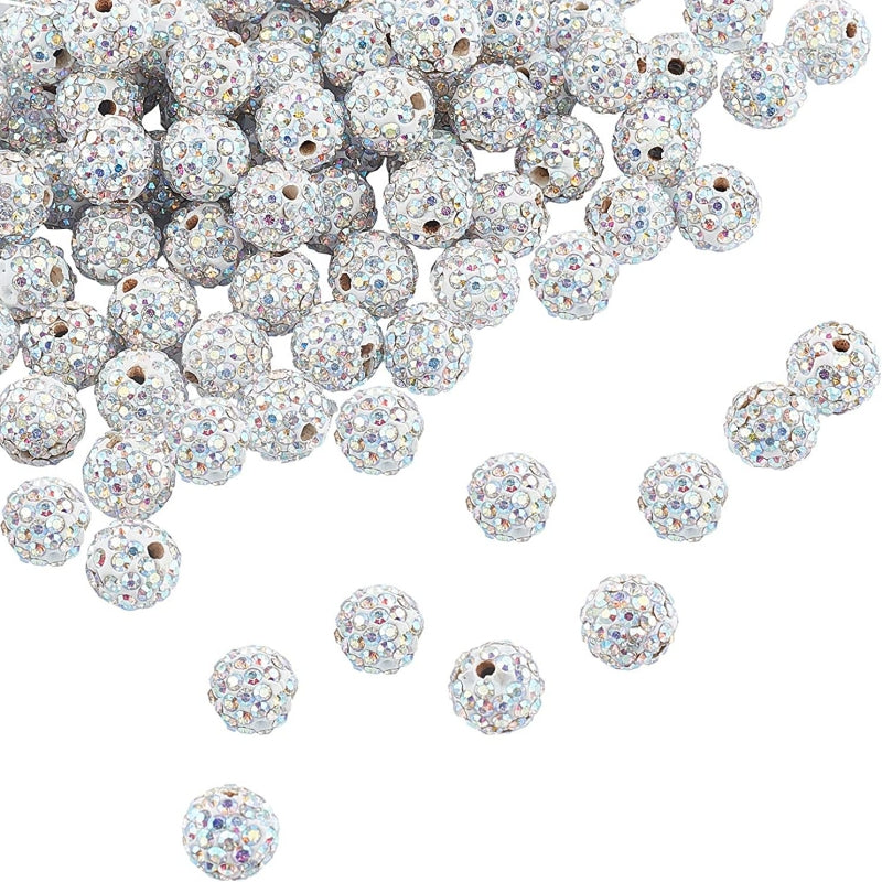 Add sparkle to your DIY jewelry projects with these 10mm rhinestone disco ball clay beads. These round charms are perfect for creating unique accessories.