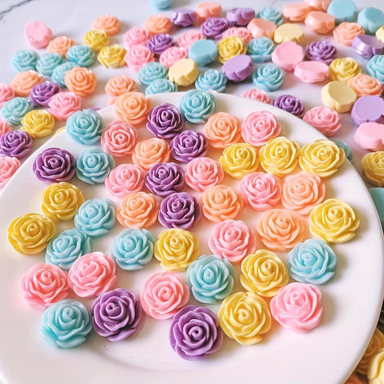 These 10 mini macaroon rose resin pendant beads are perfect for jewelry making, clipbook, nail decoration and hair accessories. Each bead measures approximately 0.67 inches in size.