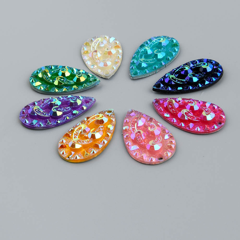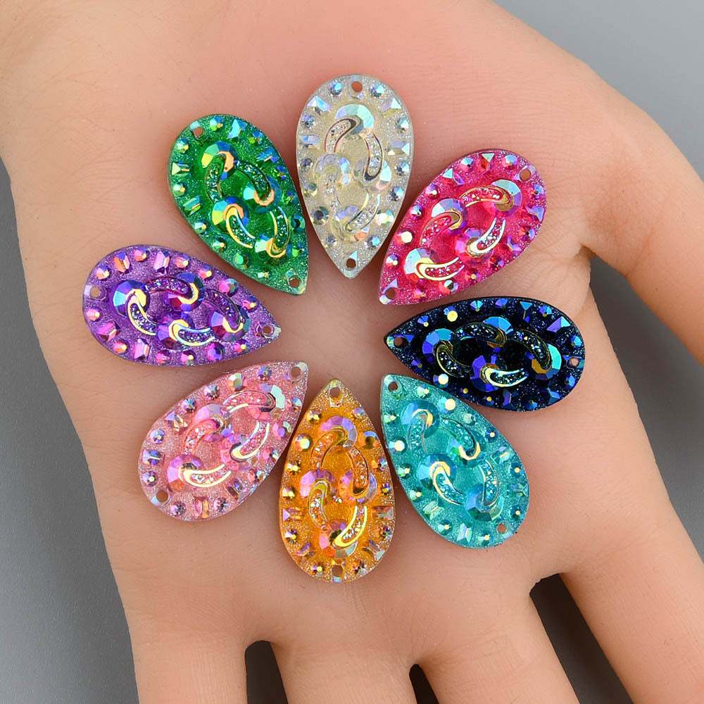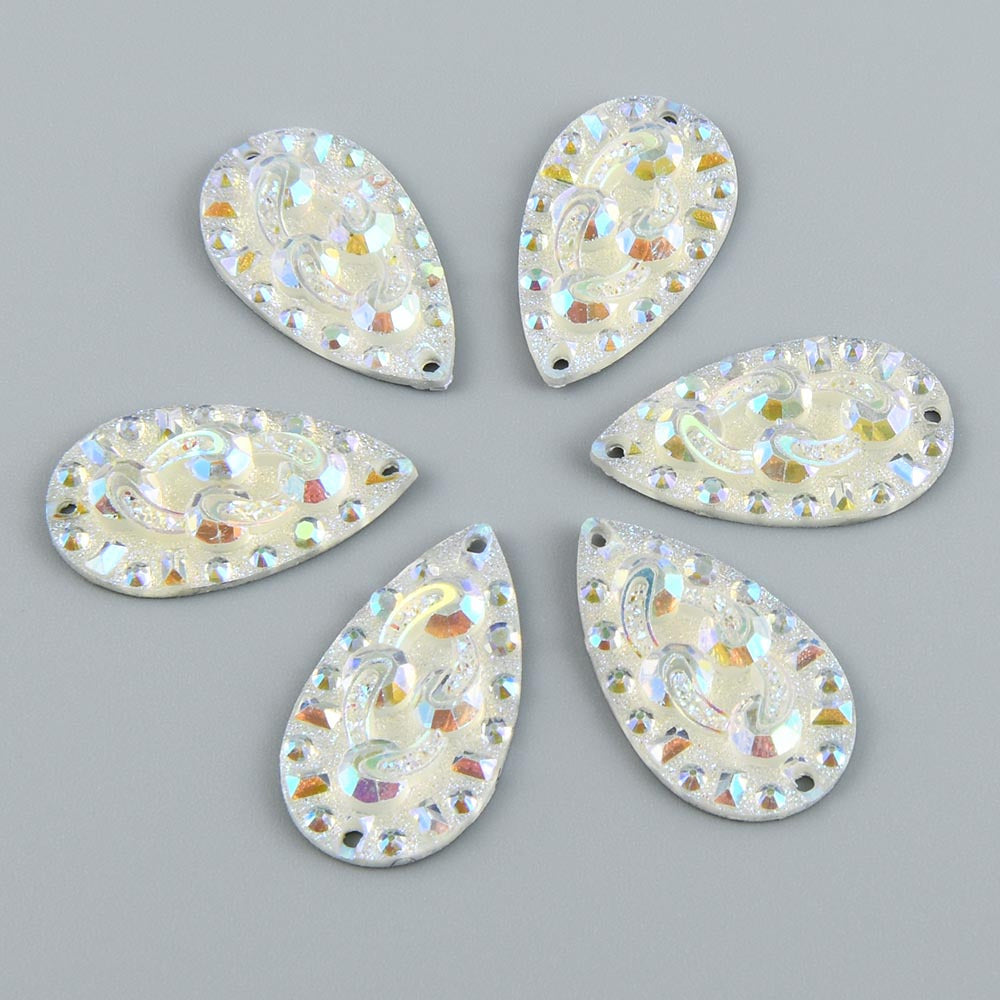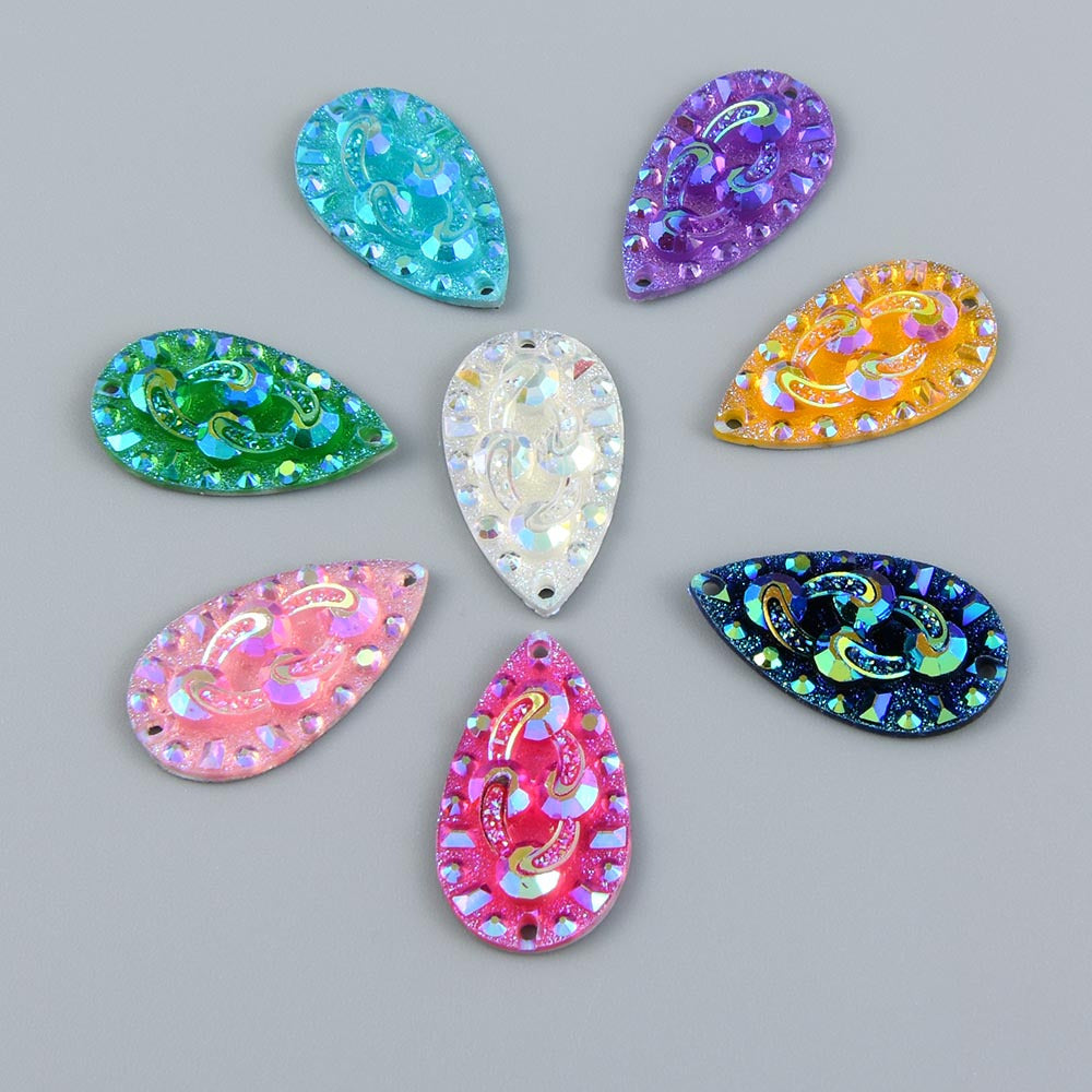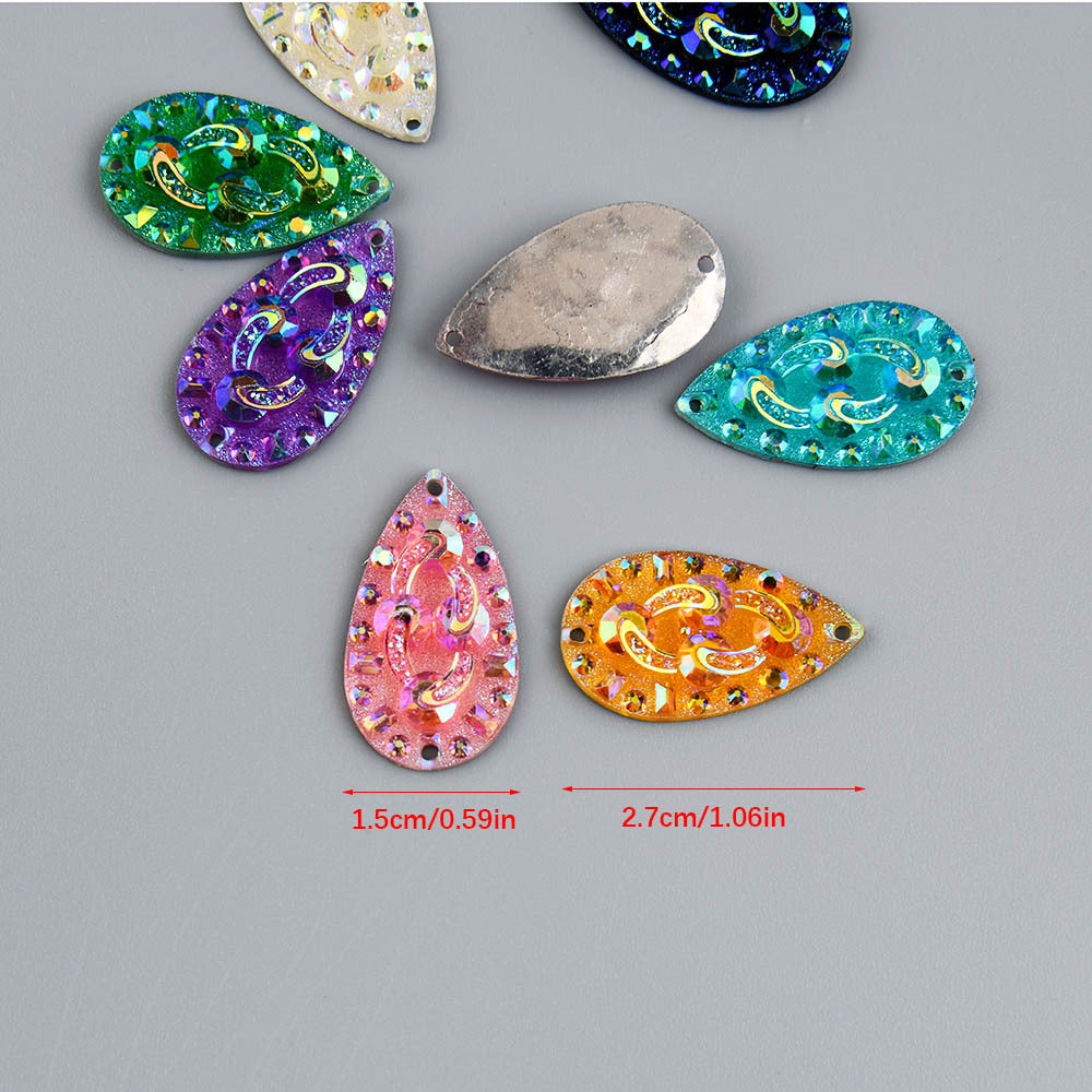These teardrop shape flatback resin rhinestones are perfect for adding a touch of sparkle to your jewelry creations, wedding decorations, and more. They have 2 holes for easy sewing and attachment.
