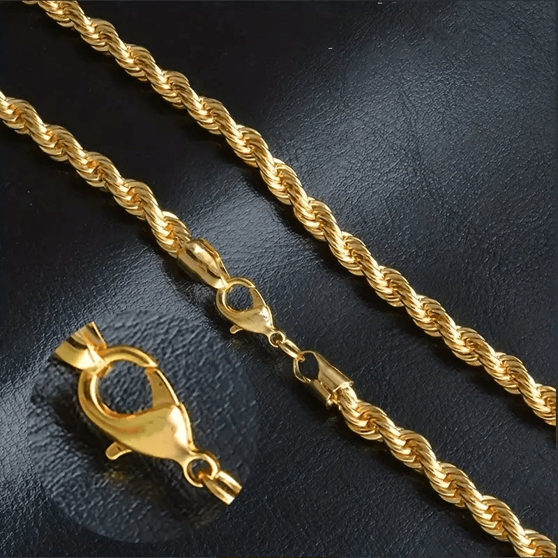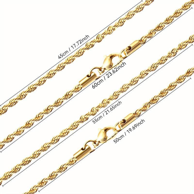 Elevate your style with this set of 10 18K gold plated twisted chain necklaces. Made of high-quality stainless steel, these rope necklaces are durable and stylish, perfect for any occasion.