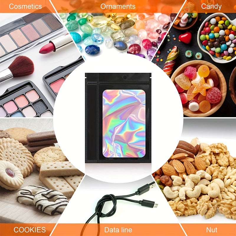 These Mylar food storage bags are perfect for storing party favours, food, self-sealing supplies, and jewelry. The clear window allows you to easily see the contents of the bag.