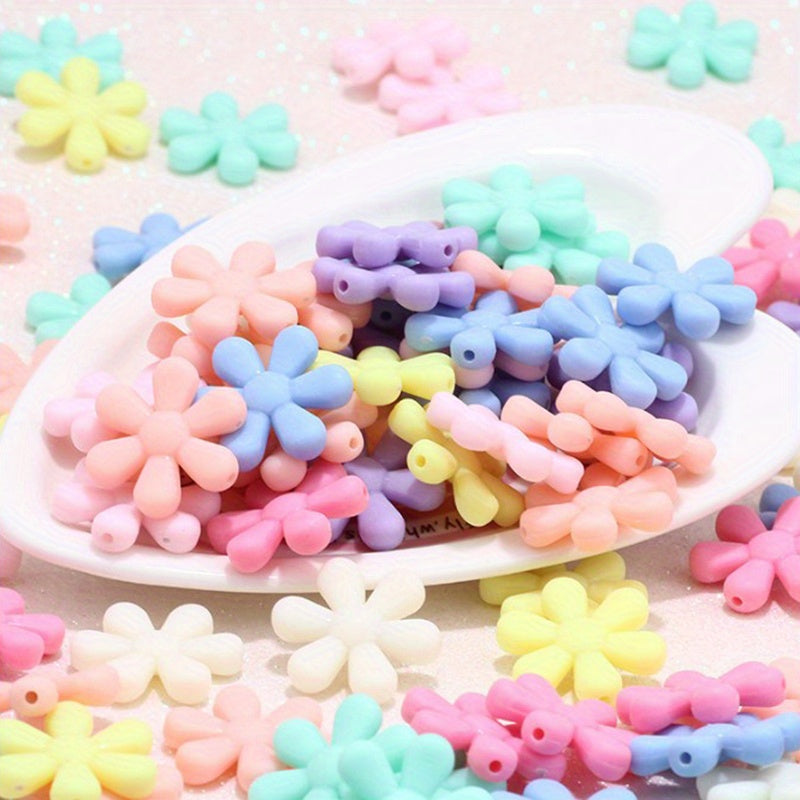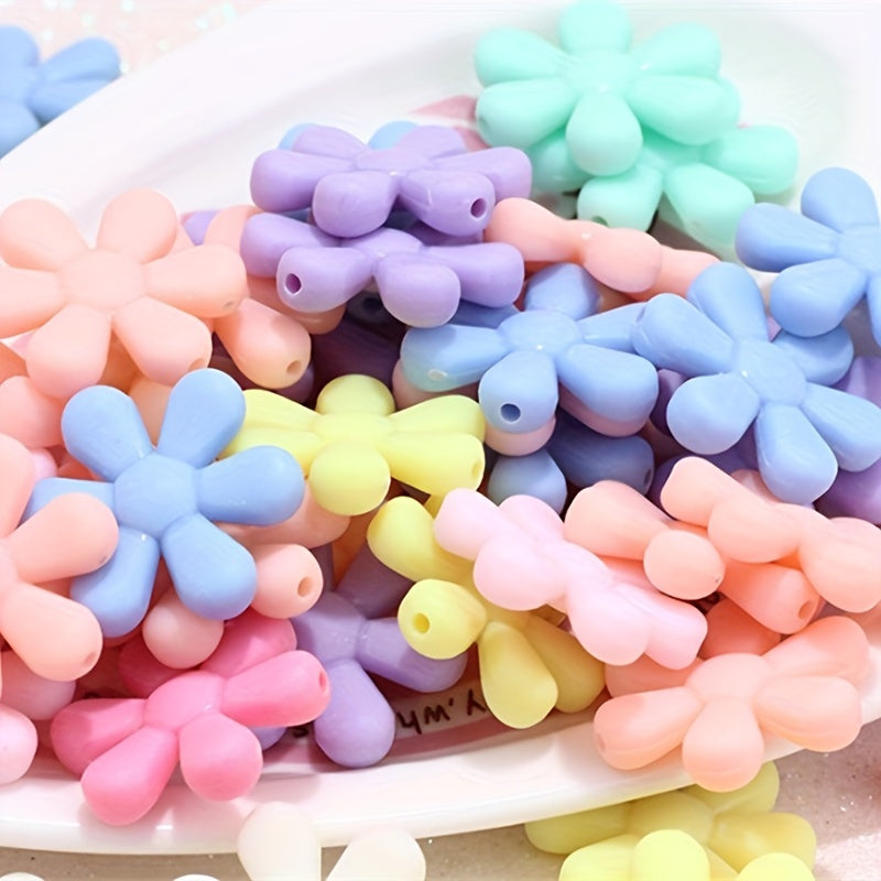 Create beautiful bracelets, necklaces, phone chains, and keychains with these 22mm spring frosted acrylic six petal flower beads.