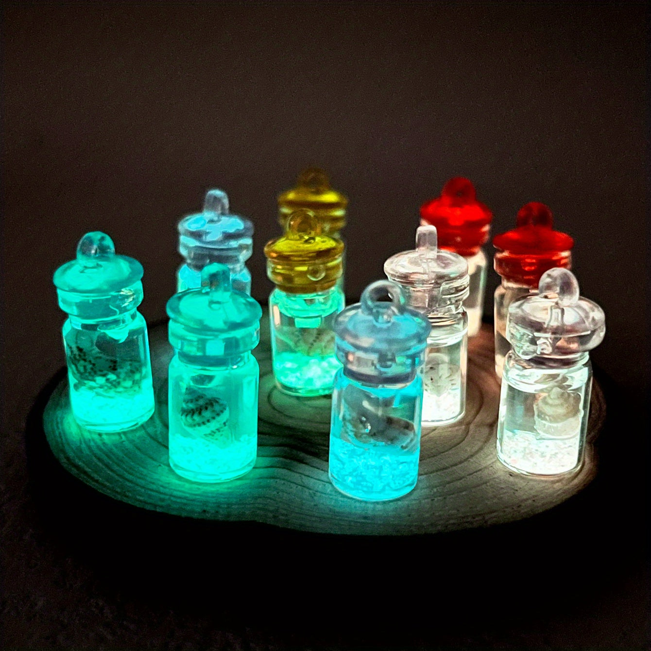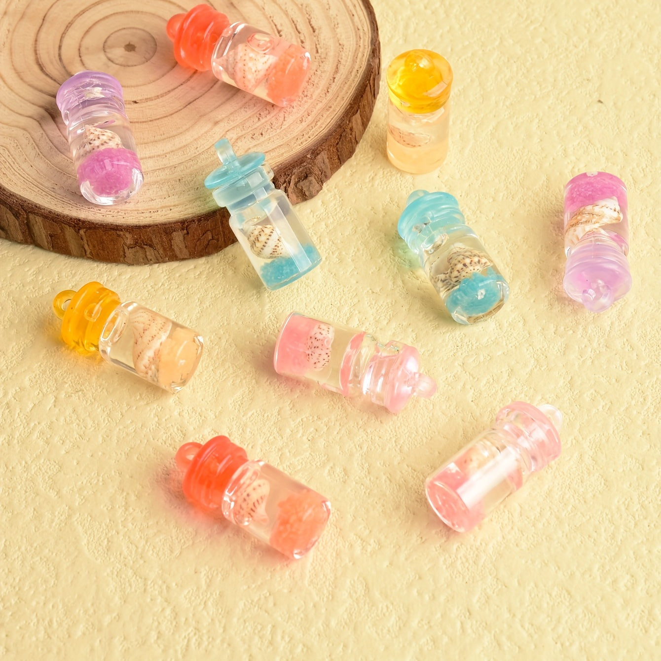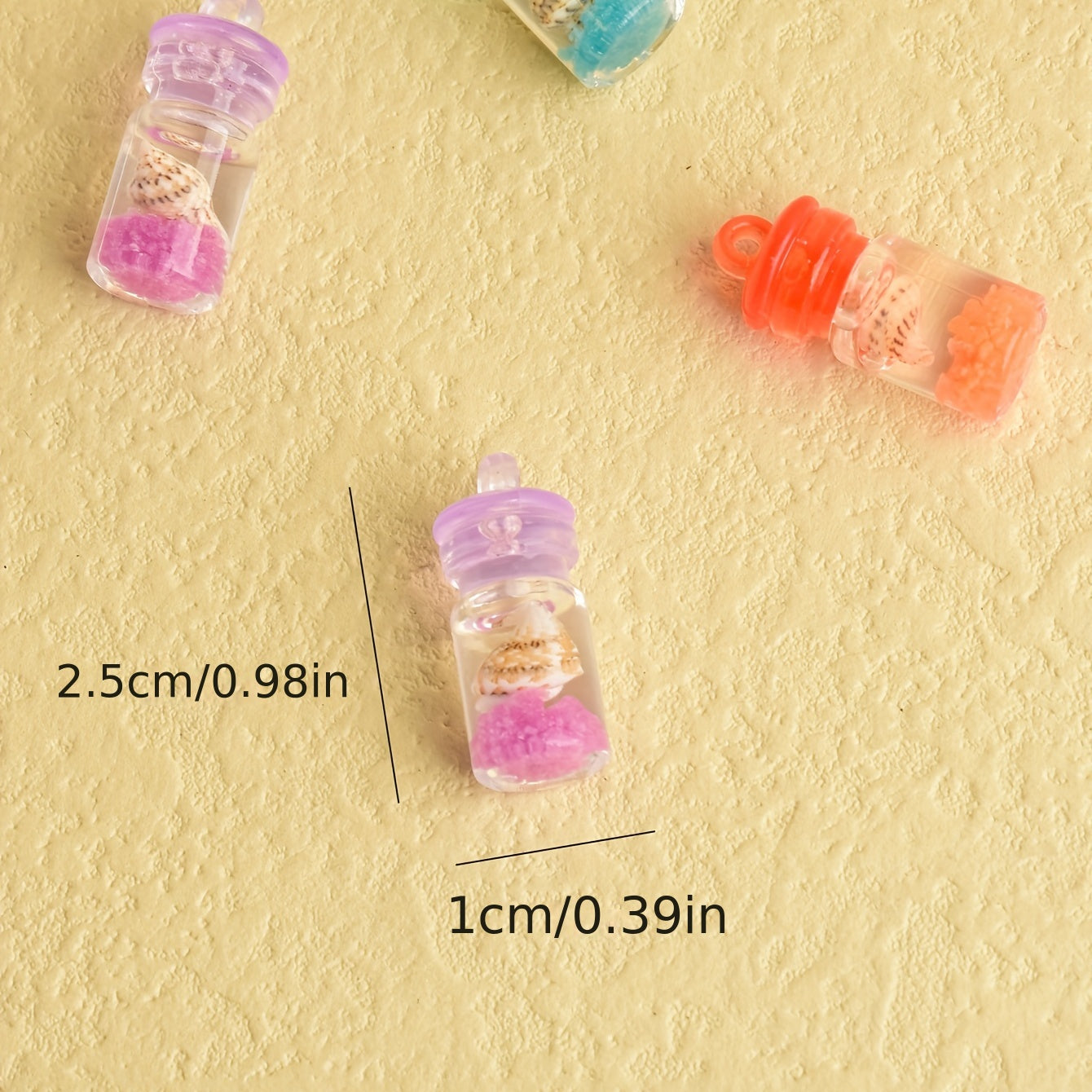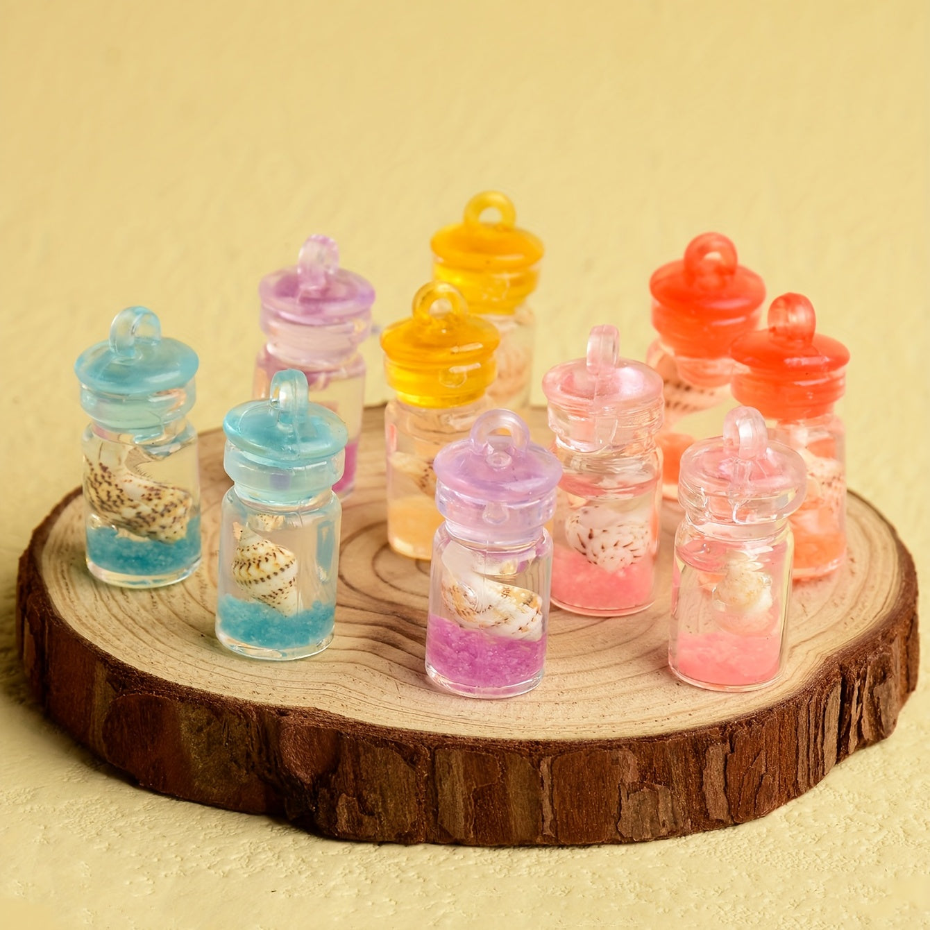Create your own jewelry with this pack of 10 random luminous resin beach conch shell bottle pendants. Suitable for earrings, necklaces, bracelets, key chains, and more.