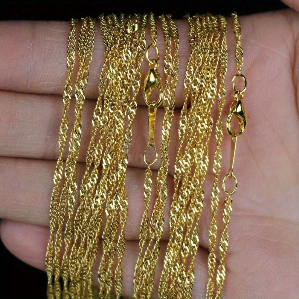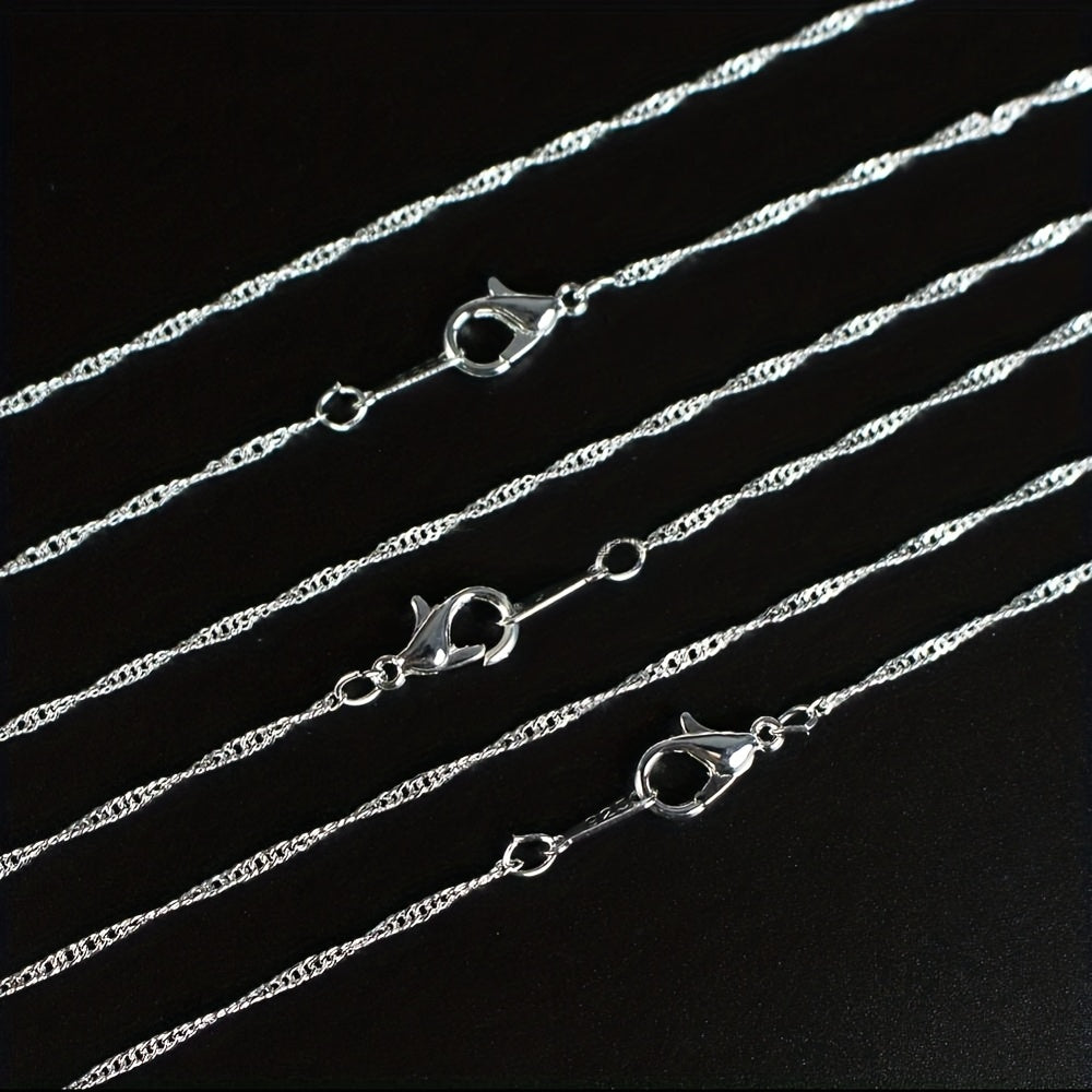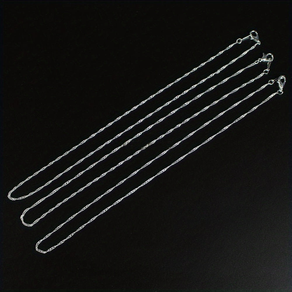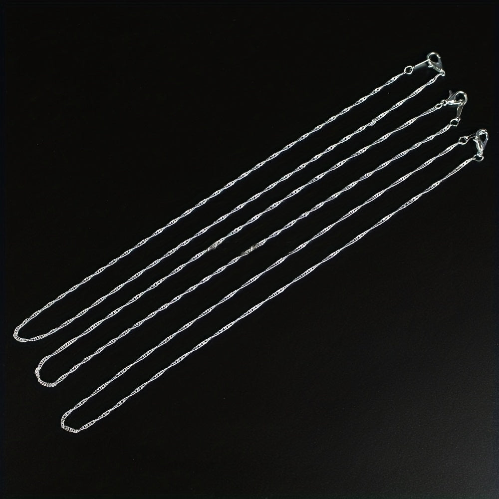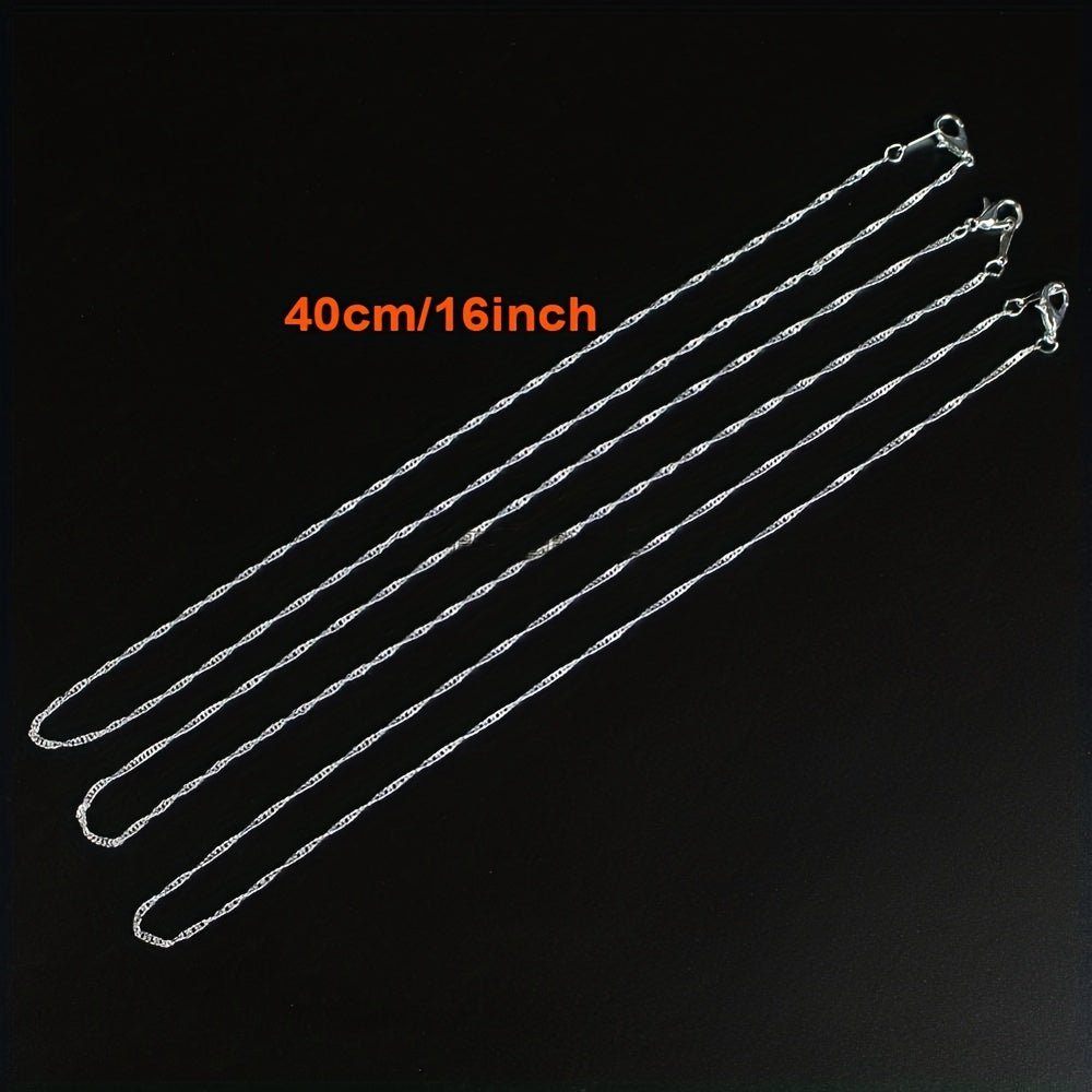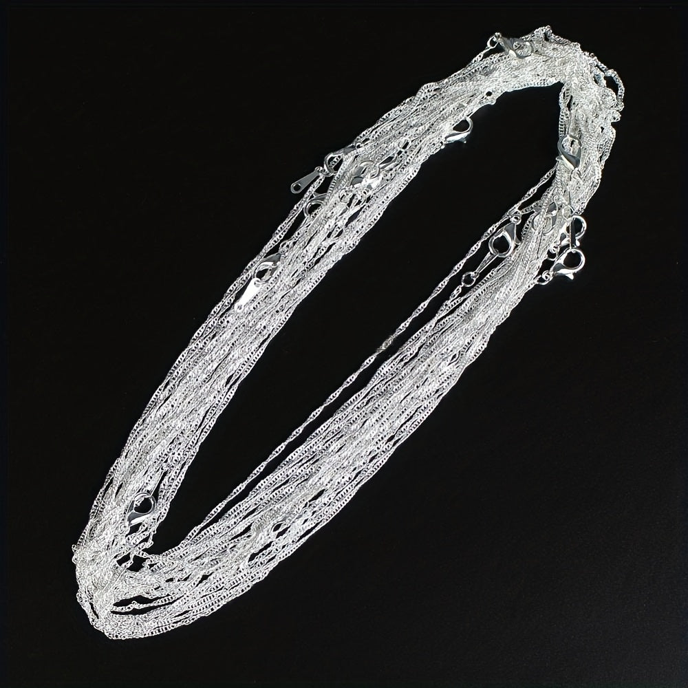 Get a set of 10 water wave chain necklaces for your DIY jewelry projects. Each chain is 2mm thick and silver plated.
