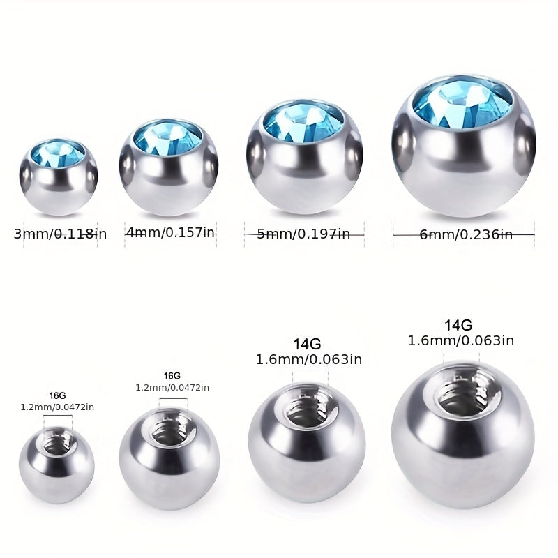 These 10 colorful stainless steel replacement balls are perfect for DIY eyebrow, belly, and more. Available in different sizes and colors to match your style.