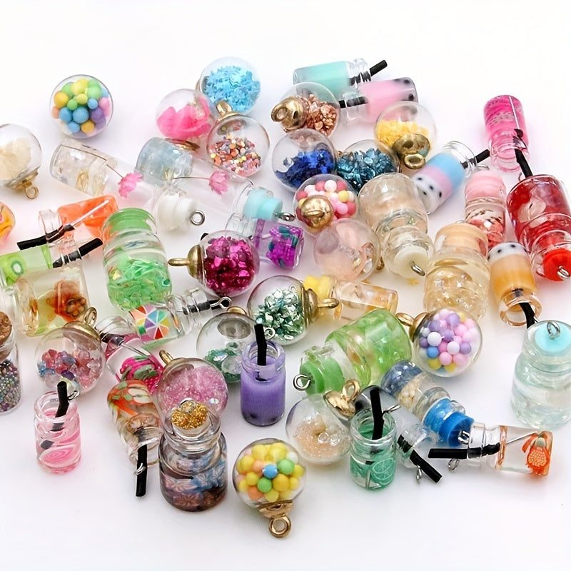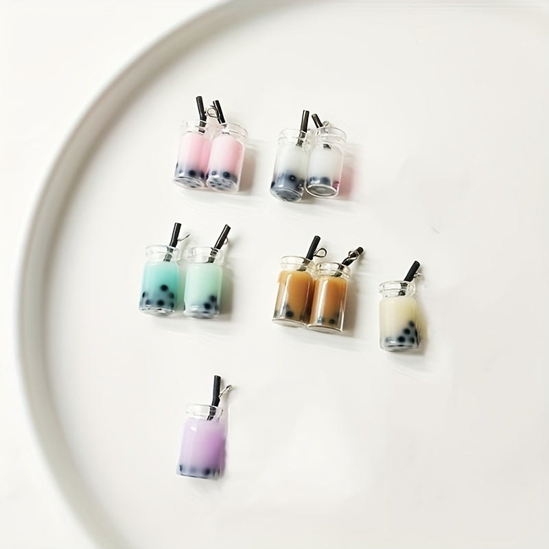 This 10-piece set of cute 3D cartoon DIY jewelry accessories includes mini ice cream, round milk tea cup pendants. Perfect for crafting unique jewelry pieces.