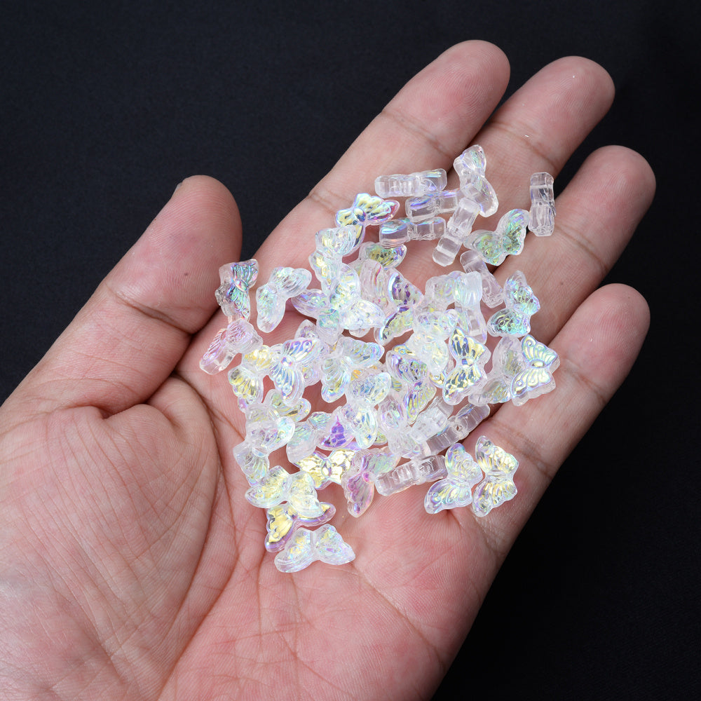 Add a touch of sparkle to your DIY jewelry projects with these colorful AB crystal butterfly beads. Ideal for bracelets, necklaces, and earrings.