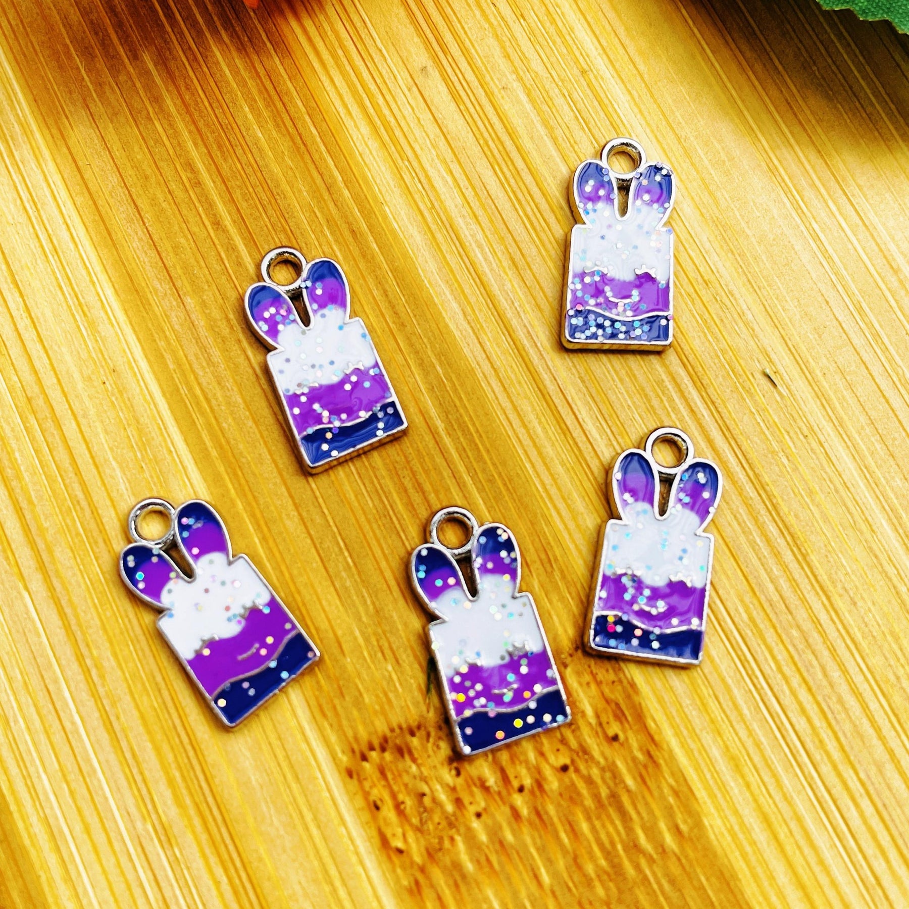 Set of 10 dripping oil sequin rabbit alloy pendants, perfect for making necklaces, bracelets, earrings, and other jewelry items.