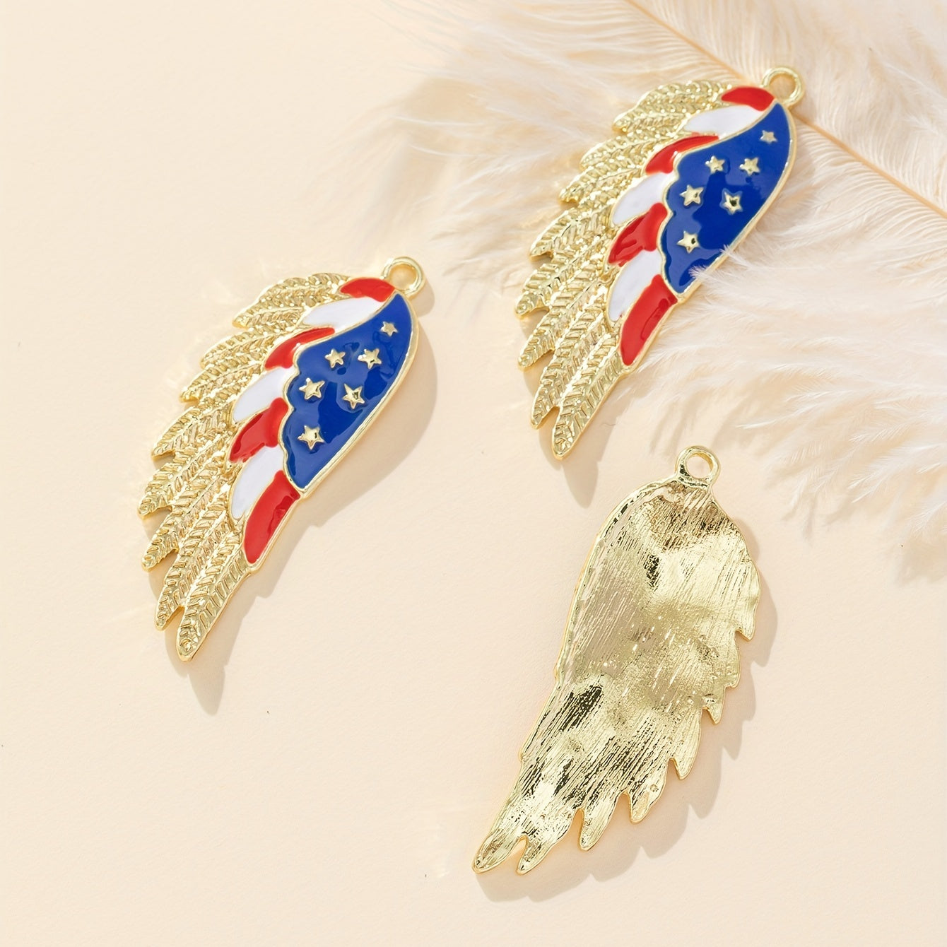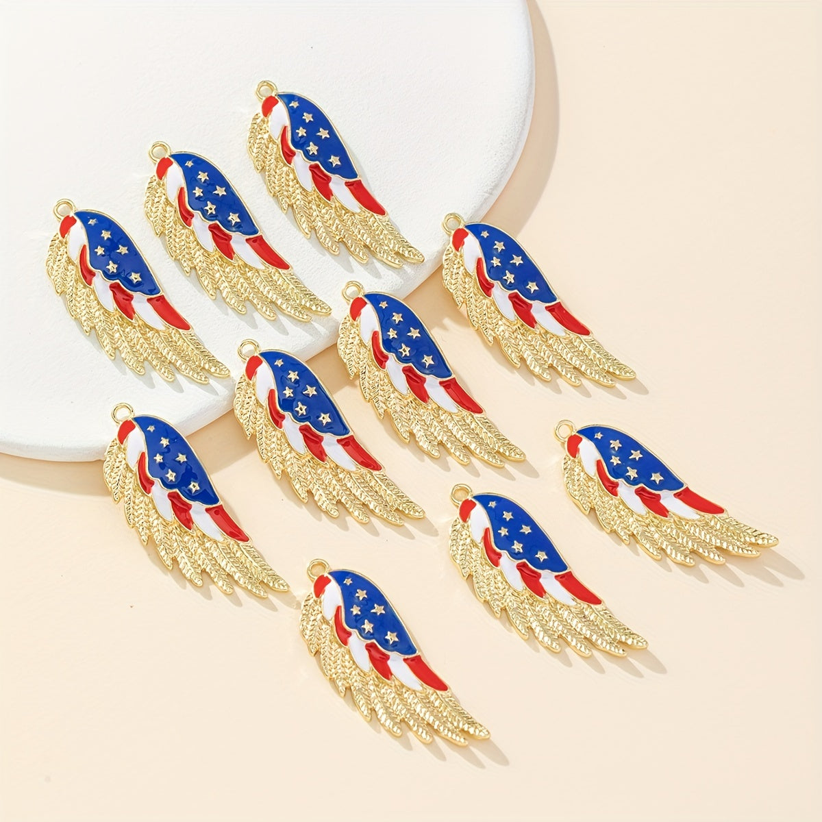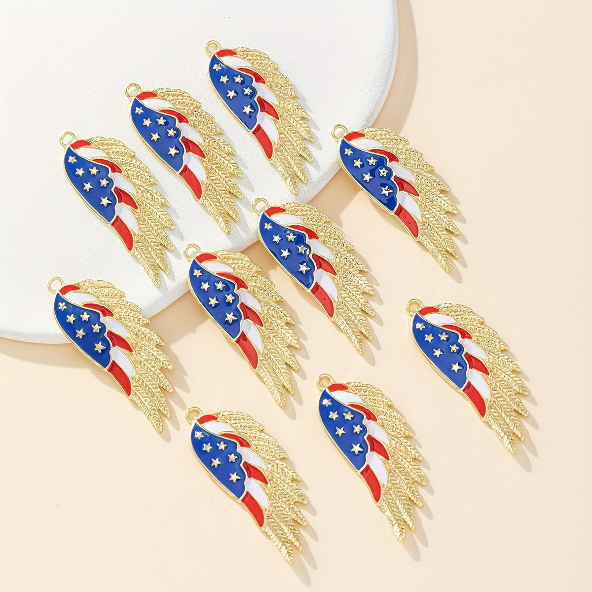 Get patriotic with these American flag pattern golden wing alloy pendants. Perfect for creating custom earrings, bracelets, necklaces, and other accessories.