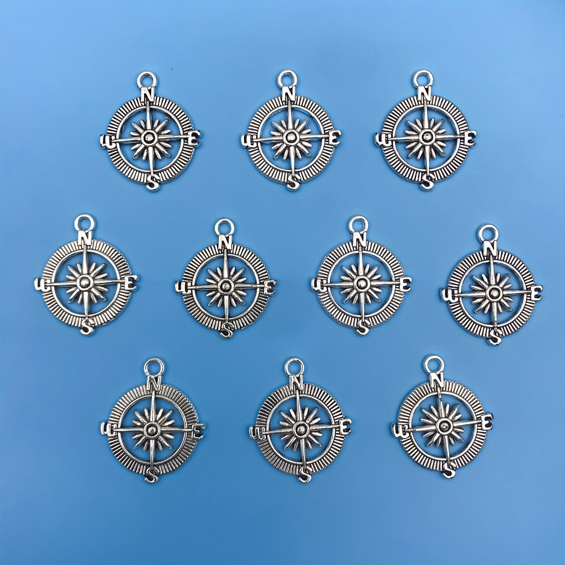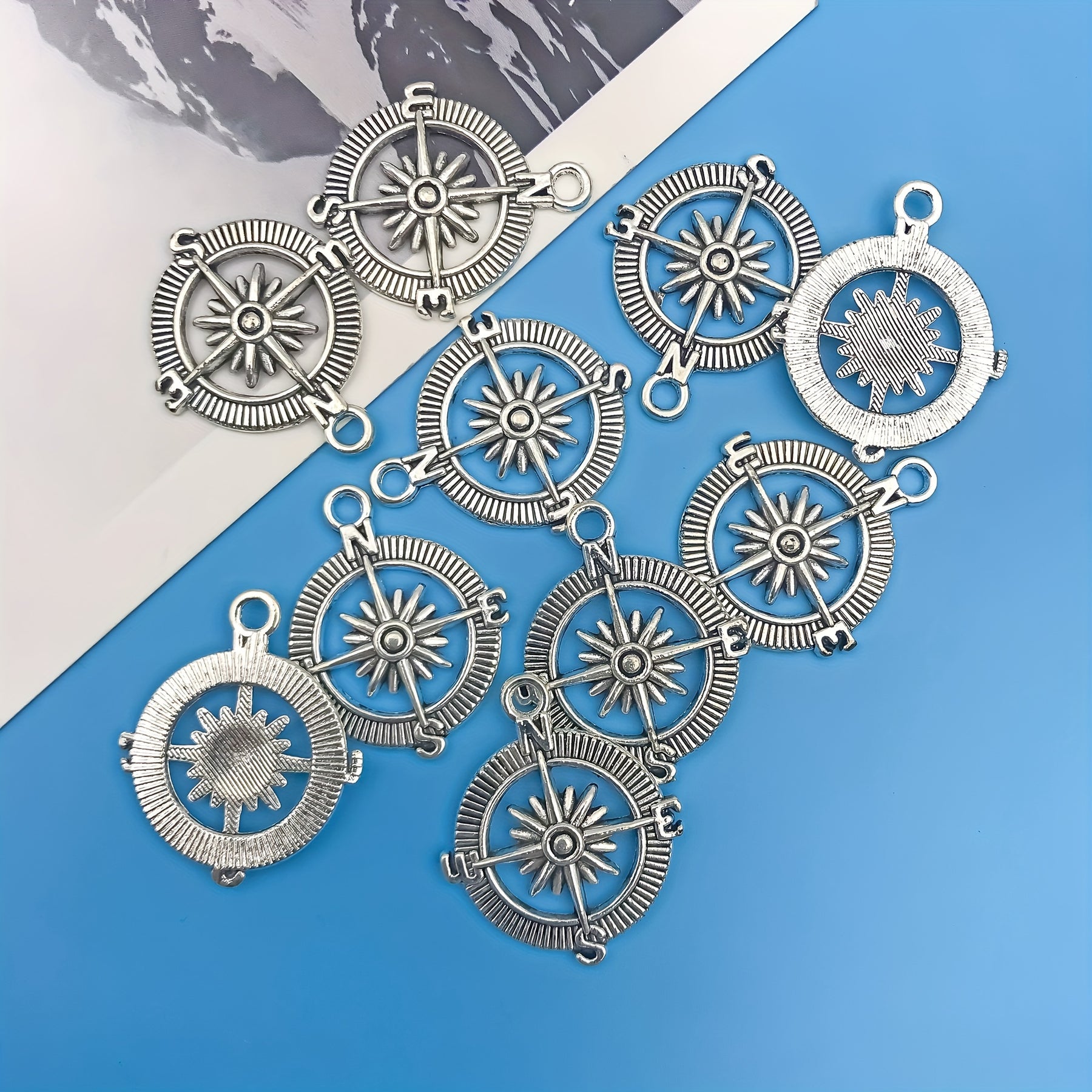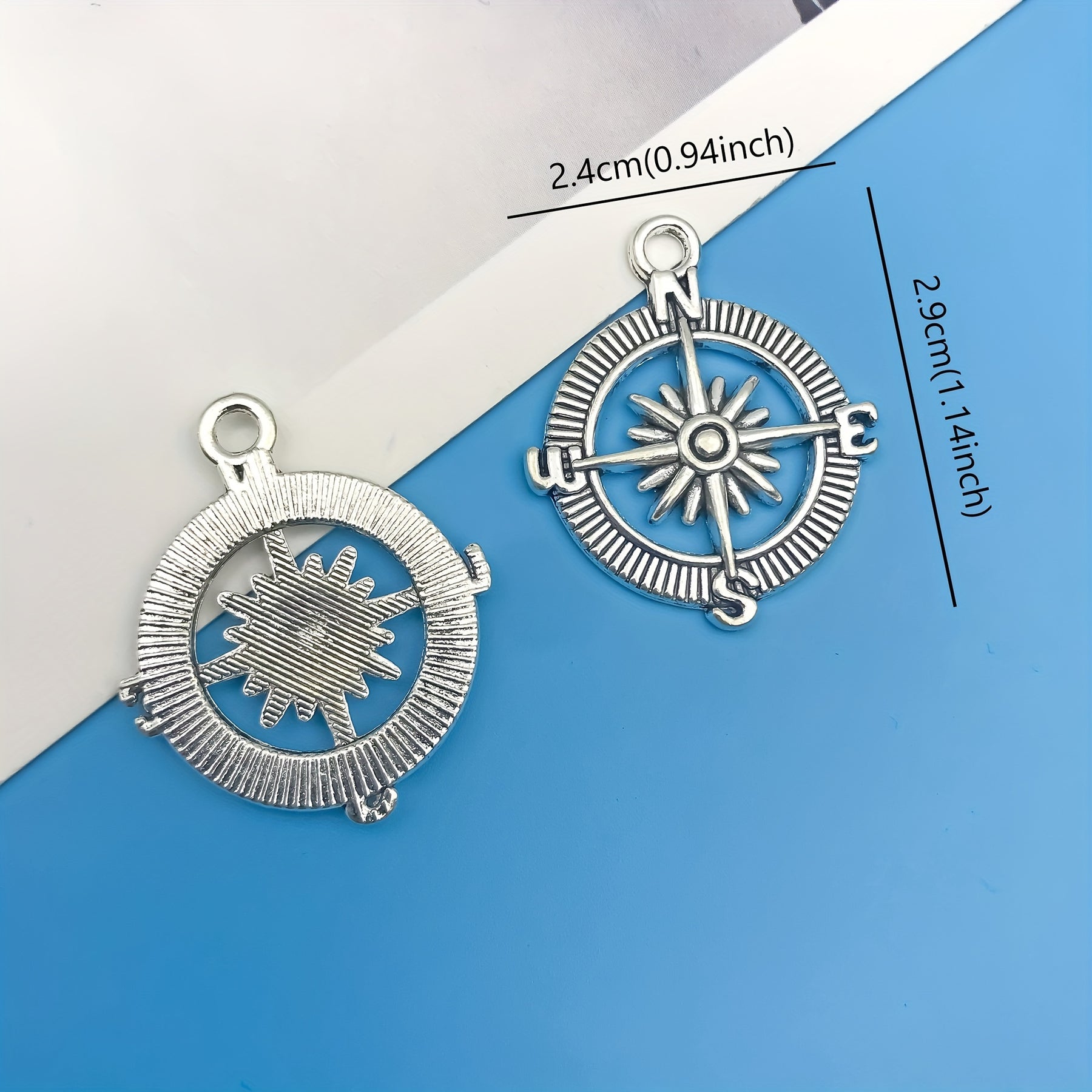 Get creative with these 10pcs of zinc alloy antique silver compass shape charms pendants. Perfect for adding a unique touch to your necklace, bracelet, earrings, and other jewelry making projects.