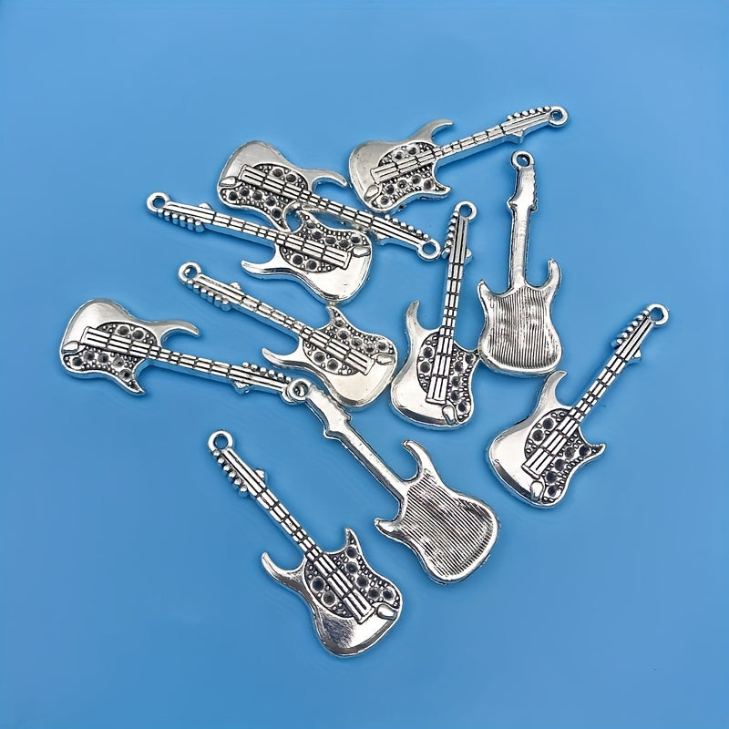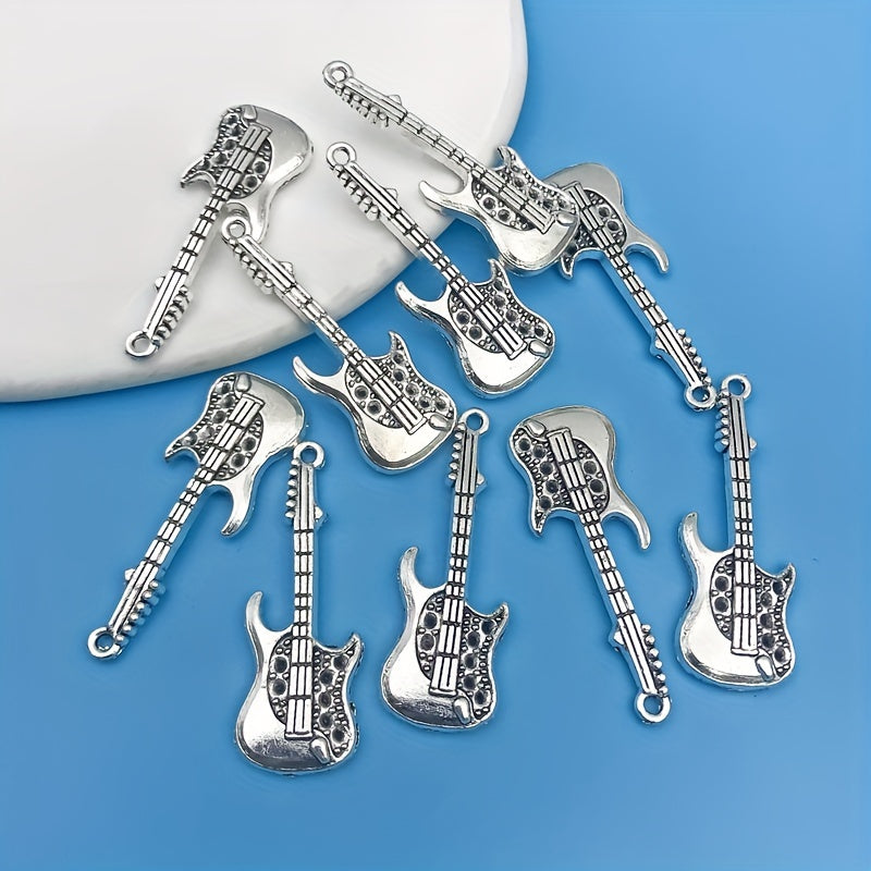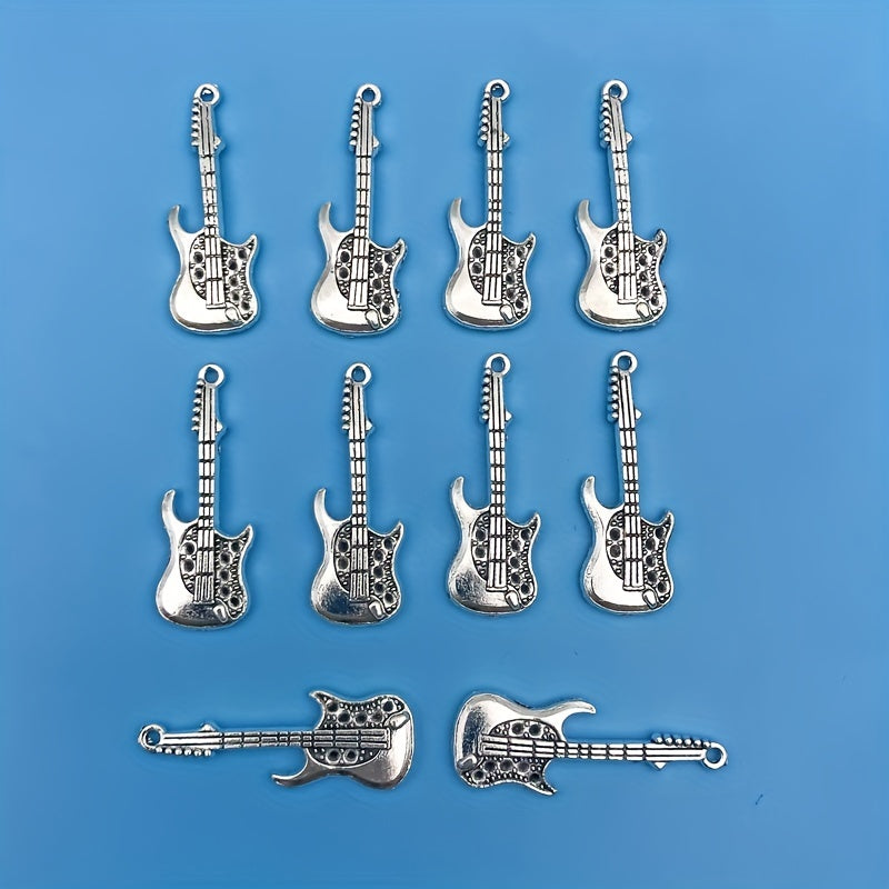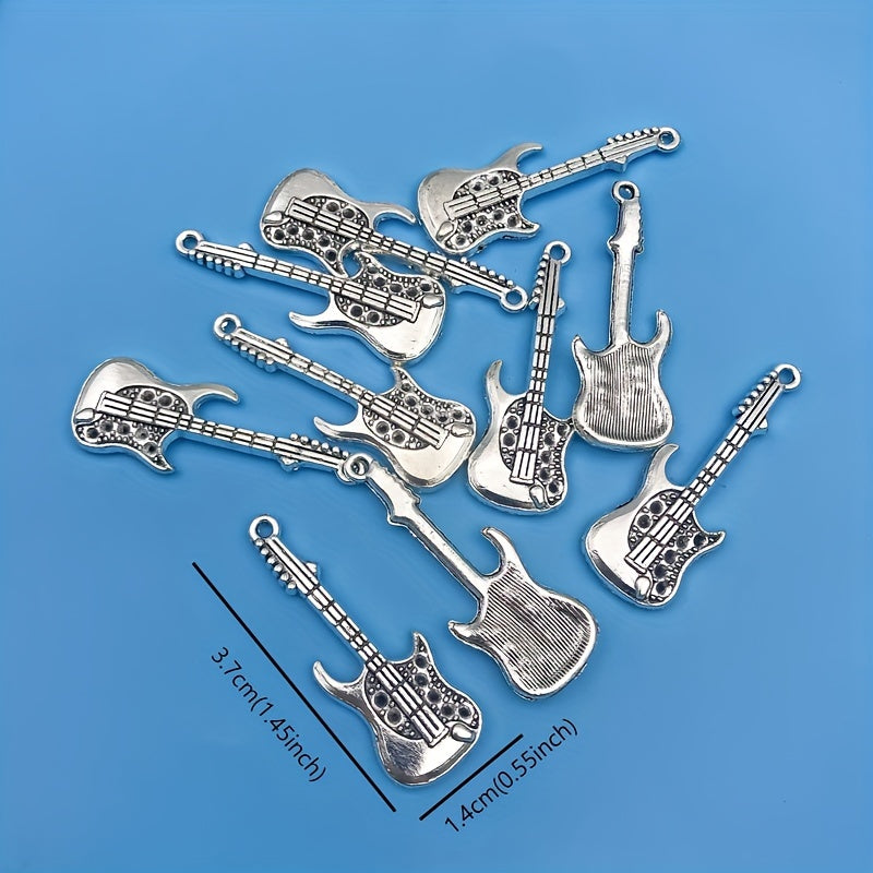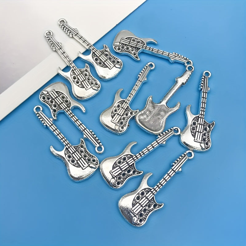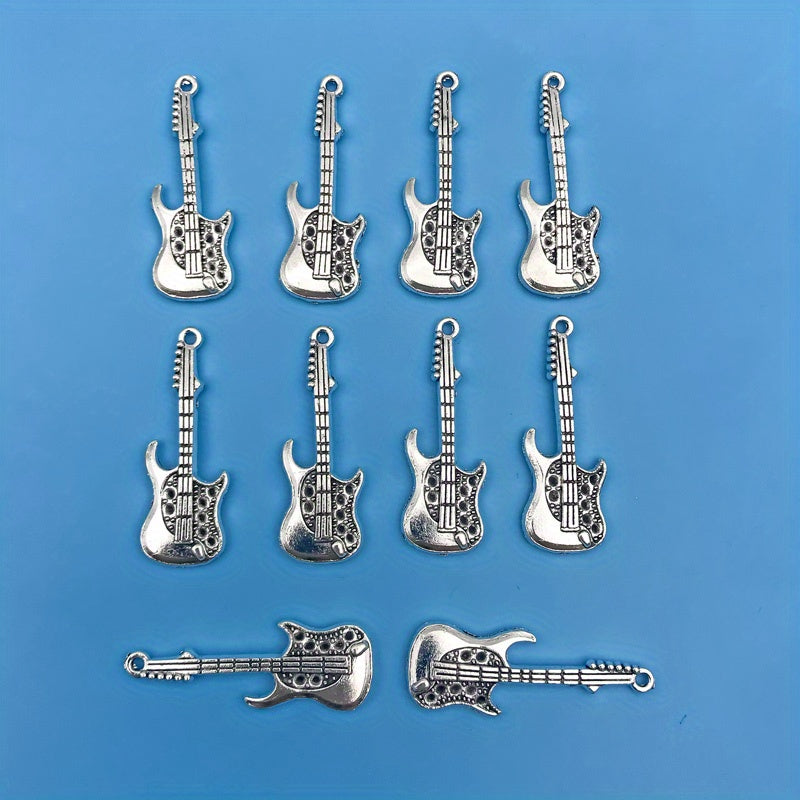 Get creative with these 10pcs zinc alloy antique silver guitar instrument shape charms. Perfect for making necklaces, bracelets, earrings, and more.