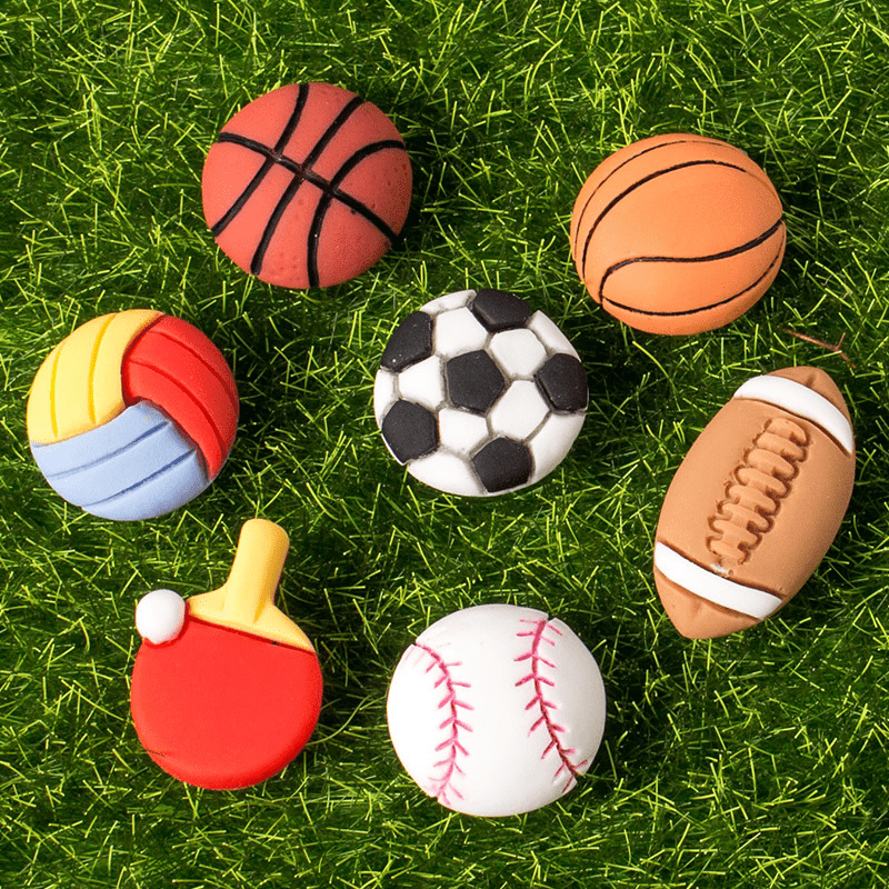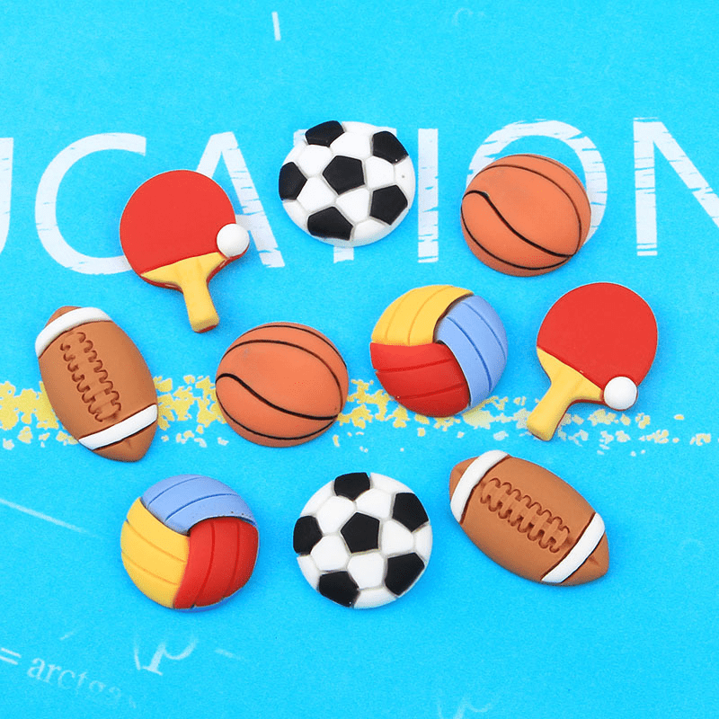 These 10 charming resin charms feature various sport ball patterns, perfect for embellishing hair clips, phone cases, photo frames, and more. Ideal for DIY scrapbook crafts and wall decorations.